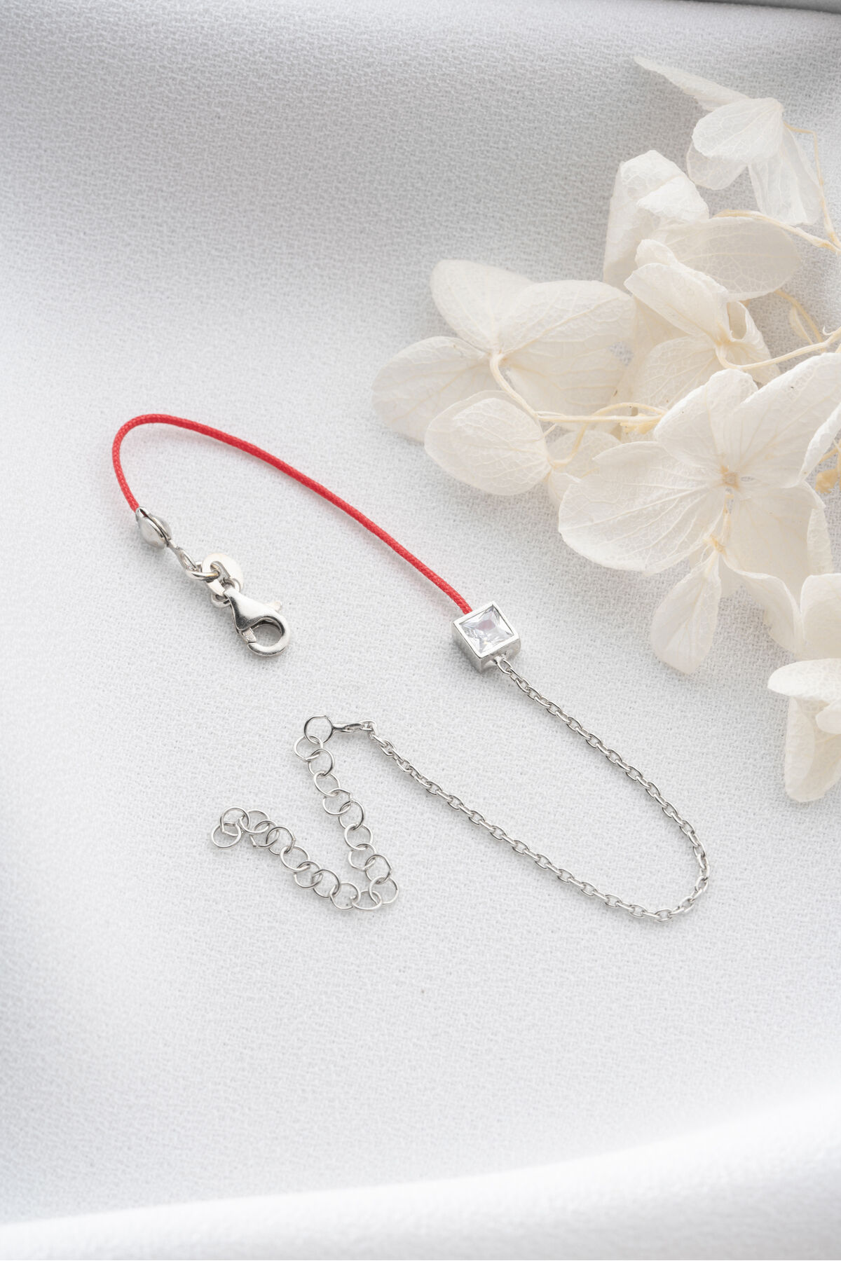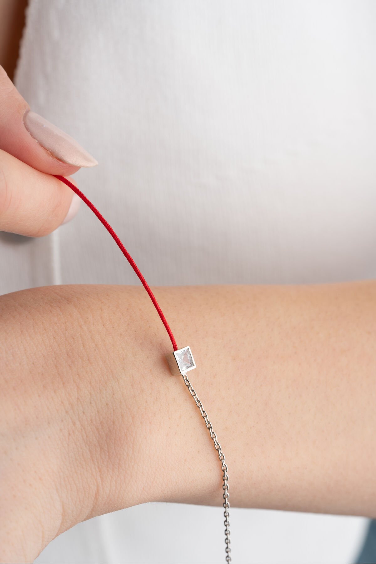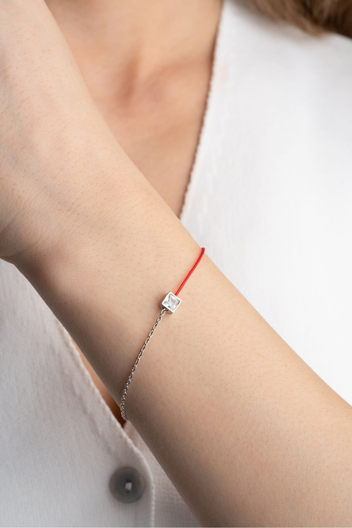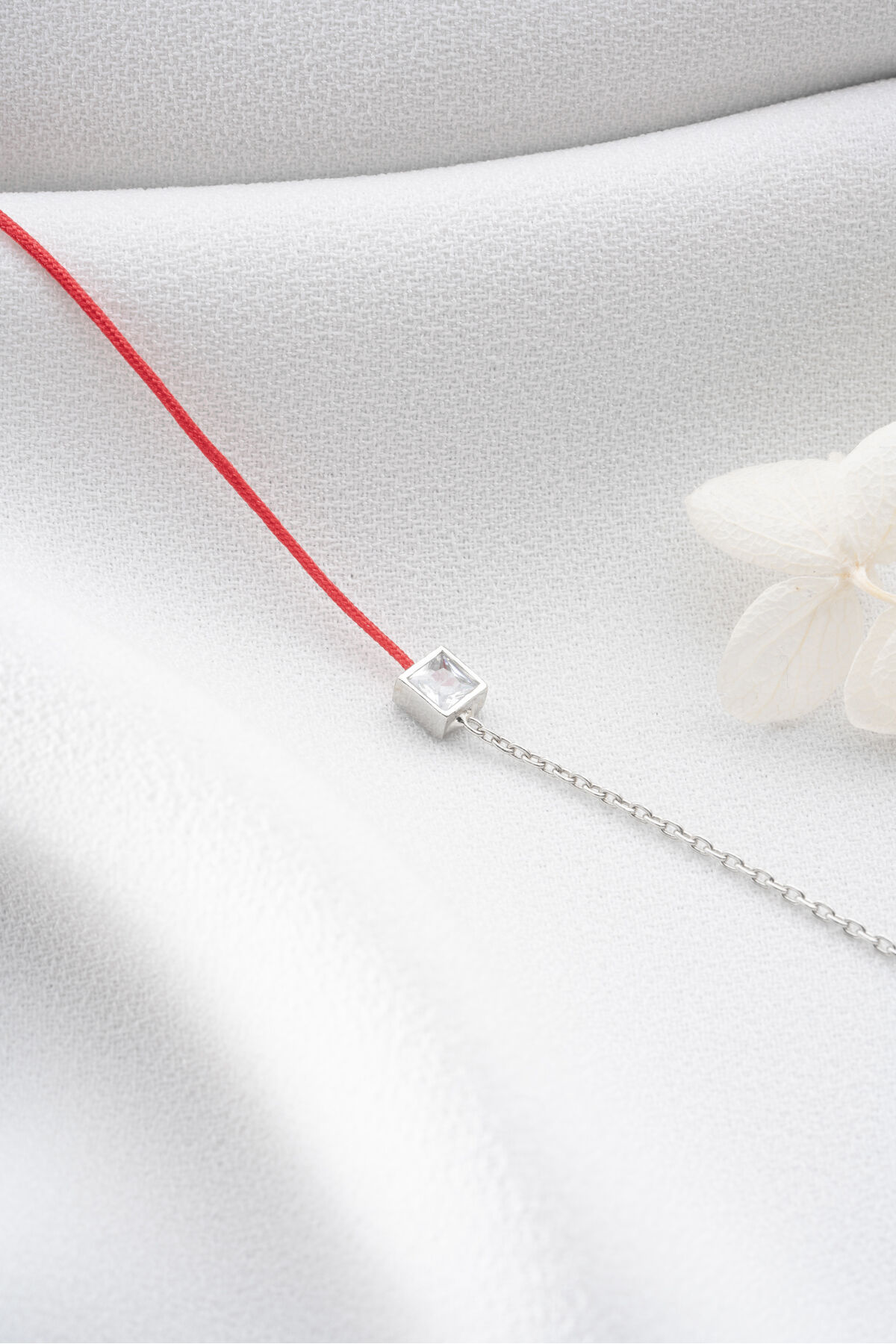 925 Ayar Gümüş Kare Taşlı Kırmızı İpli Bileklik