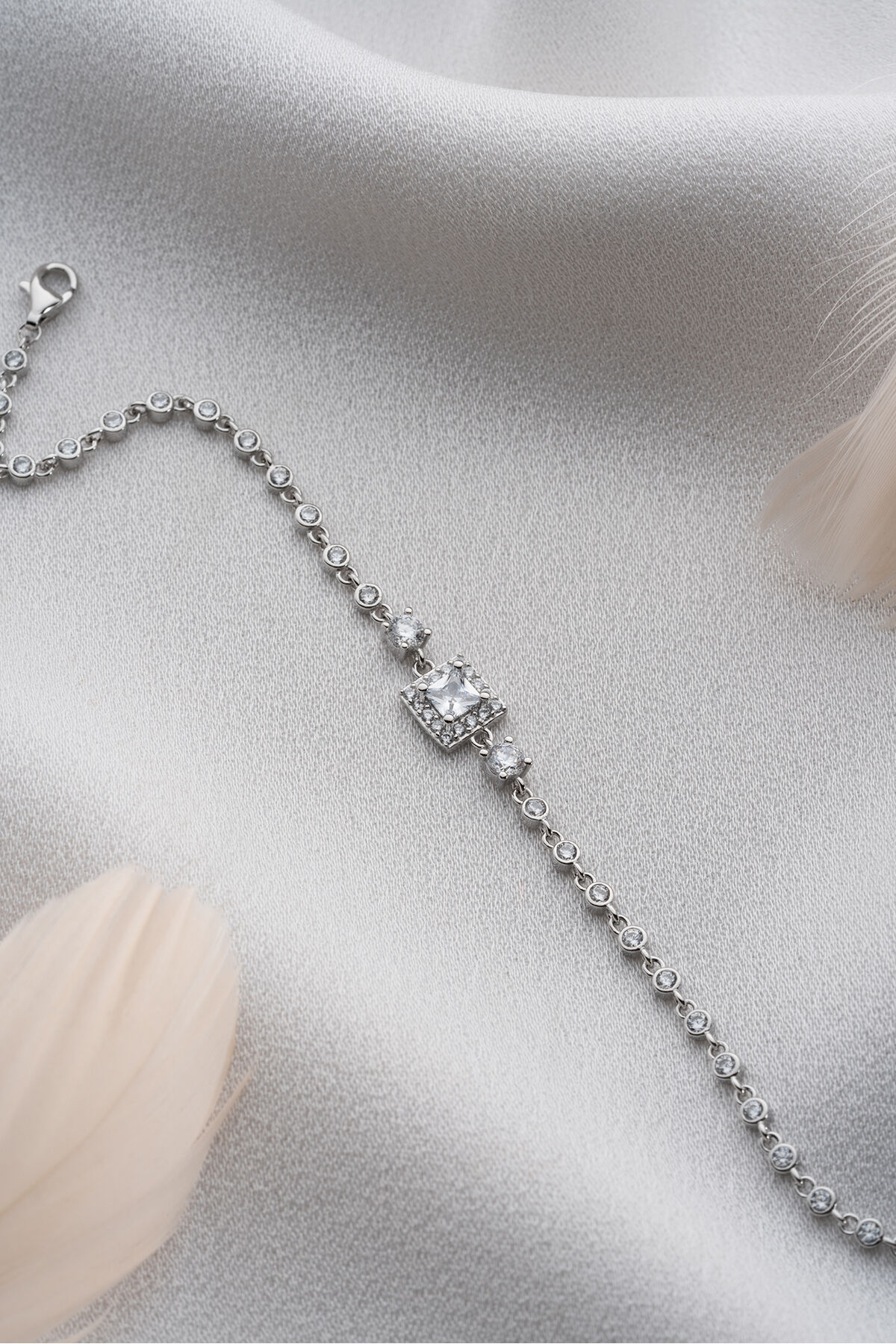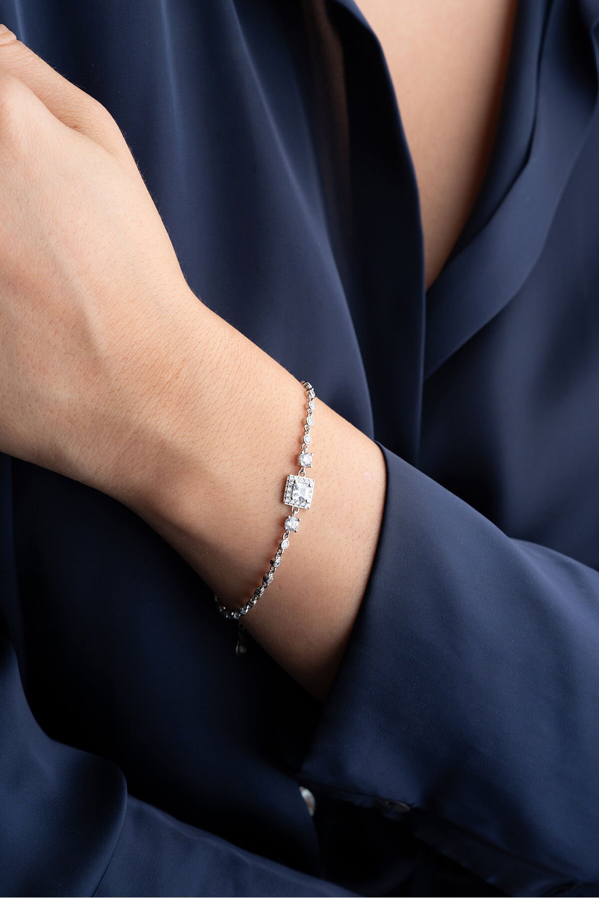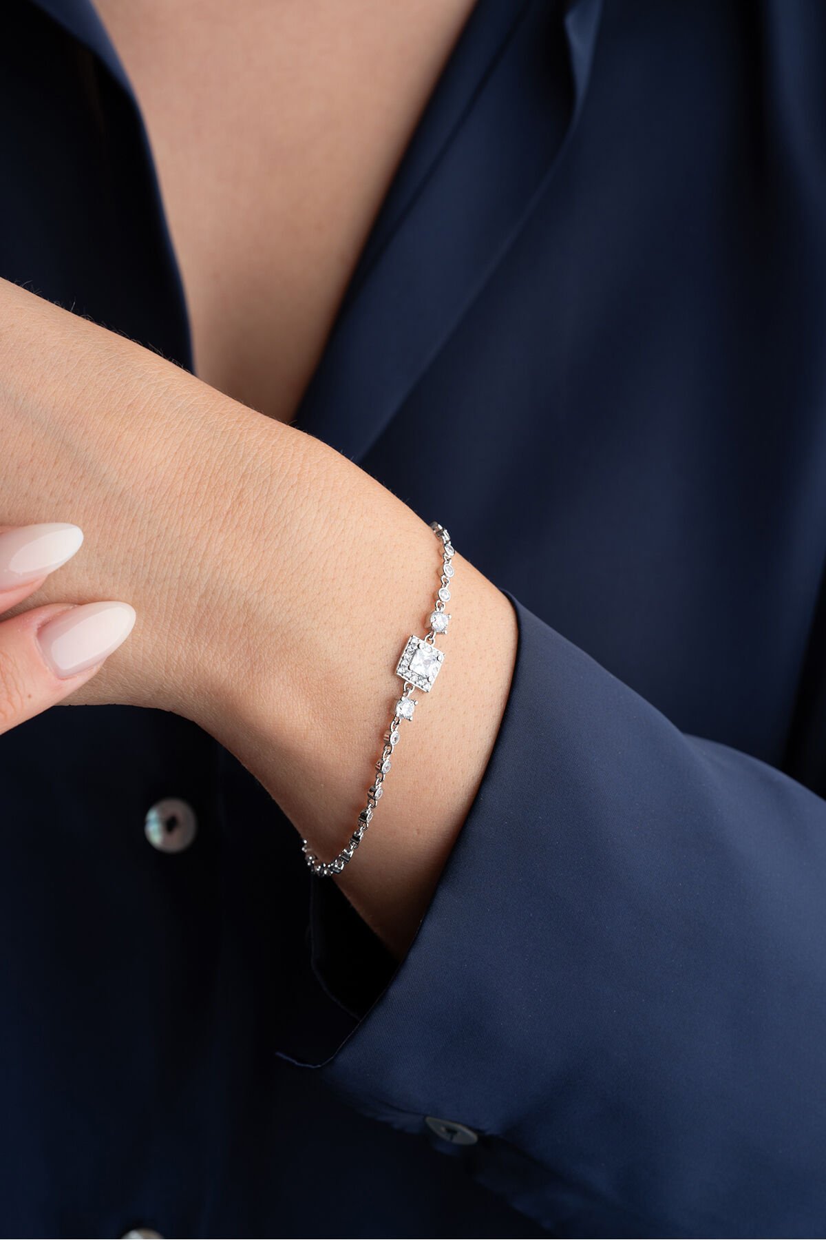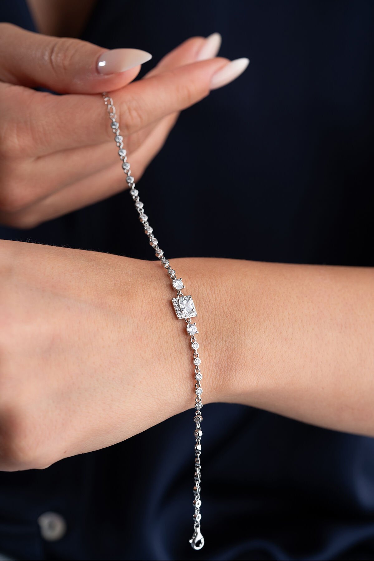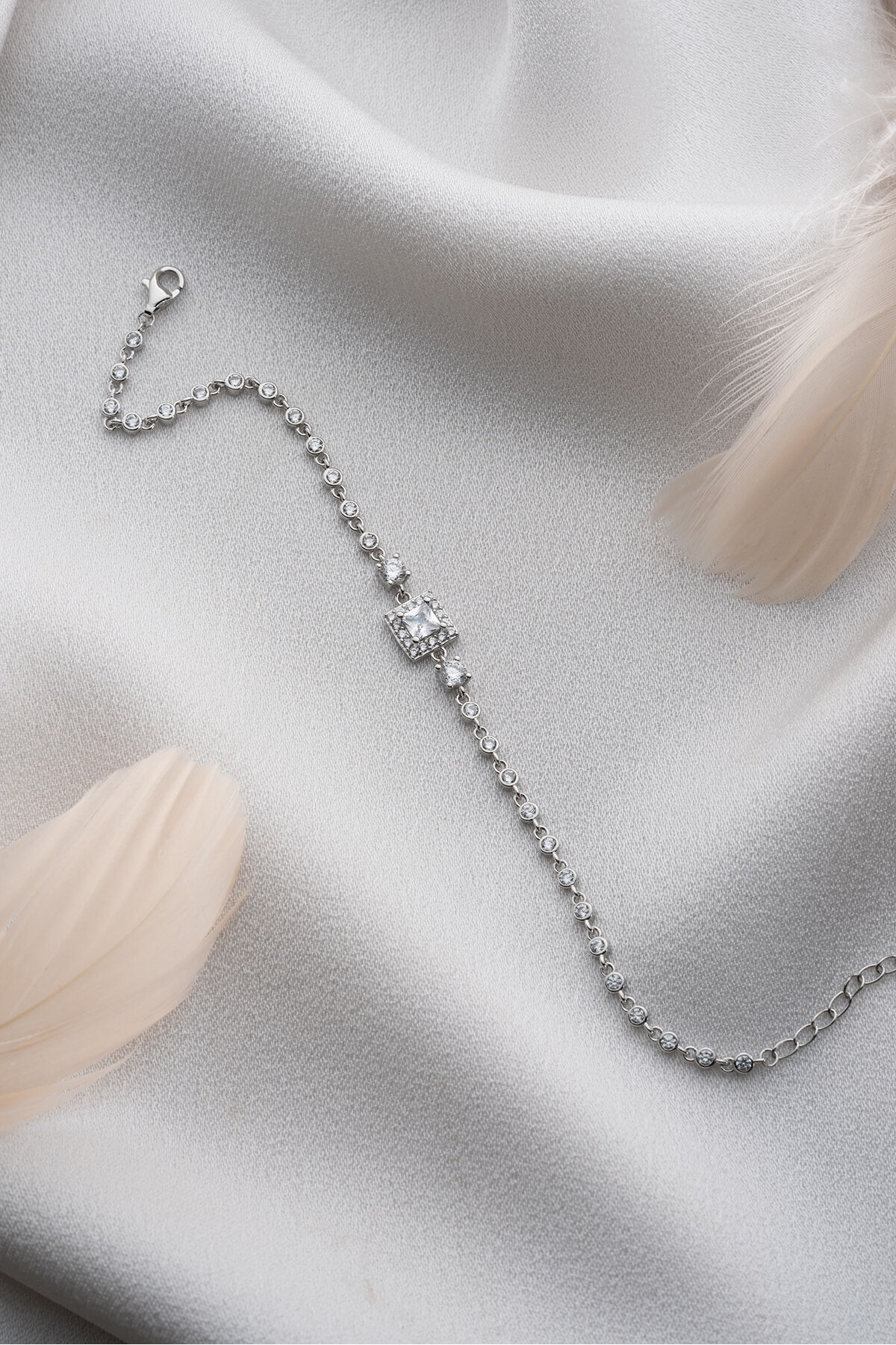 925 Ayar Gümüş Kare Taşlı Su Yolu Bileklik