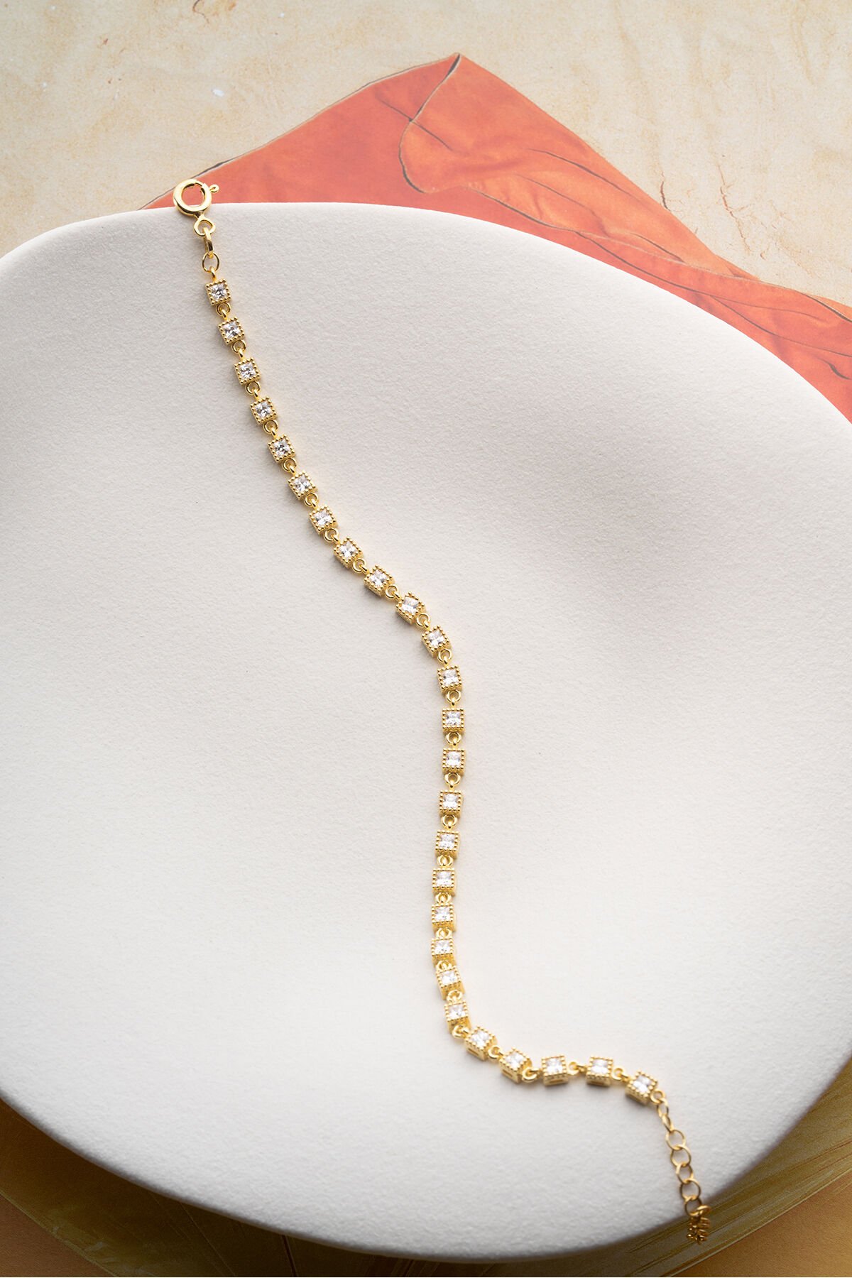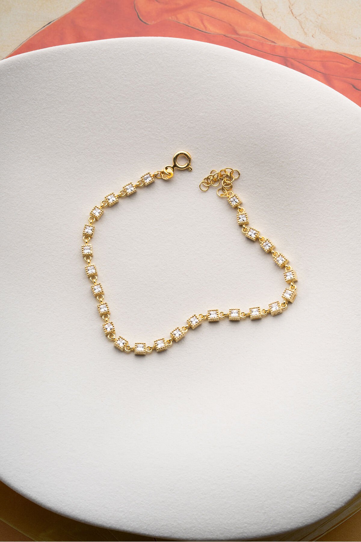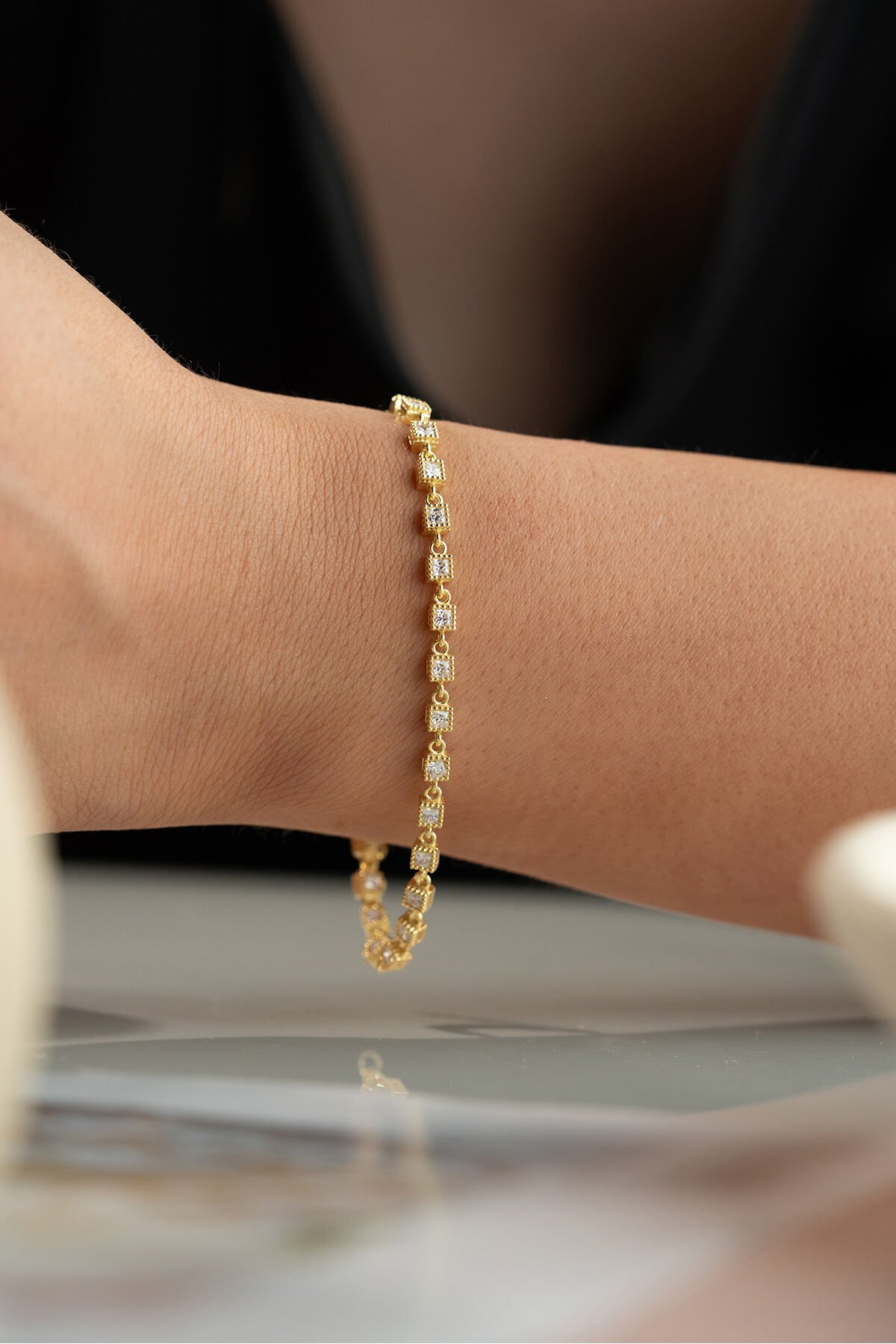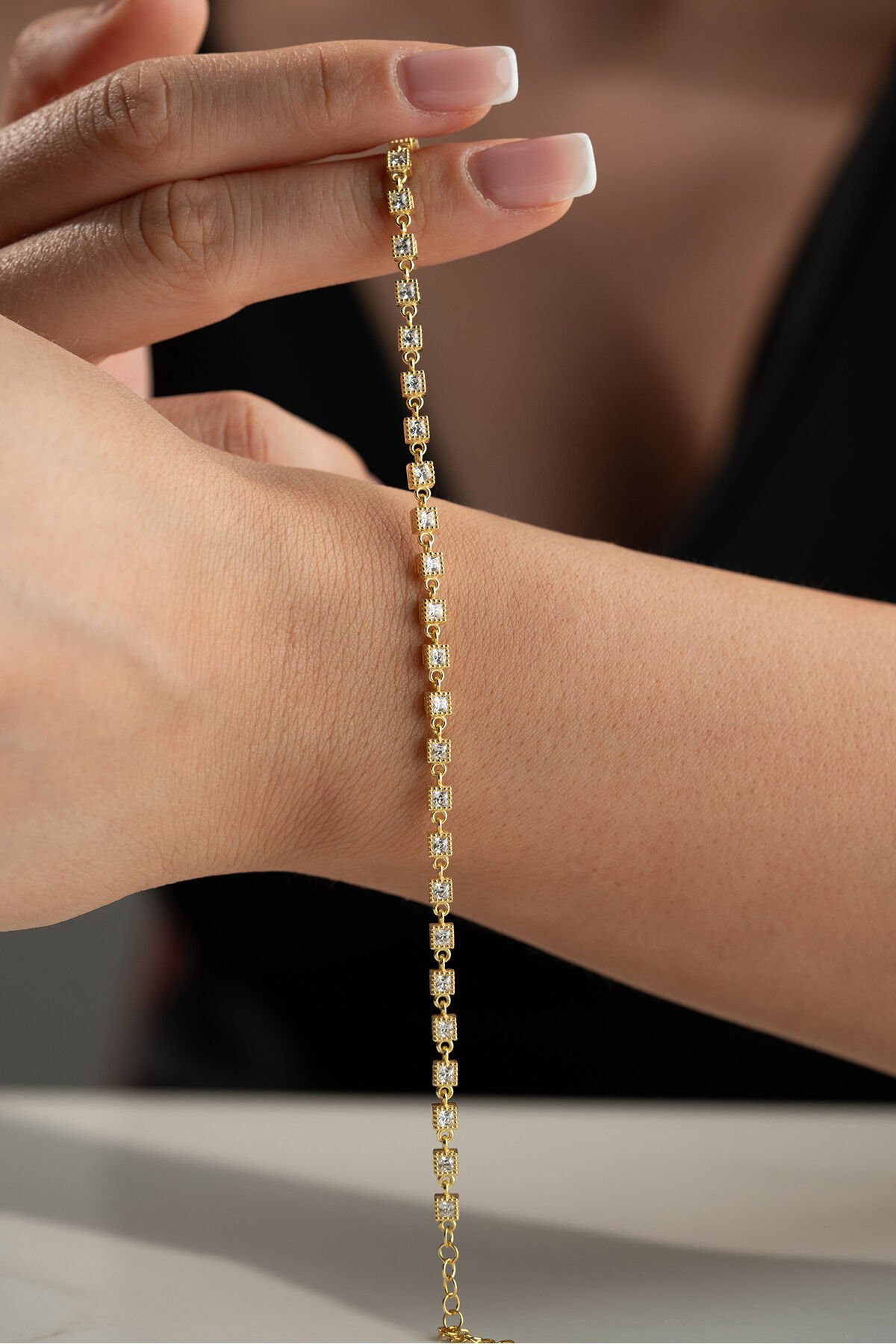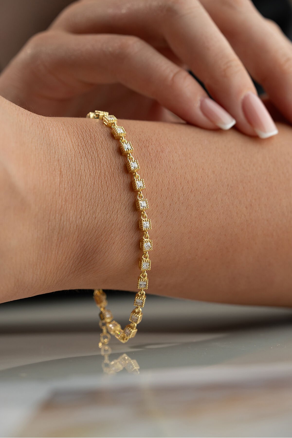 925 Ayar Gümüş Kare Taşlı Suyolu Bileklik