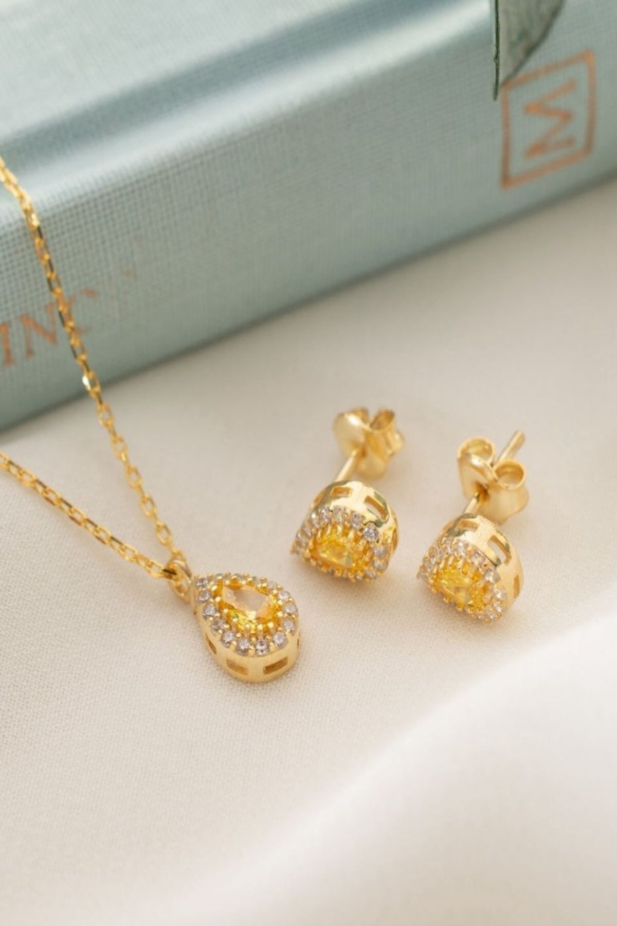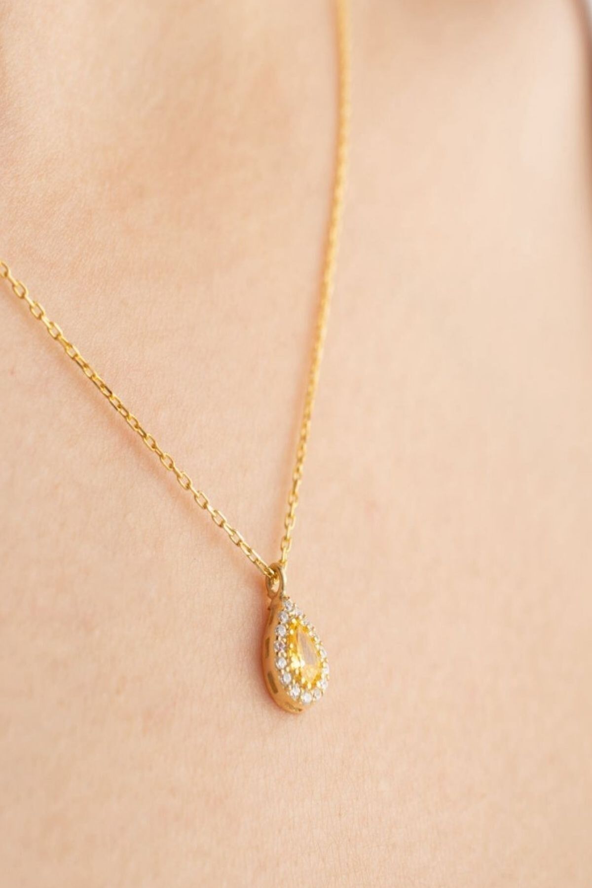 925 Ayar Gümüş Kasım Ayı Doğum Taşı ( Citrine ) Damla Kolye