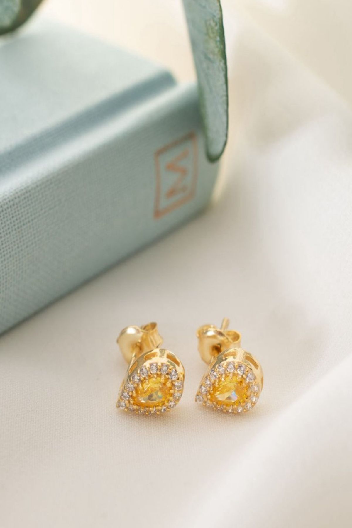925 Ayar Gümüş Kasım Ayı Doğum Taşı ( Citrine ) Damla Küpe