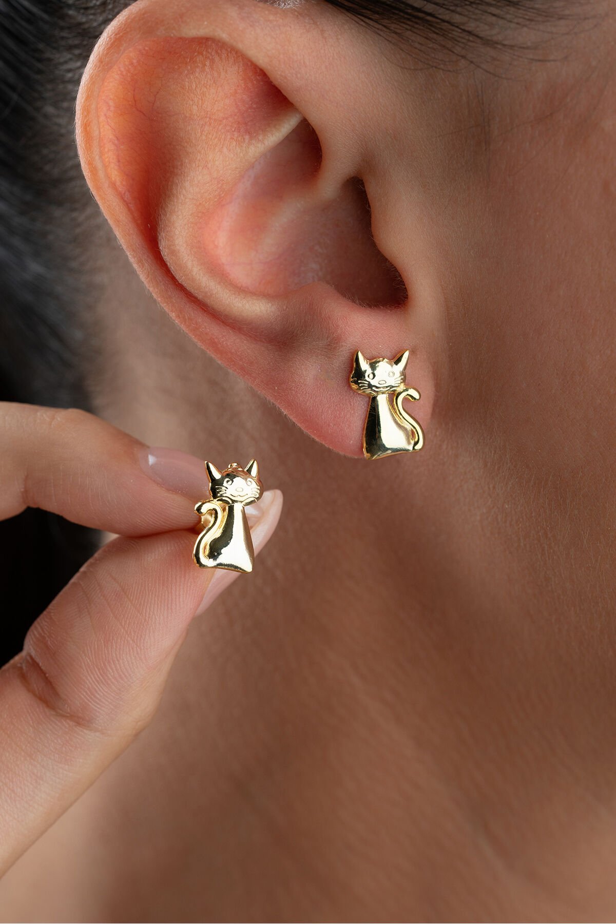 925 Ayar Gümüş Kedi Küpe