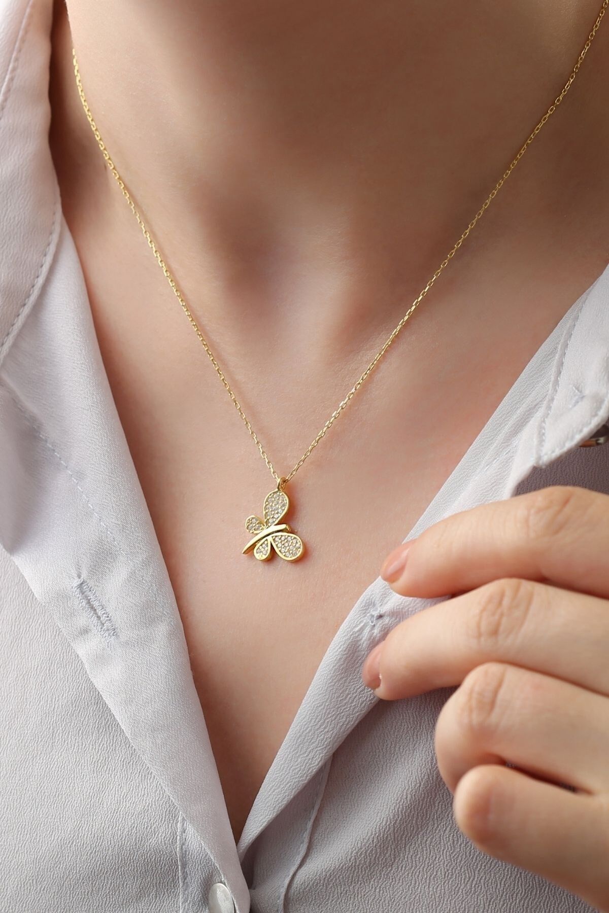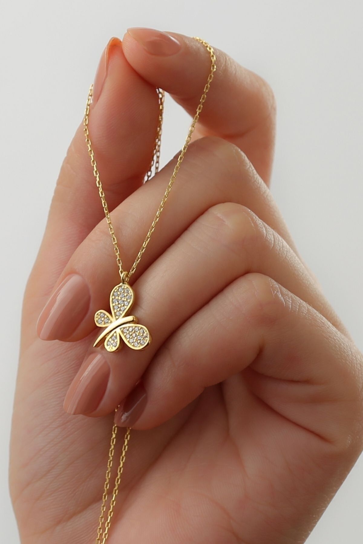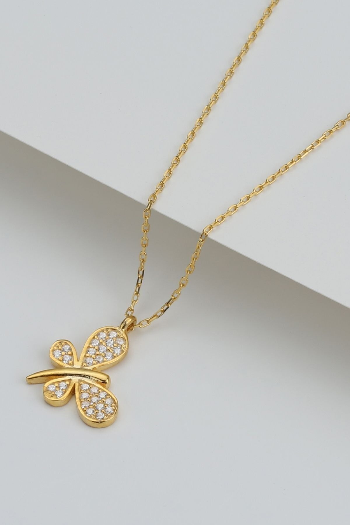 925 Ayar Gümüş Kelebek Model Kolye(gold)