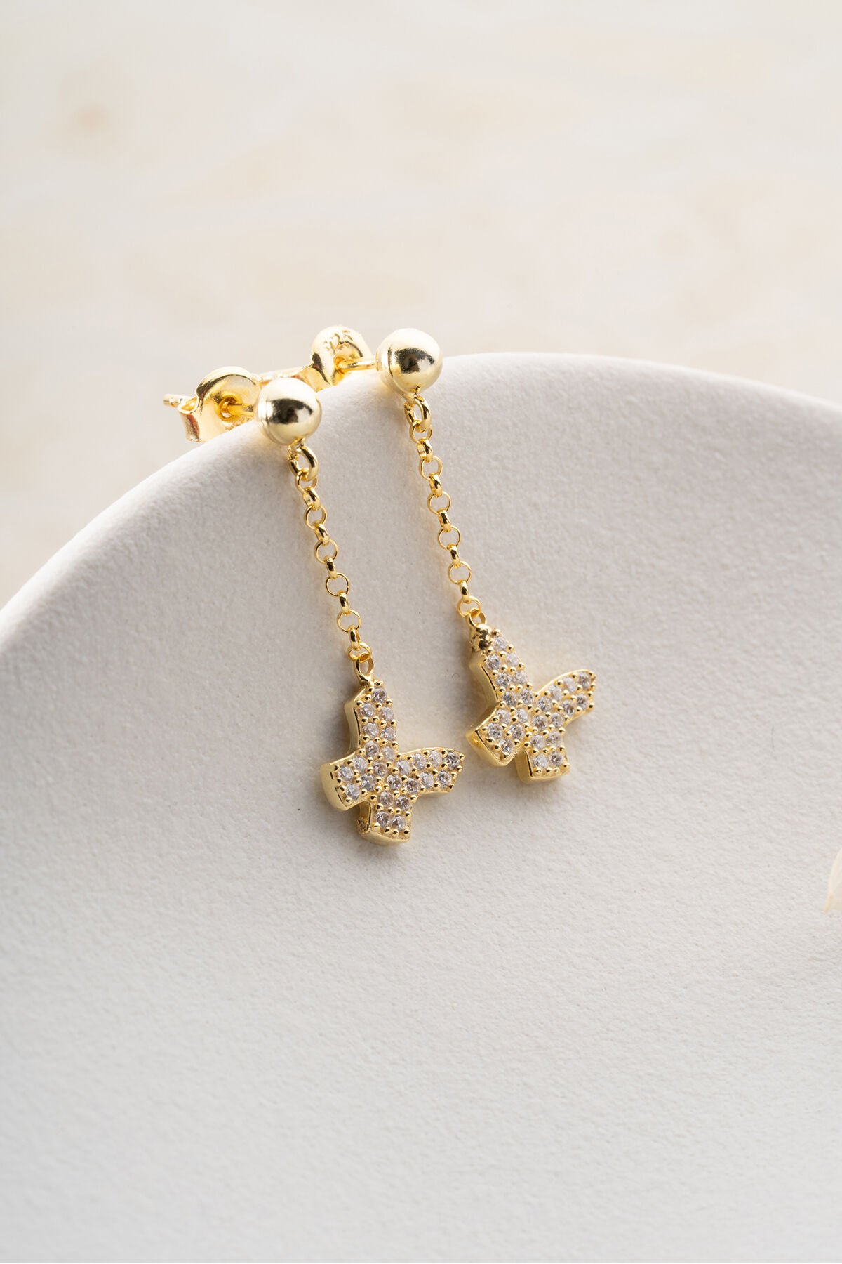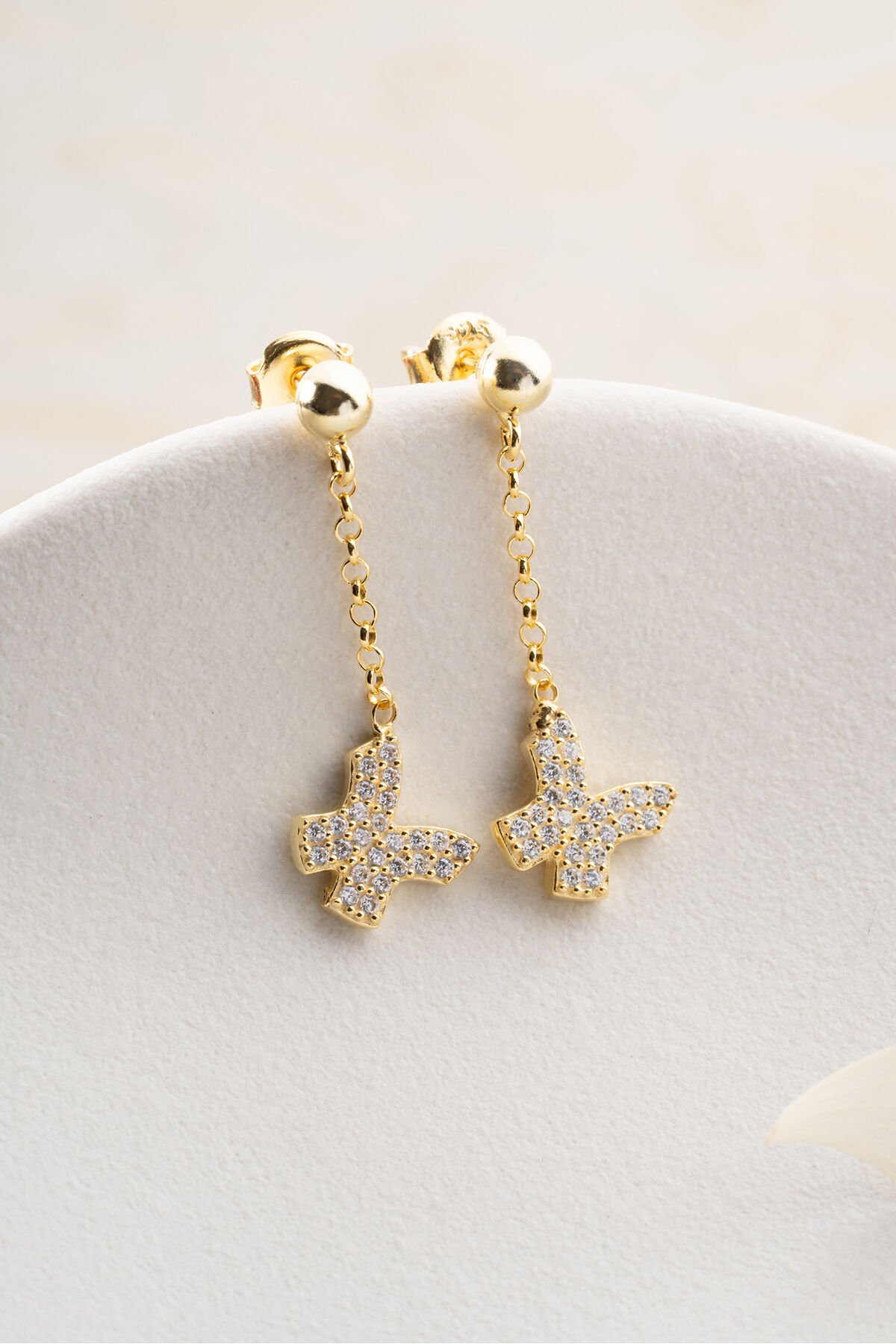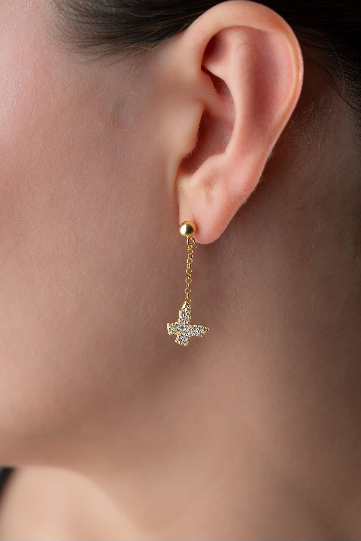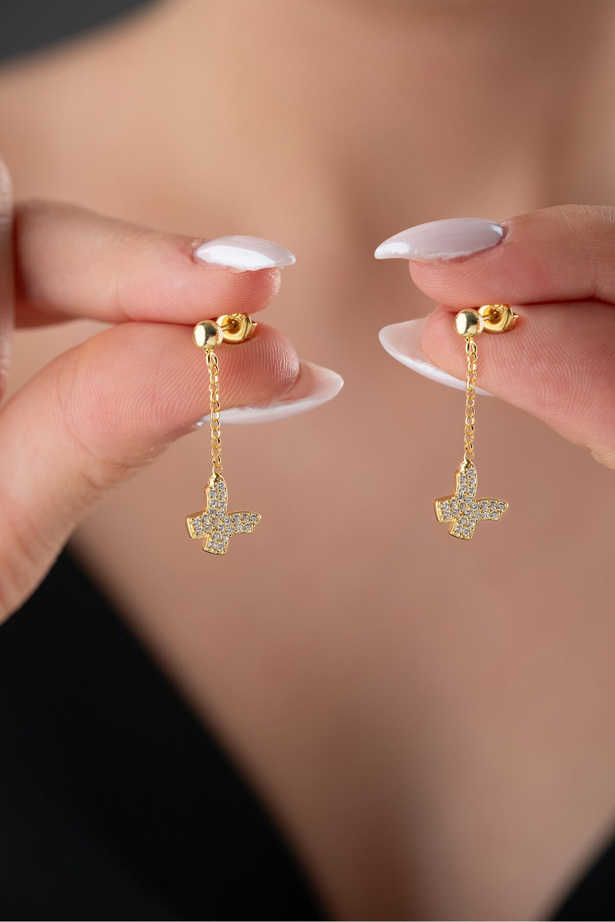 925 Ayar Gümüş Kelebek Zincirli Küpe