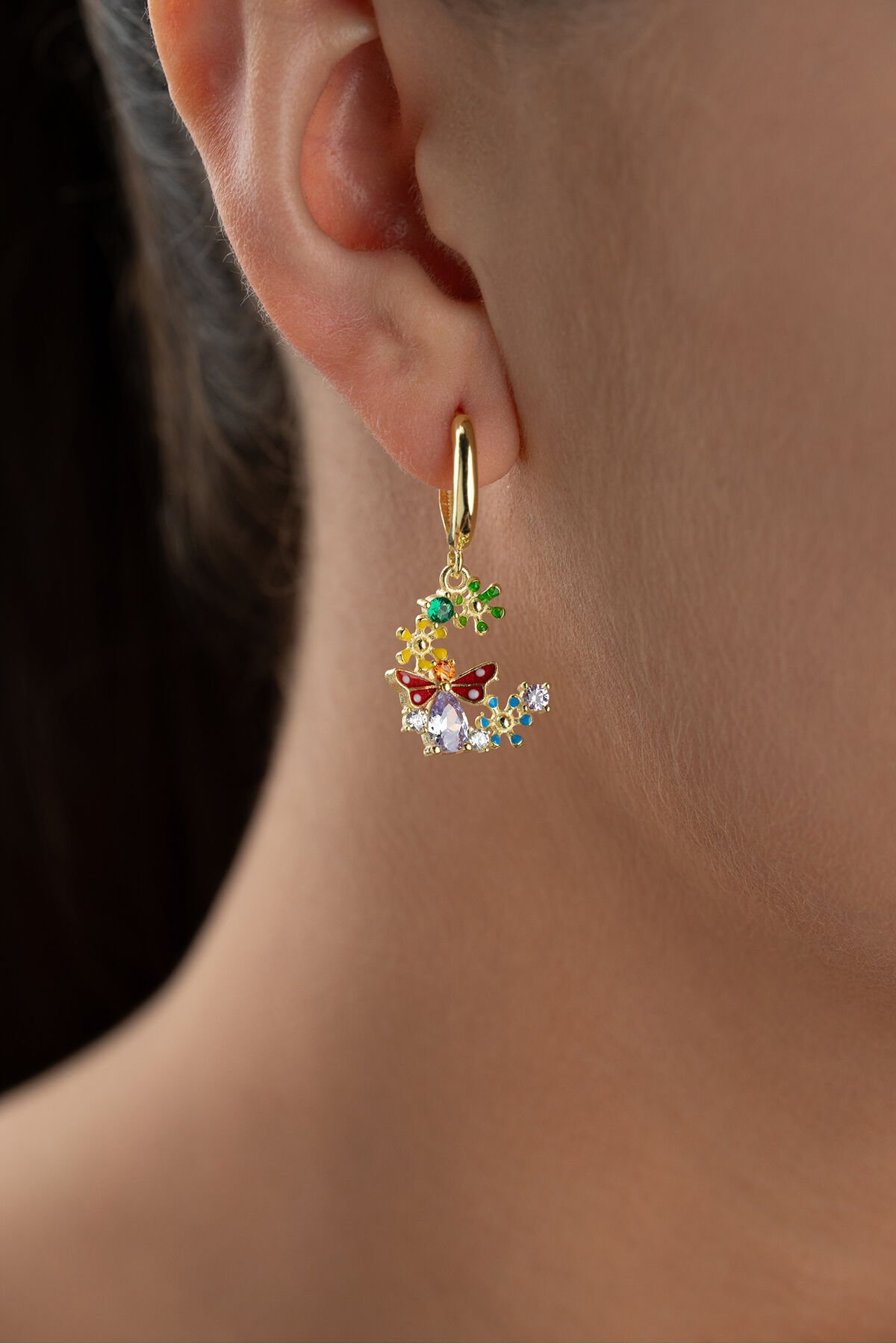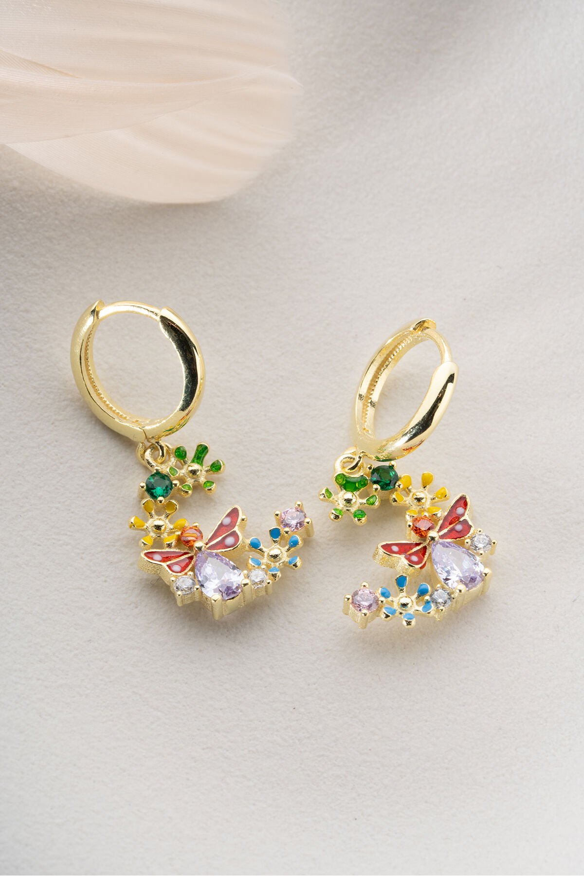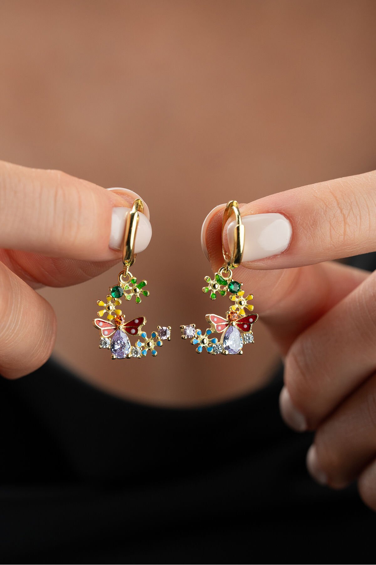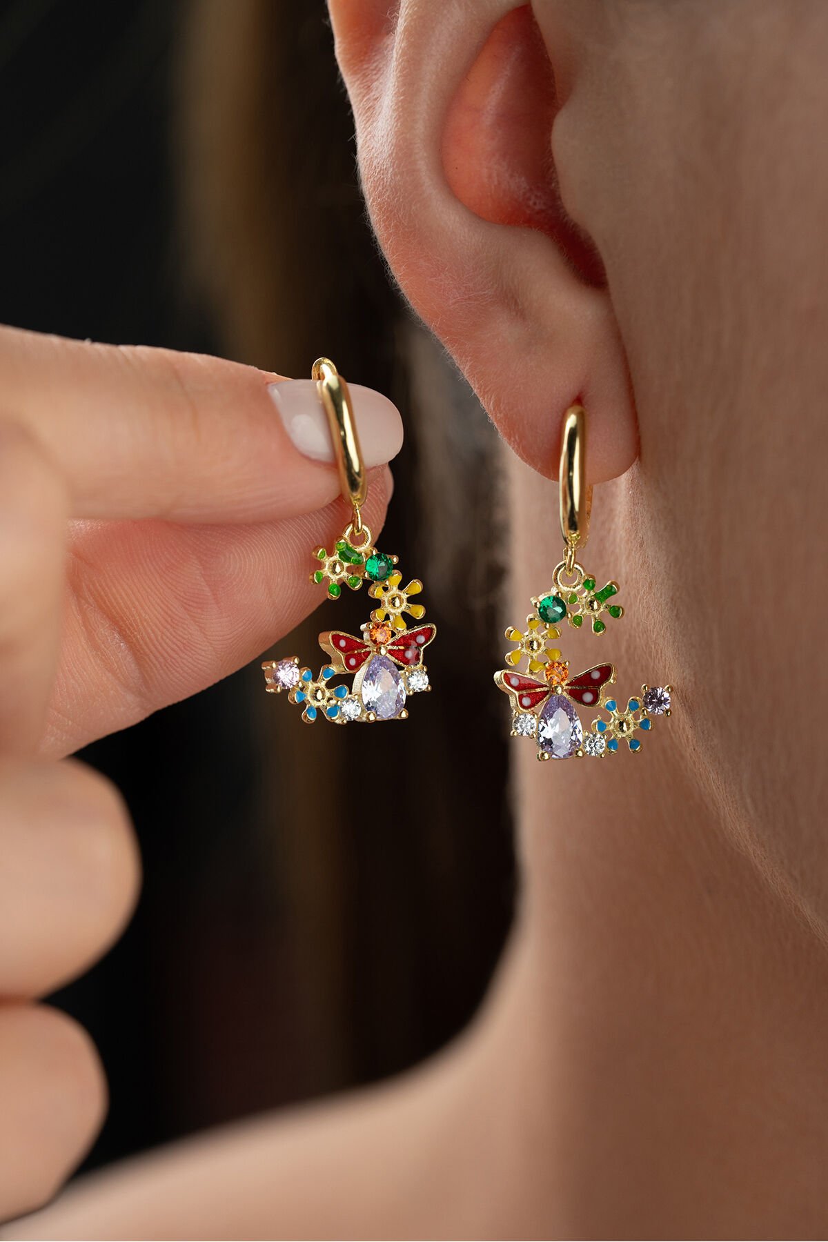 925 Ayar Gümüş Kelebekli Çiçekli Mineli Küpe