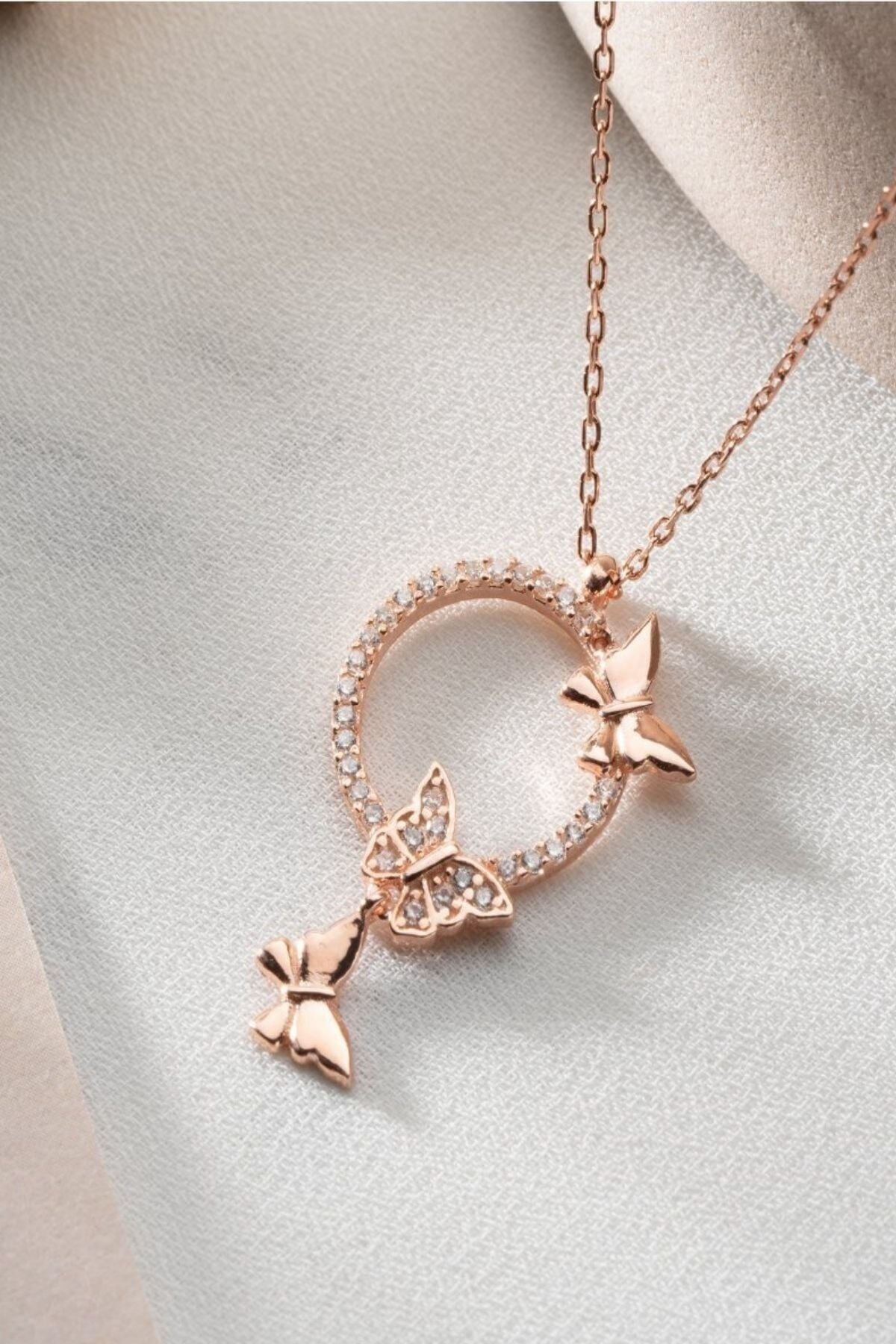 925 Ayar Gümüş Kelebekli Halka Kolye