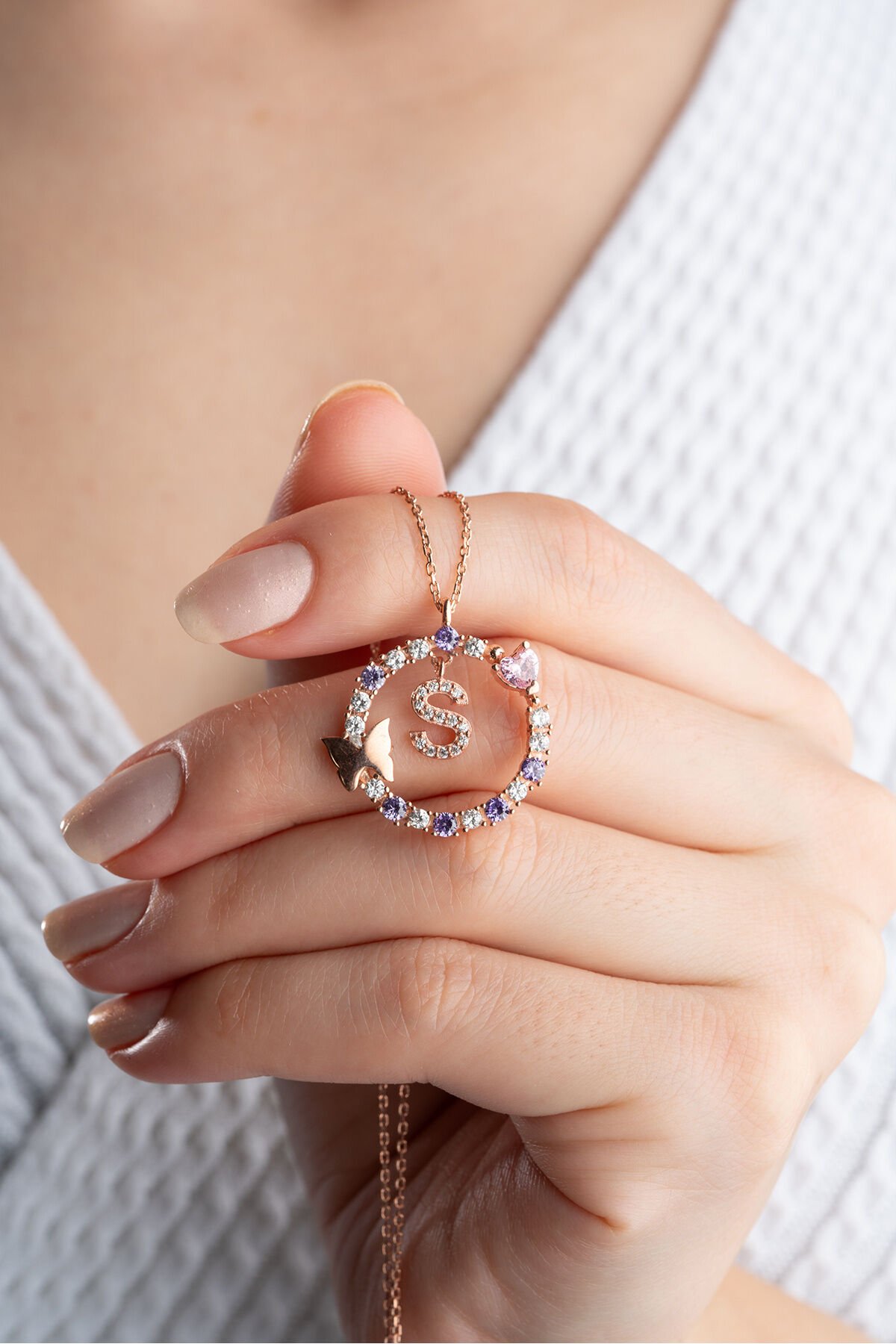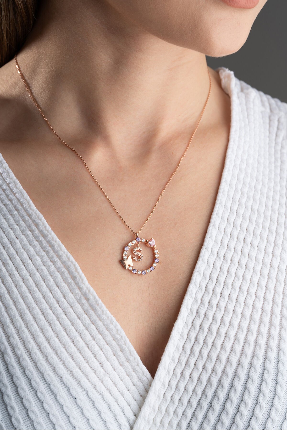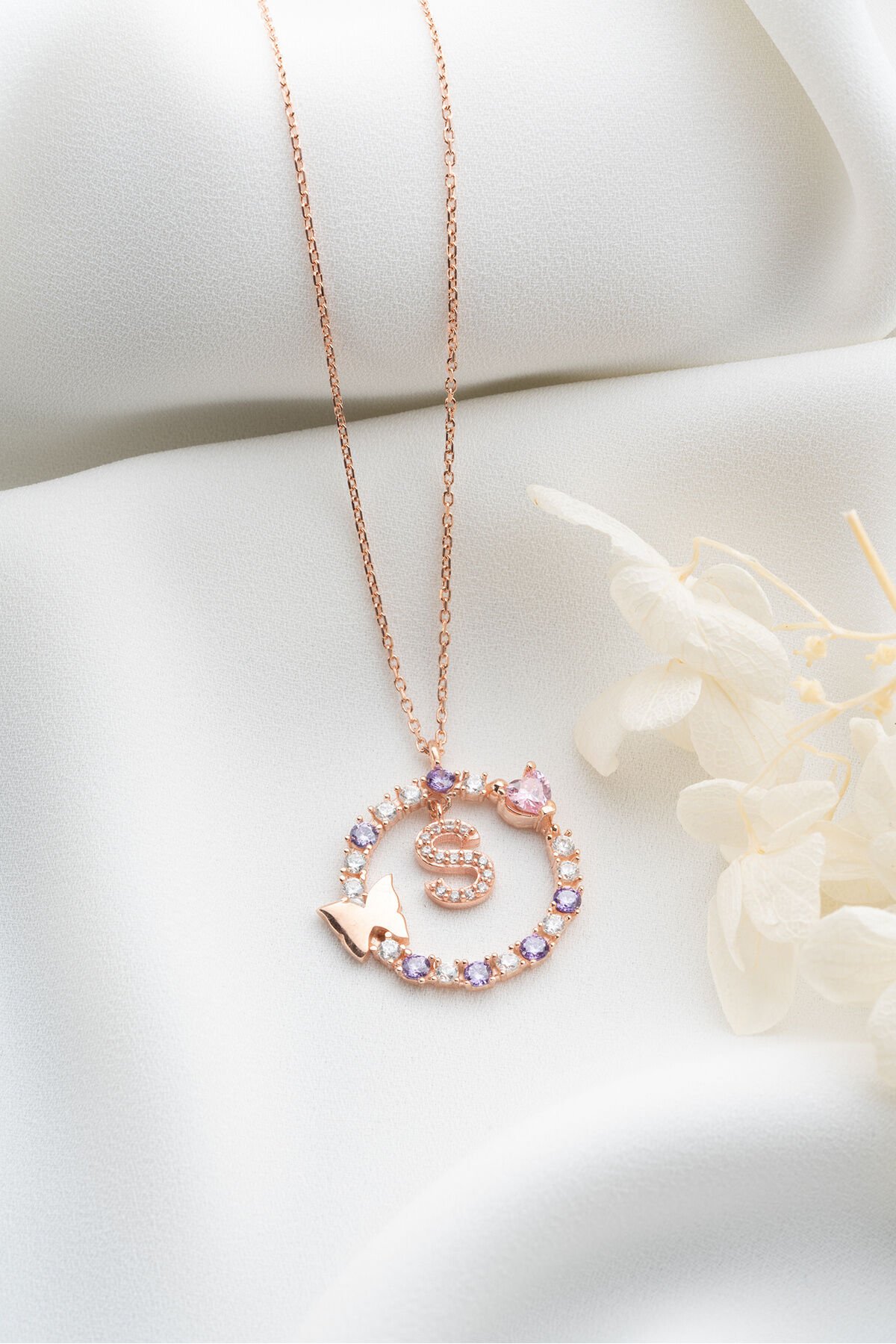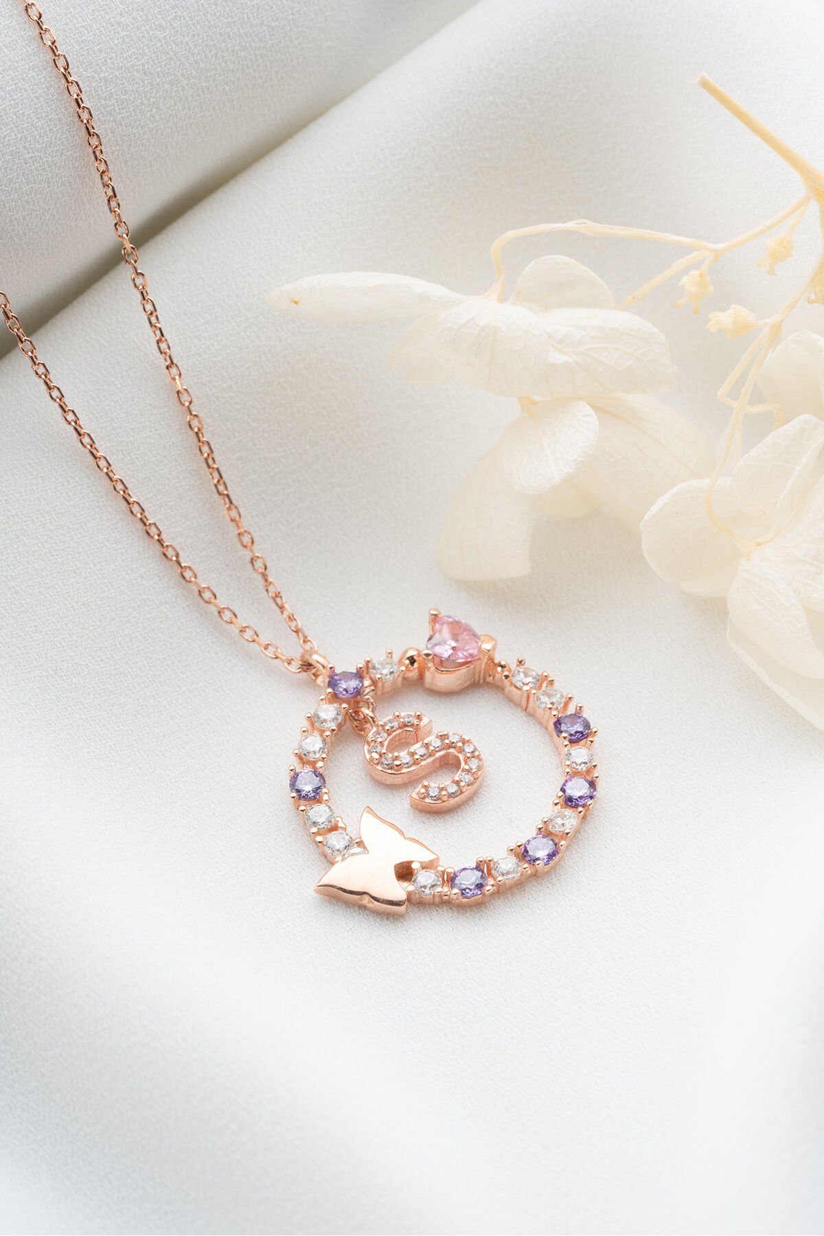 925 Ayar Gümüş Kelebekli Harf Kolye