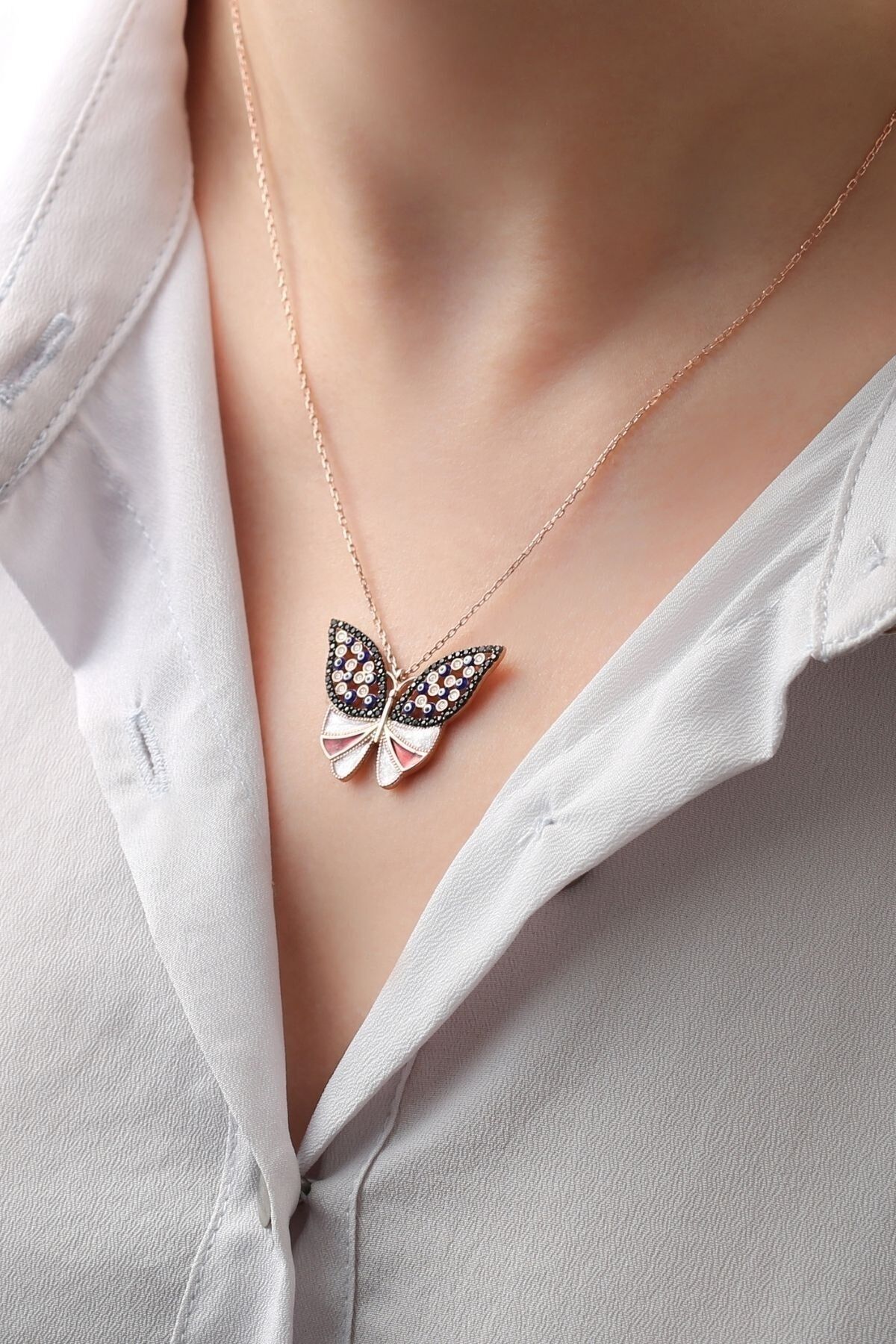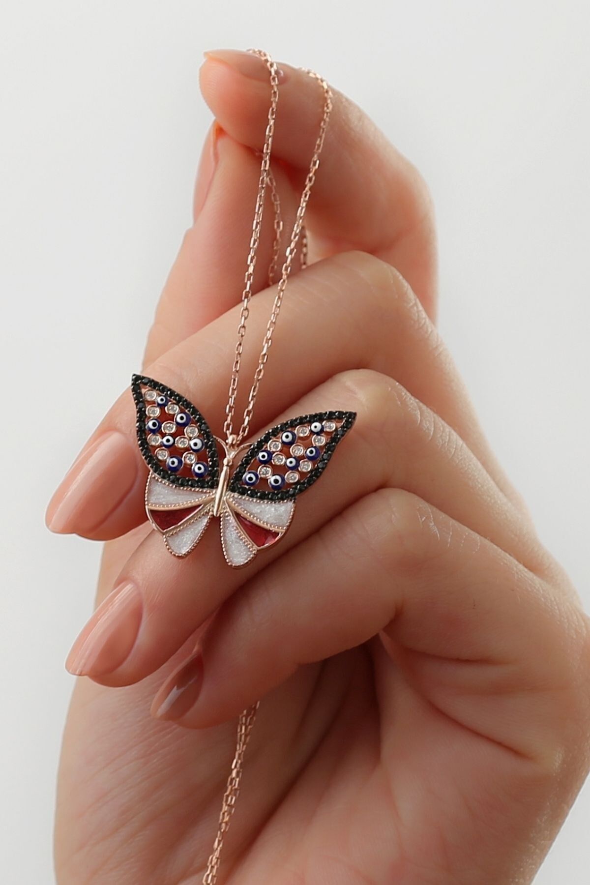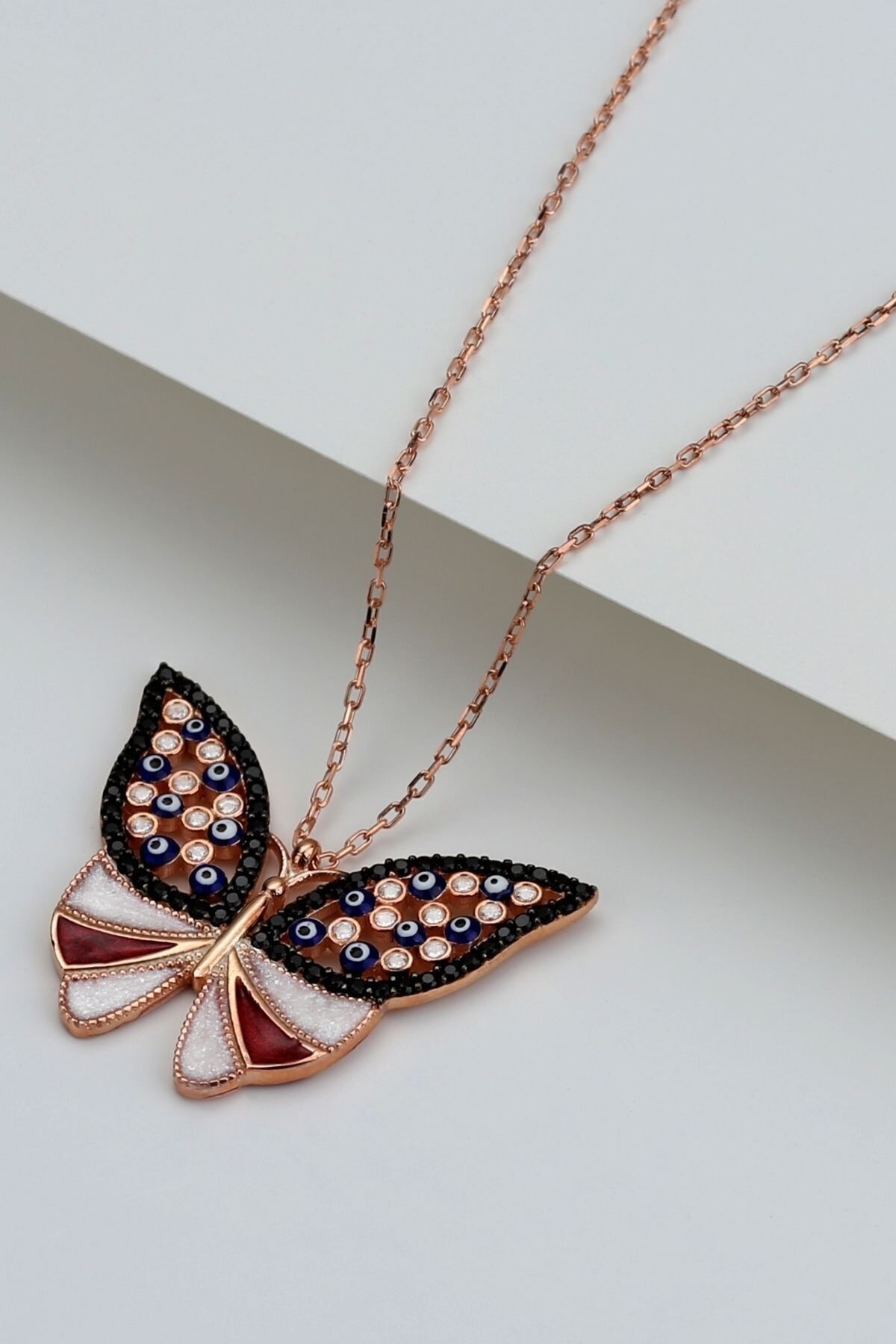 925 Ayar Gümüş Kelebekli Nazarlı Kolye
