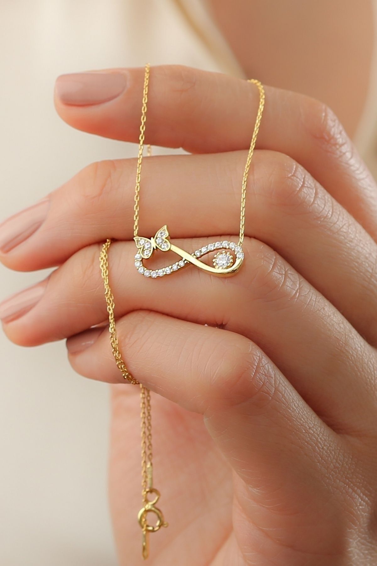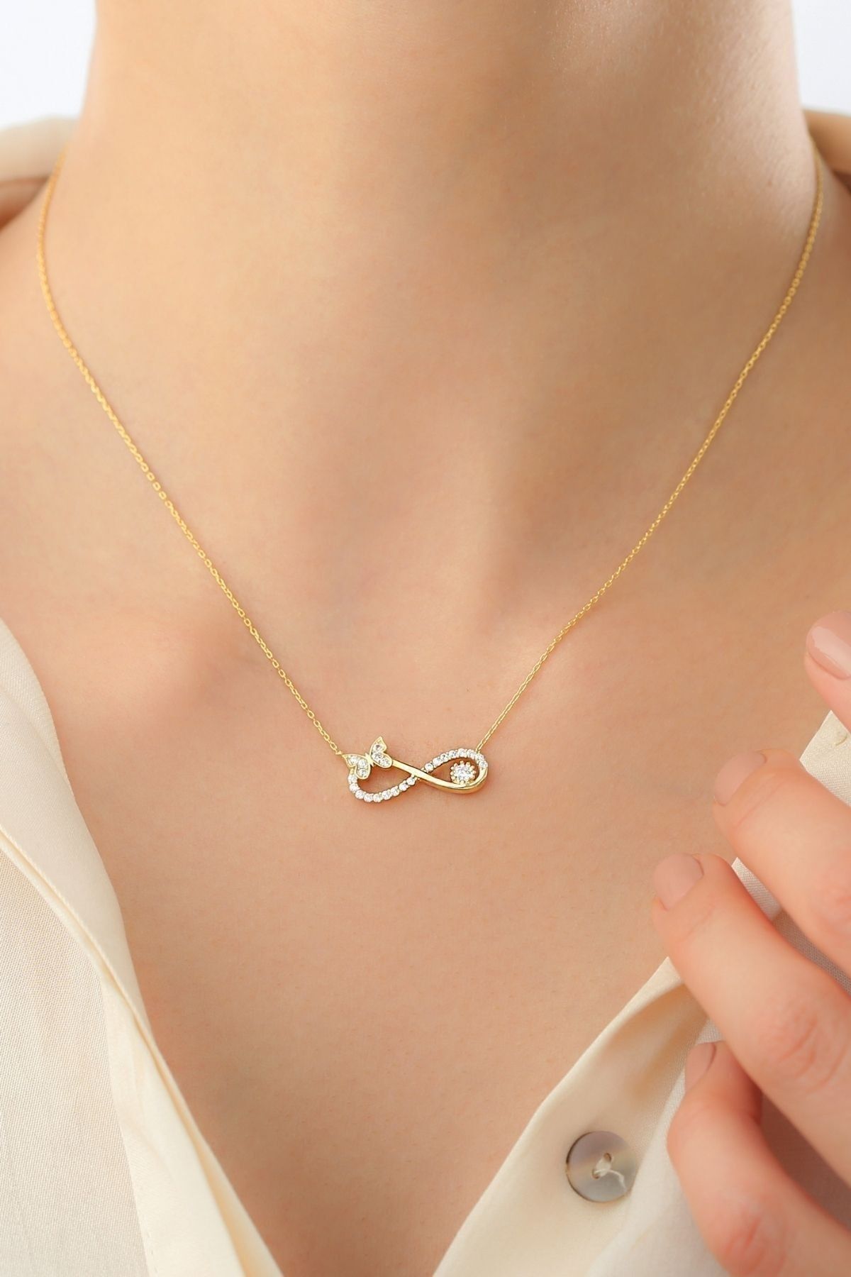925 Ayar Gümüş Kelebekli Sonsuzluk Kolye