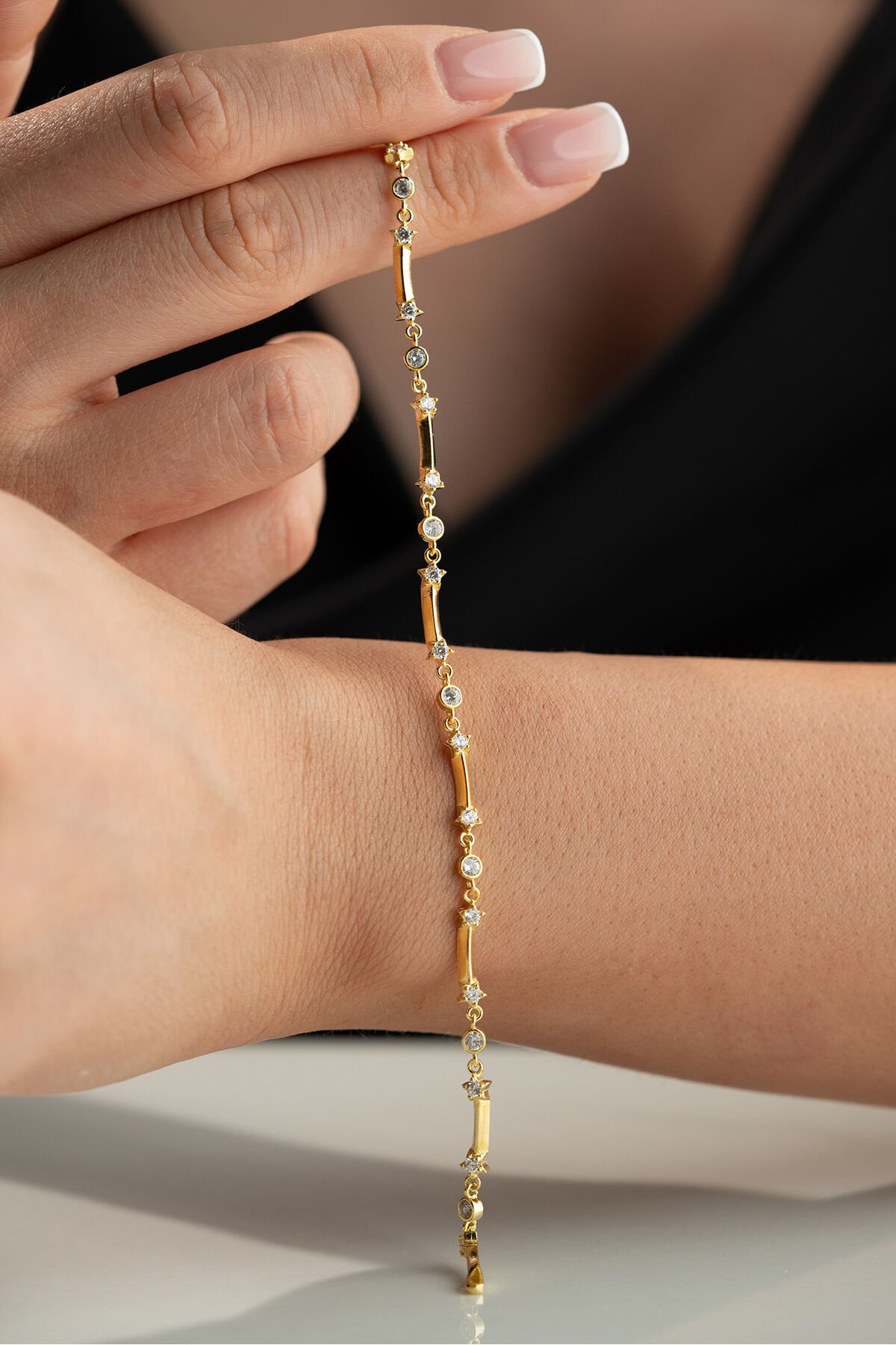 925 Ayar Gümüş bileklik ; Zarif ve ince tasarımı ile her kombine uyum sağlayan bu kolye, günlük kullanım için idealdir.; - Malzeme: 925 ayar gümüş - Boy: 42 cm (idealdir ve rahat bir kullanım sunar) - Özellikler: Hafif ve zarif yapısı ile boynunuza doğal bir ışıltı katar.; 925 Ayar Gümüş Bilekliğimiz Sade ama şık tasarımı ile bileğinize ince bir dokunuş katın.; Günlük ve özel günlerde rahatça kullanabilirsiniz.; - Malzeme: 925 ayar gümüş - Boy: Ayarlanabilir (17 cm - 20 cm arası) - Özellikler: Dayanıklı yapısı ile uzun ömürlü kullanım sağlar, hafif ve rahattır.; Tabii, işte kısa ve anlaşılır bir şekilde 925 ayar gümüş takıların saklama ve kullanma koşulları: 925 Ayar Gümüş Takıların Saklama Koşulları: - Kuru ve serin yerde saklayın: Gümüş takılar nemden uzak tutulmalıdır.; Nem, gümüşün kararmasına neden olabilir.; - Kapalı kutuda muhafaza edin: Takılarınızı hava almayan mücevher kutusunda veya kumaş keselerde saklayarak oksitlenmeyi önleyebilirsiniz.; - Diğer takılarla temas ettirmeyin: Çizilmeleri önlemek için gümüş takılarınızı diğer takılardan ayrı tutun.; 925 Ayar Gümüş Takıların Kullanma Koşulları: - Su ve kimyasallardan uzak tutun: Gümüş takılarınızı parfüm, krem, saç spreyi gibi kimyasallarla temas ettirmeyin ve suya maruz bırakmayın.; - Düzenli temizleyin: Yumuşak bir bezle düzenli olarak temizleyerek parlaklığını koruyun.; - Uyurken ve spor yaparken çıkartın: Takılarınızı zarar görmemesi için uyurken, spor yaparken veya yoğun fiziksel aktivitelerde çıkarın.; Bu basit kurallar, gümüş takılarınızın uzun ömürlü ve parlak kalmasını sağlayacaktır.;