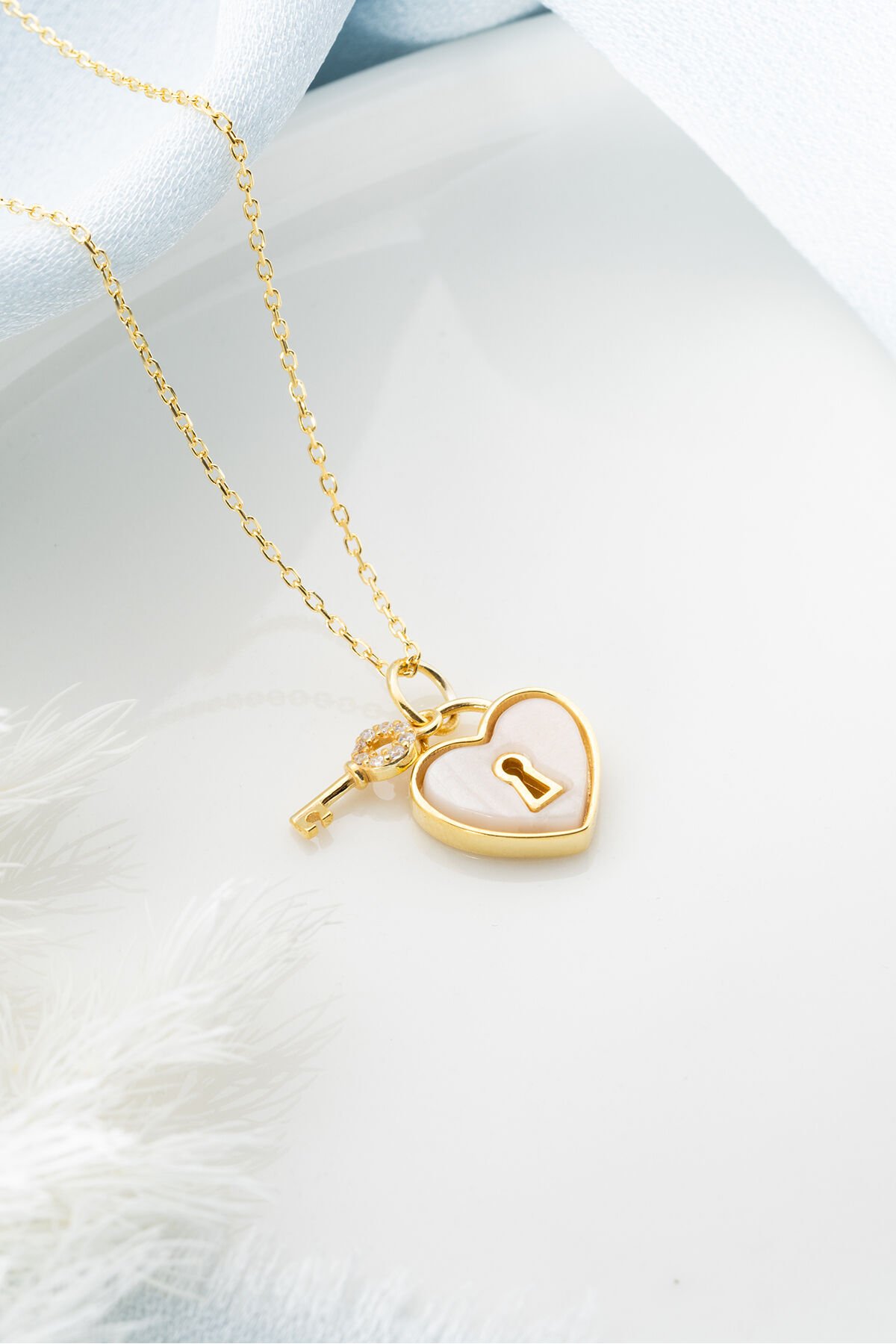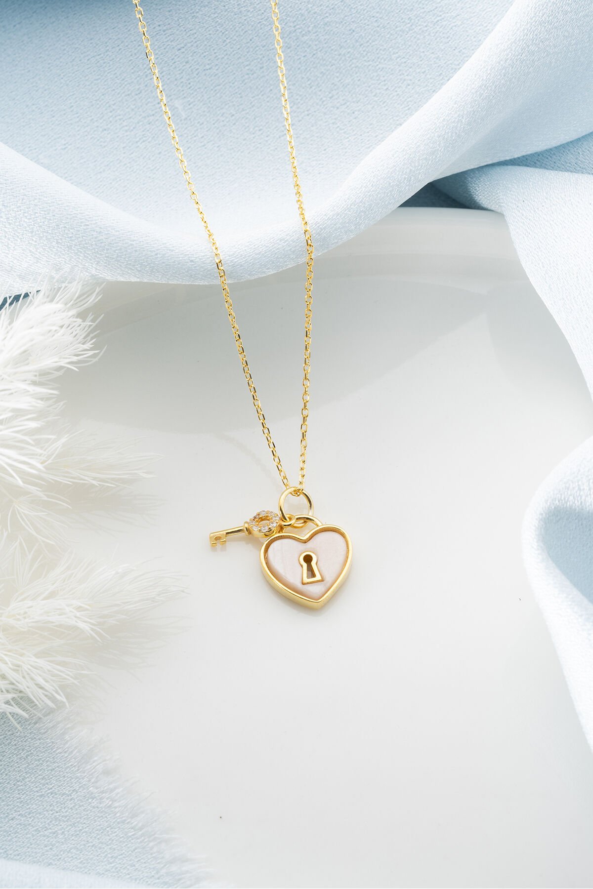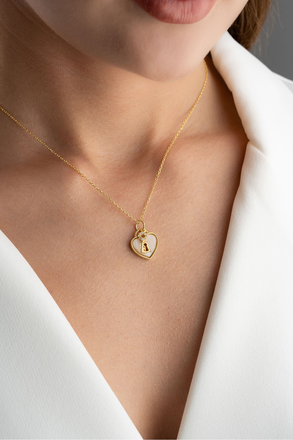 925 Ayar Gümüş Kilit Kalp Kolye