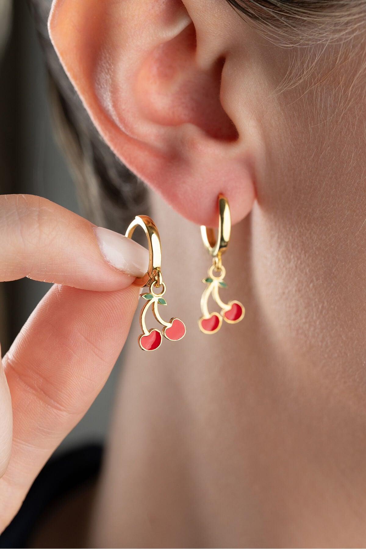 925 Ayar Gümüş Kiraz Çocuk Küpe