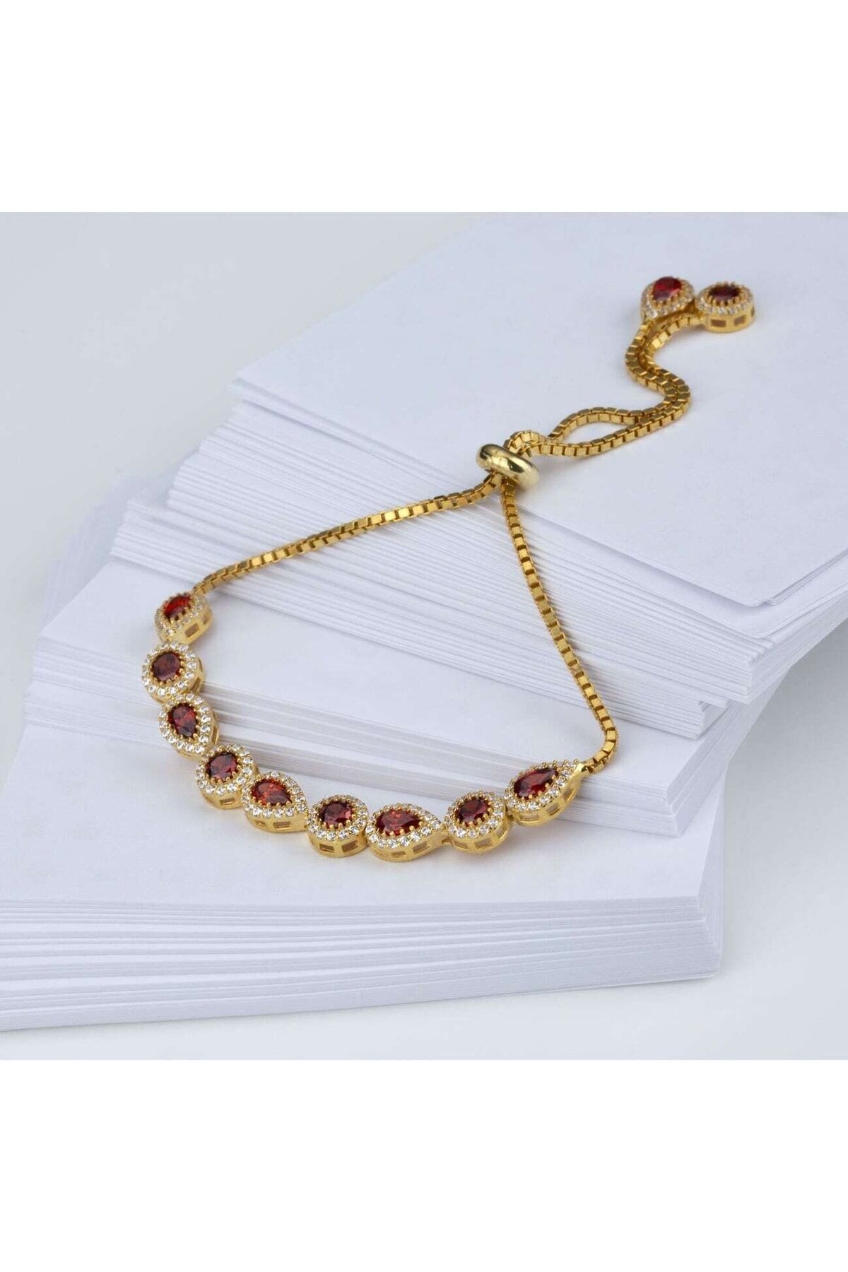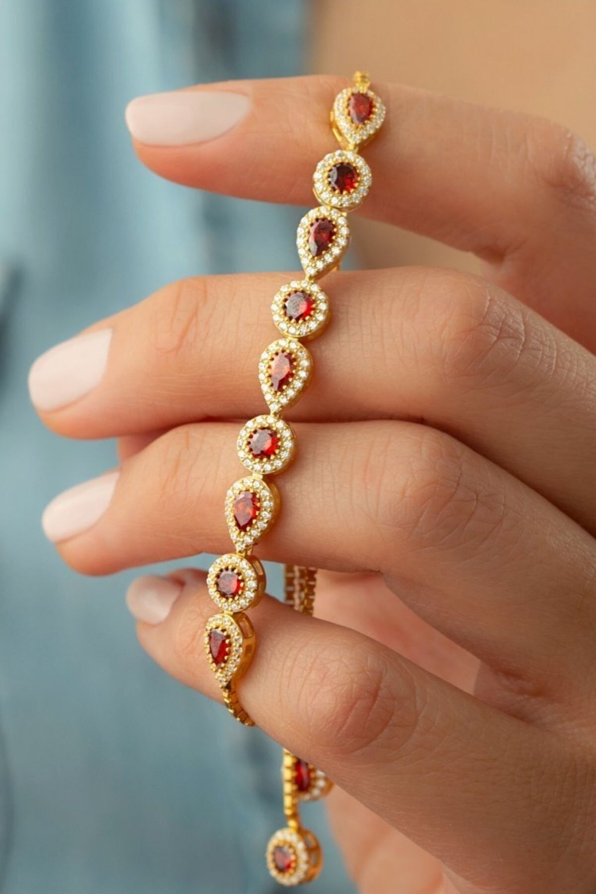 925 Ayar Gümüş Kırmızı Damla Taşlı Asansörlü Bileklik