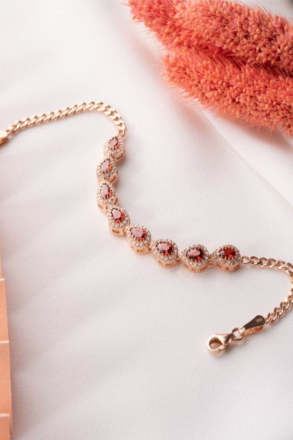 925 Ayar Gümüş Kırmızı Taşlı Damla Bileklik