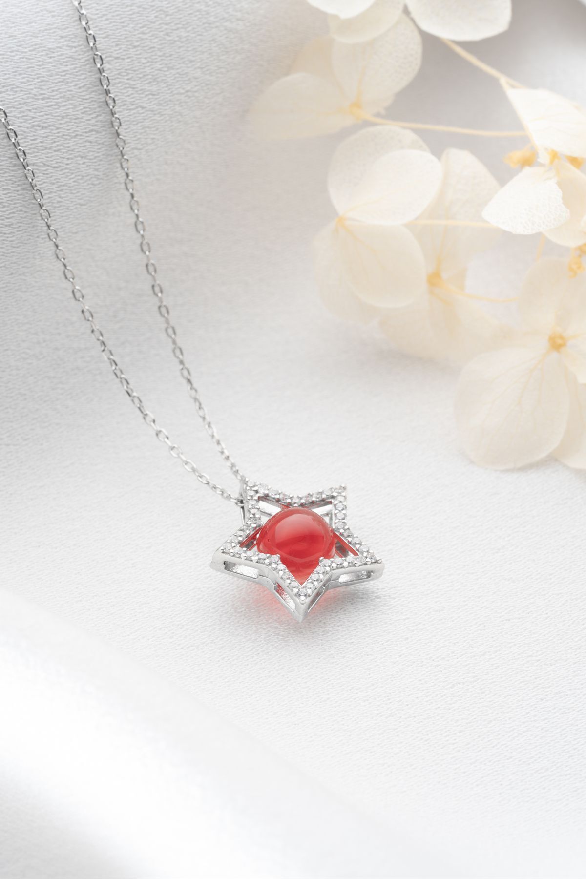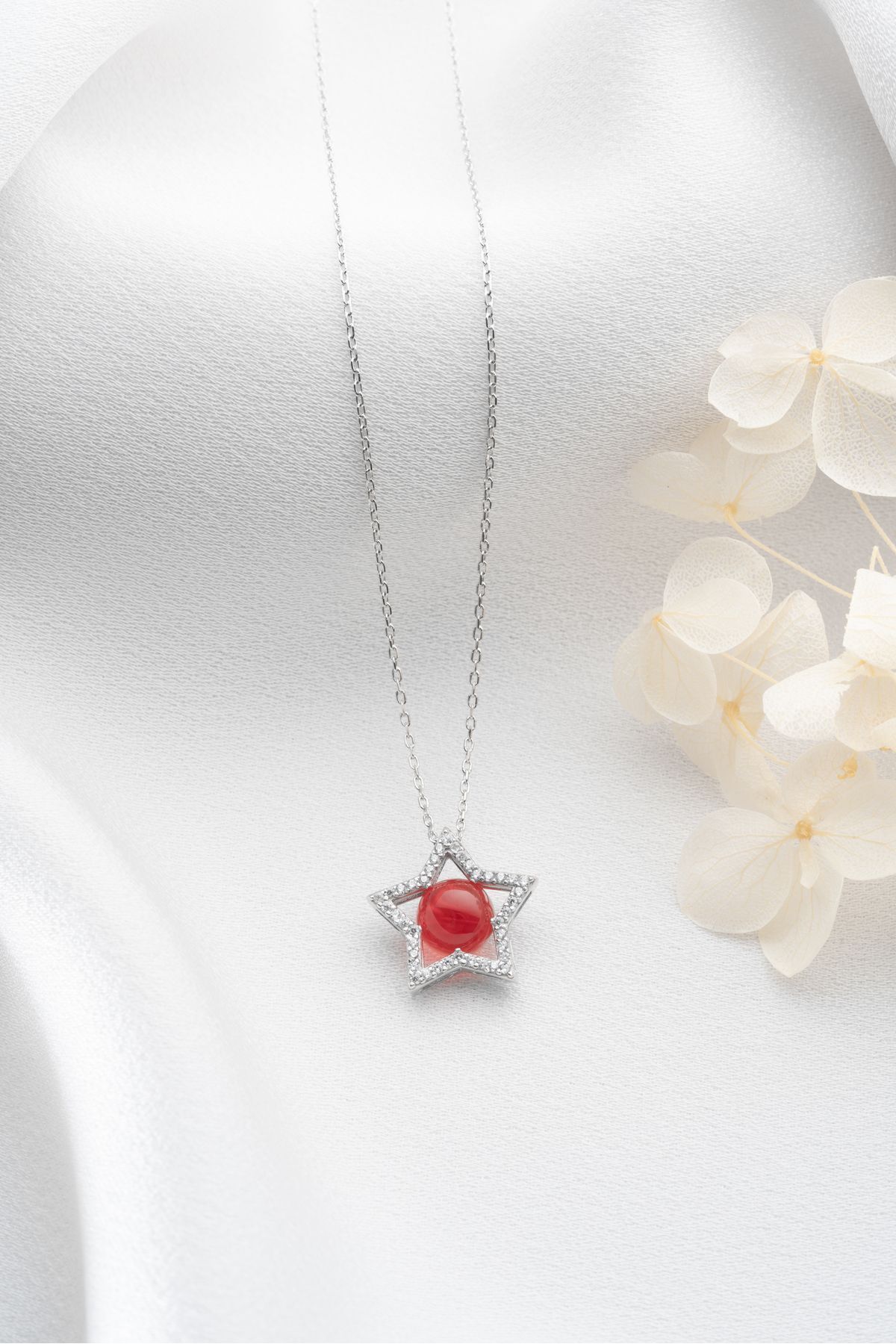 925 Ayar Gümüş Kırmızı Yıldız Kolye