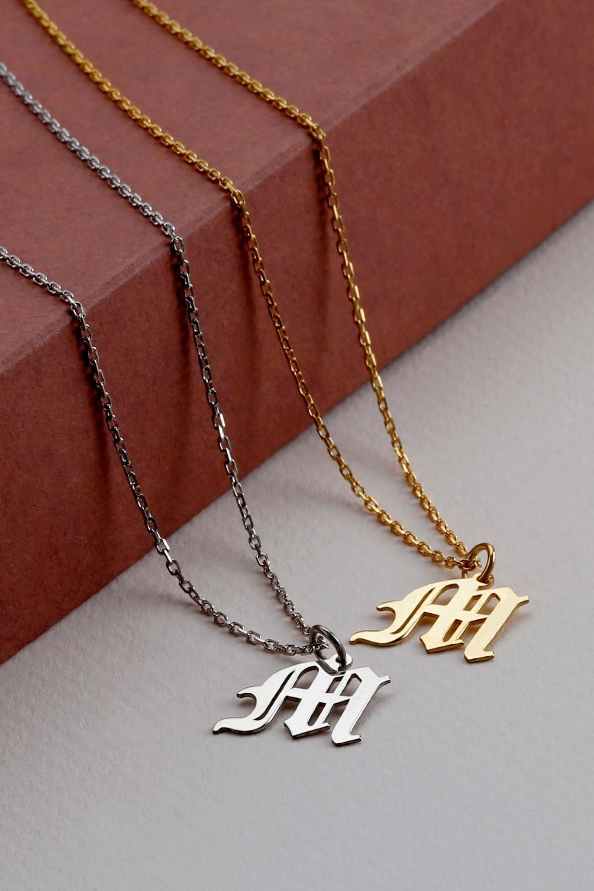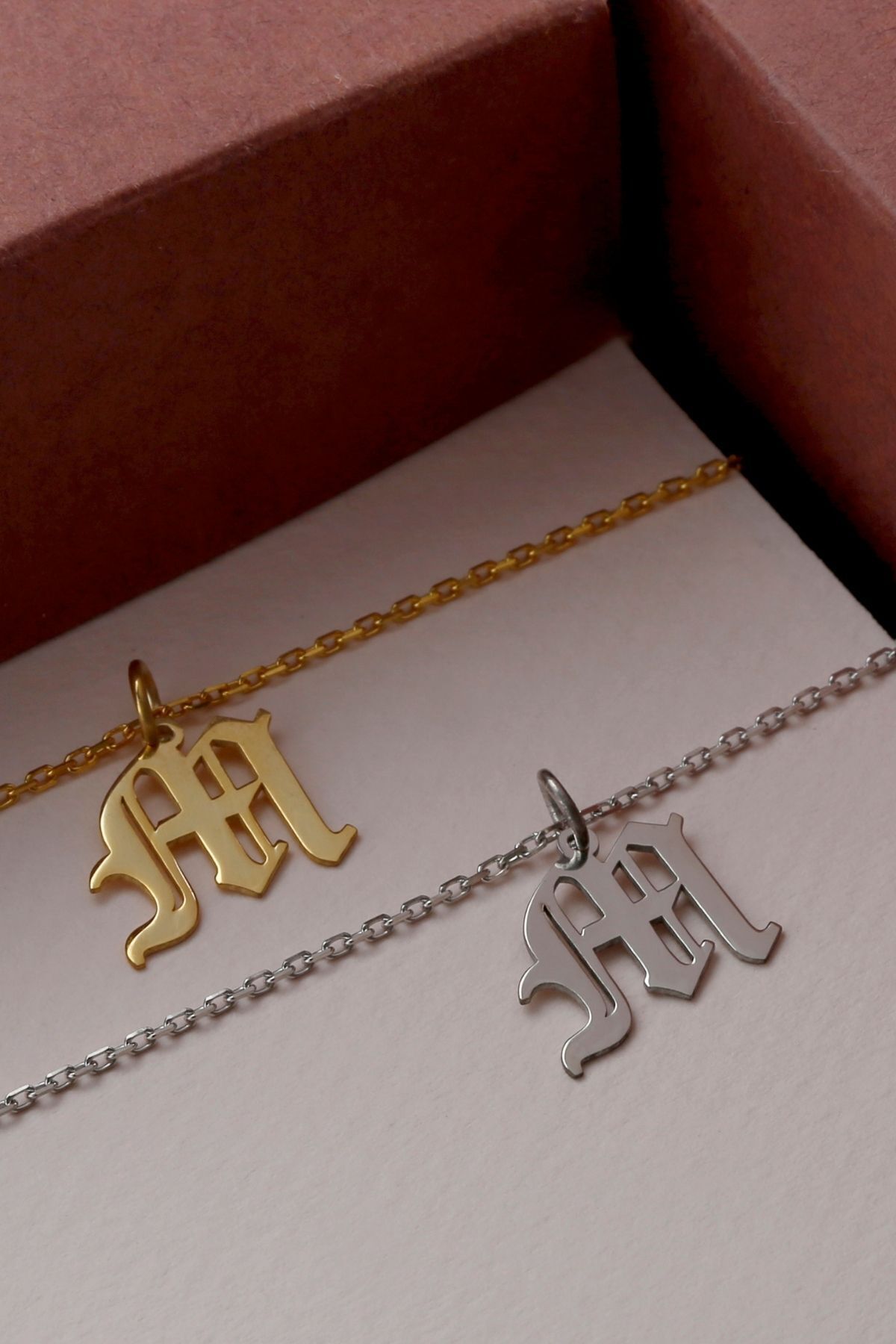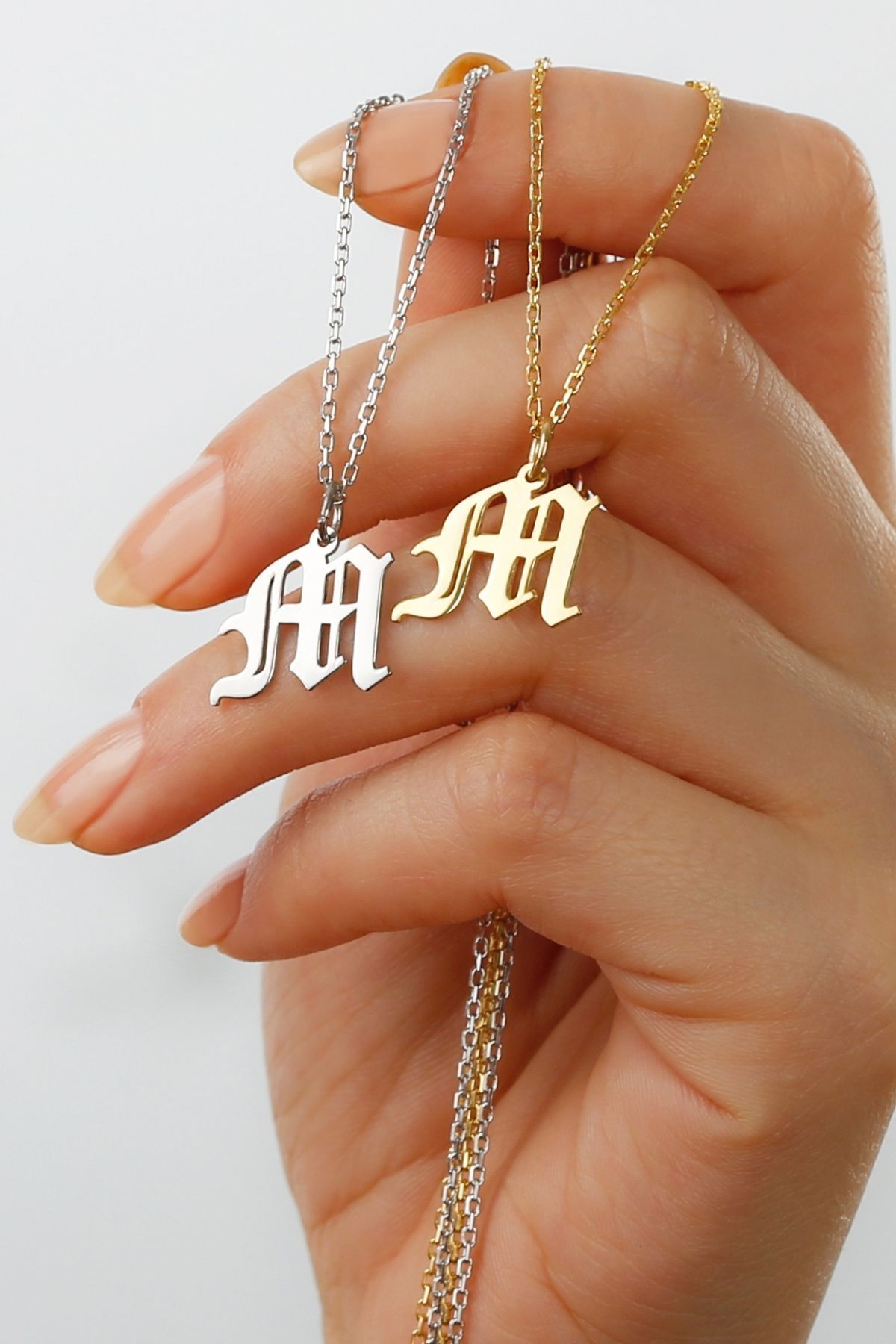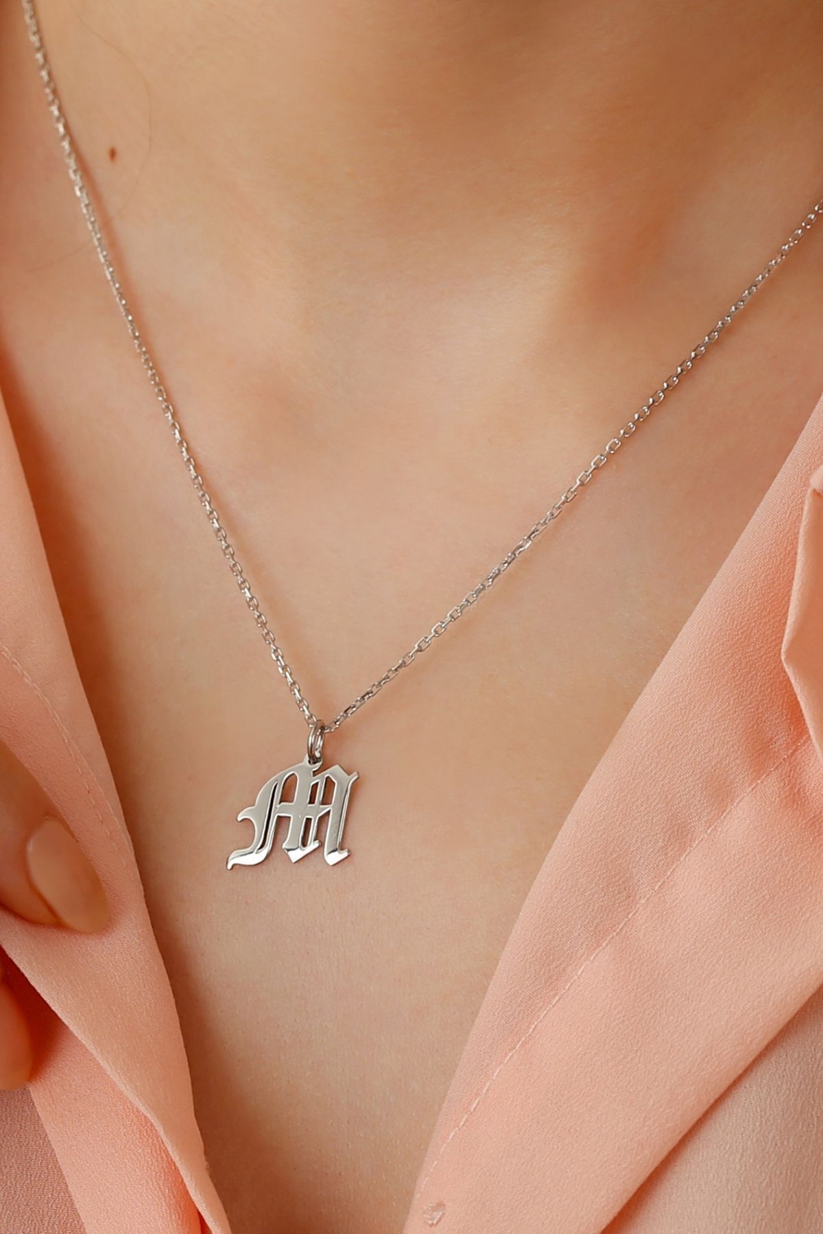 925 Ayar Gümüş Kişiye Özel Eski Ingiliz Harfli Kolye