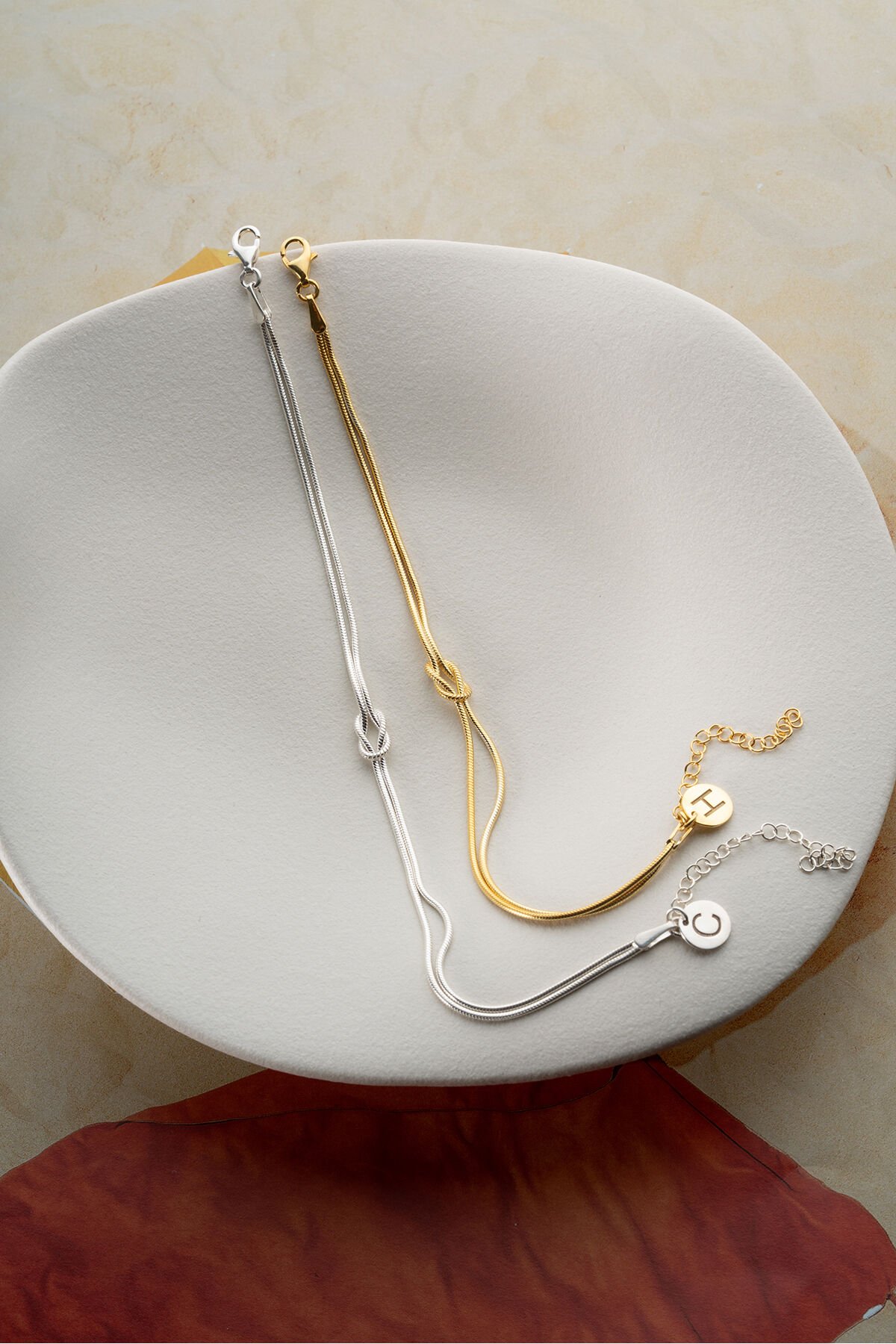 925 Ayar Gümüş Kişiye Özel Harfli Aşk Düğüm Çift Bileklik