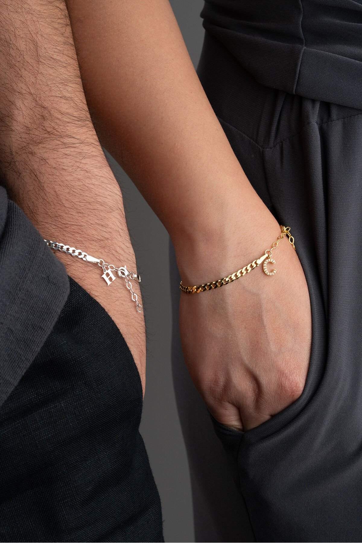 925 Ayar Gümüş Kişiye Özel Harfli Çift Bileklik