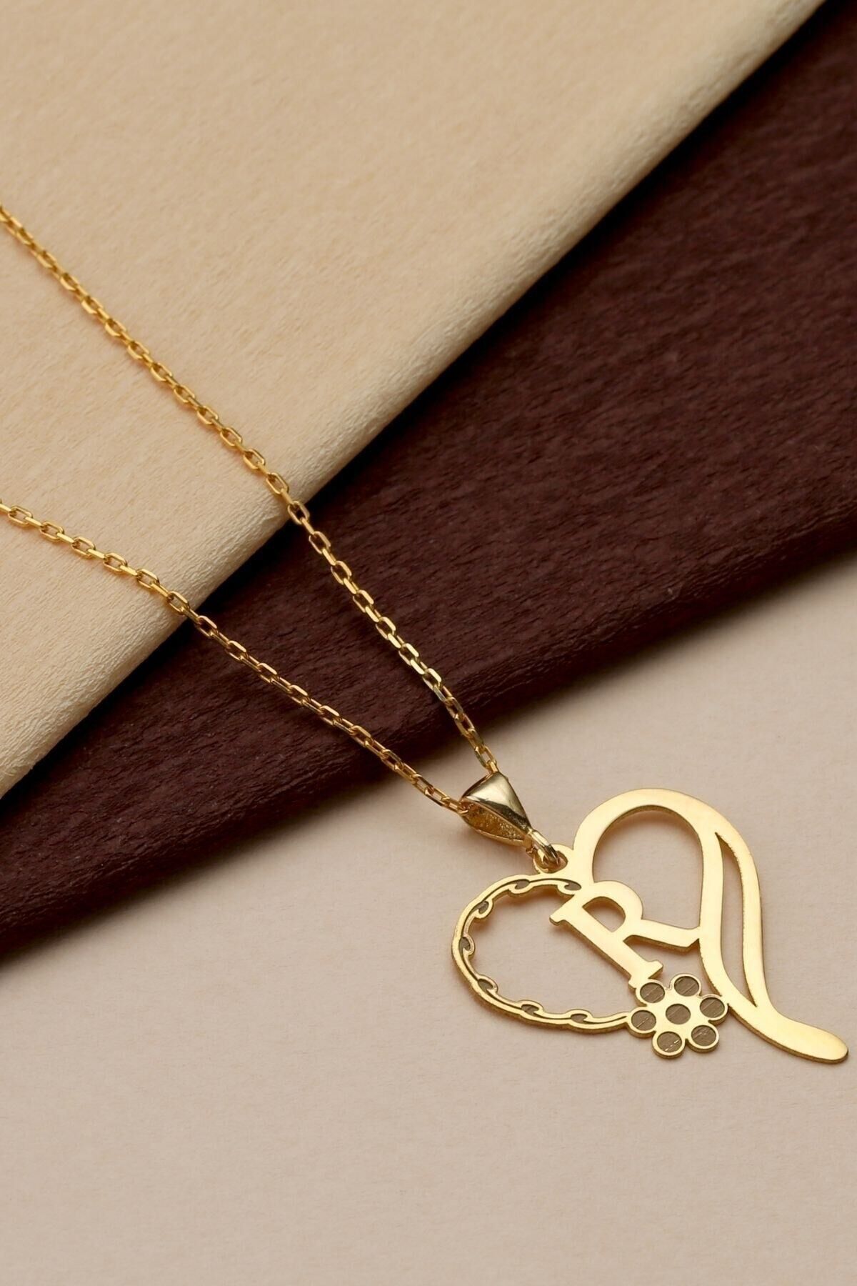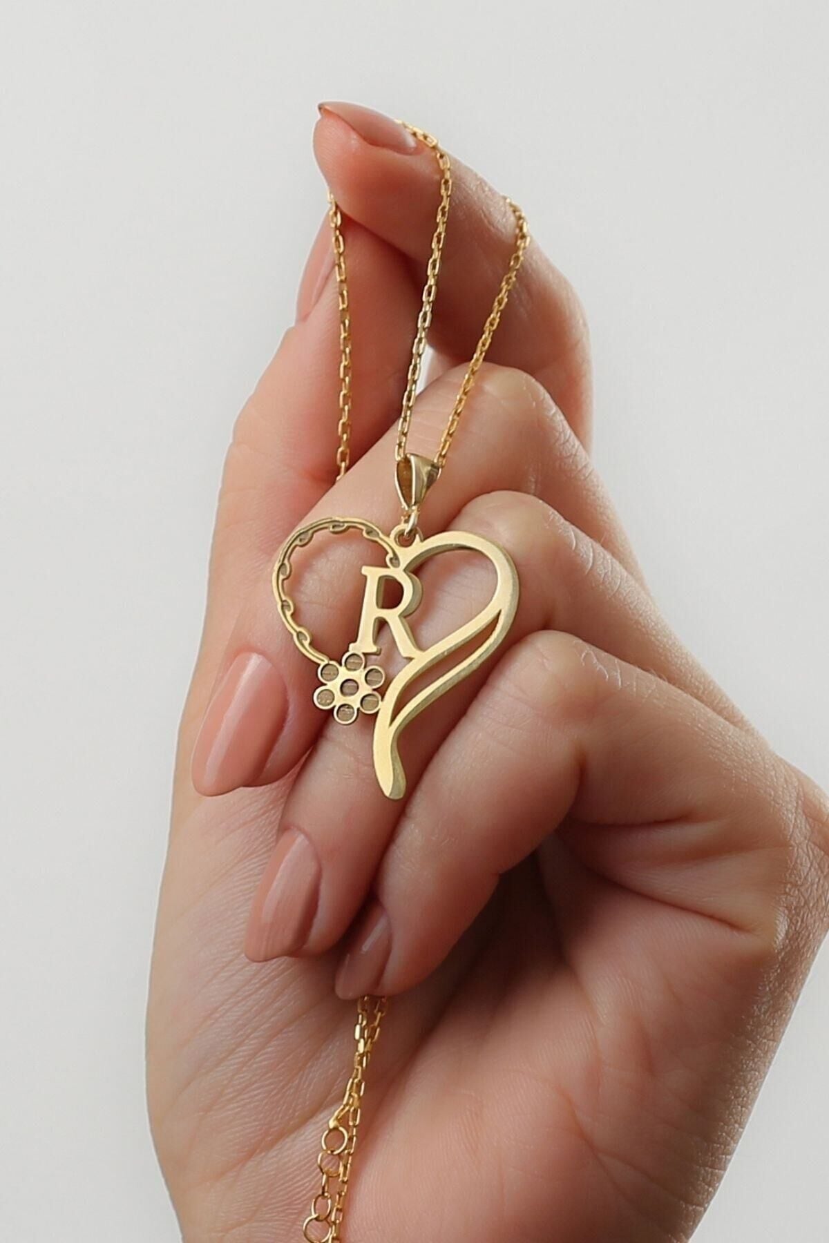 925 Ayar Gümüş Kişiye Özel Harfli Kalp Detaylı Papatya Kolye