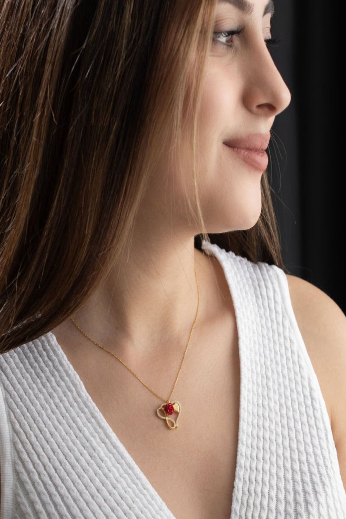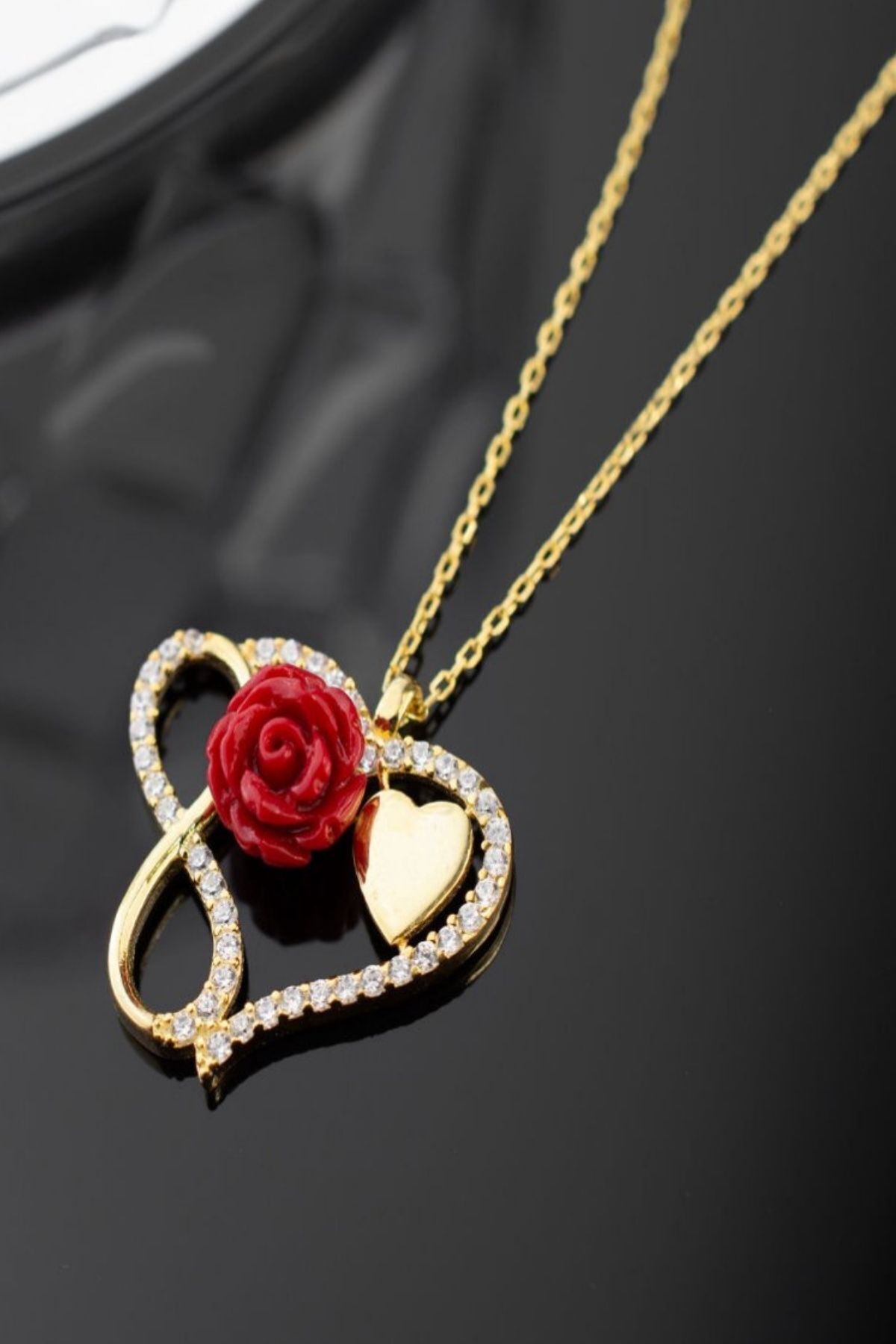 925 Ayar Gümüş Kişiye Özel Harfli Kalpli Gül Kolye