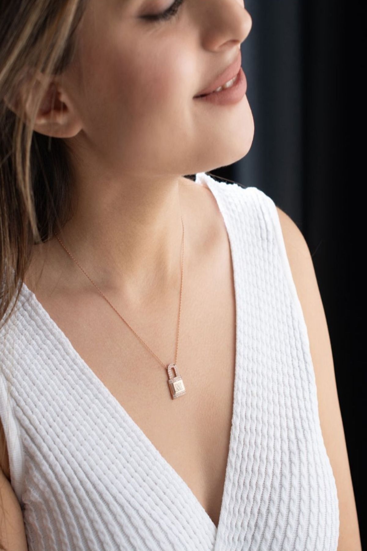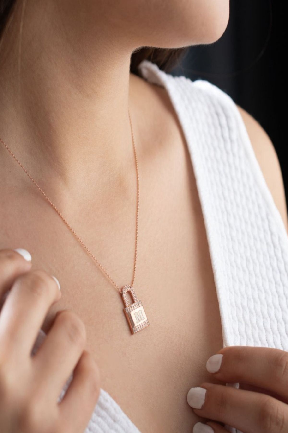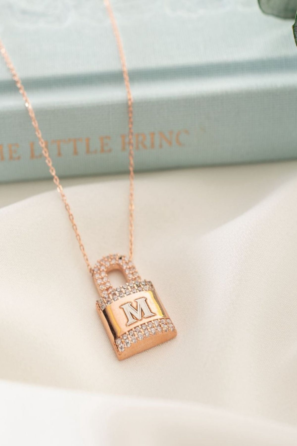 925 Ayar Gümüş Kişiye Özel Harfli Kilit Kolye ( Rose Gold )