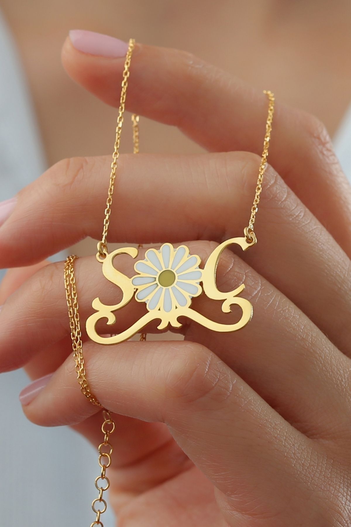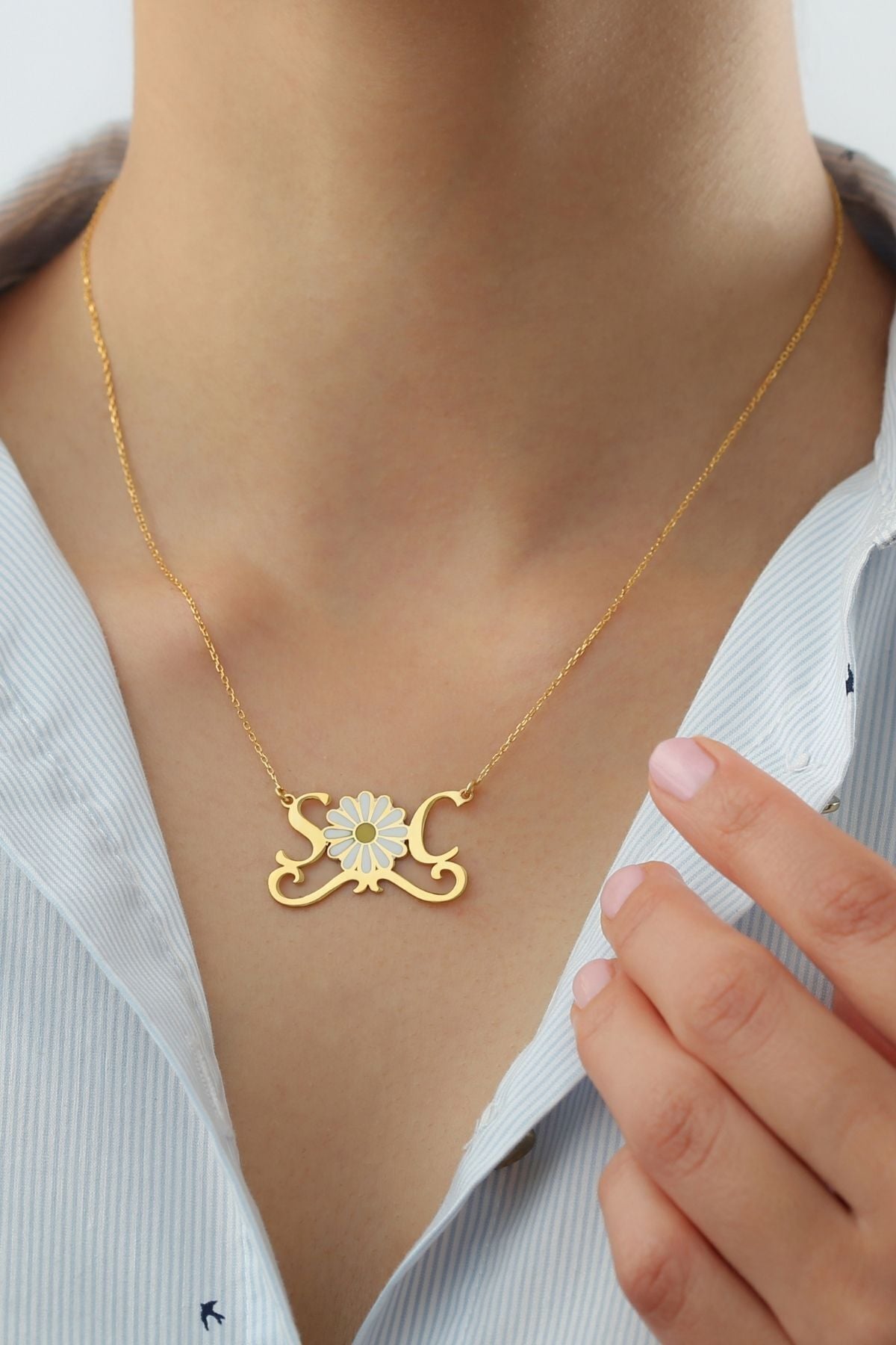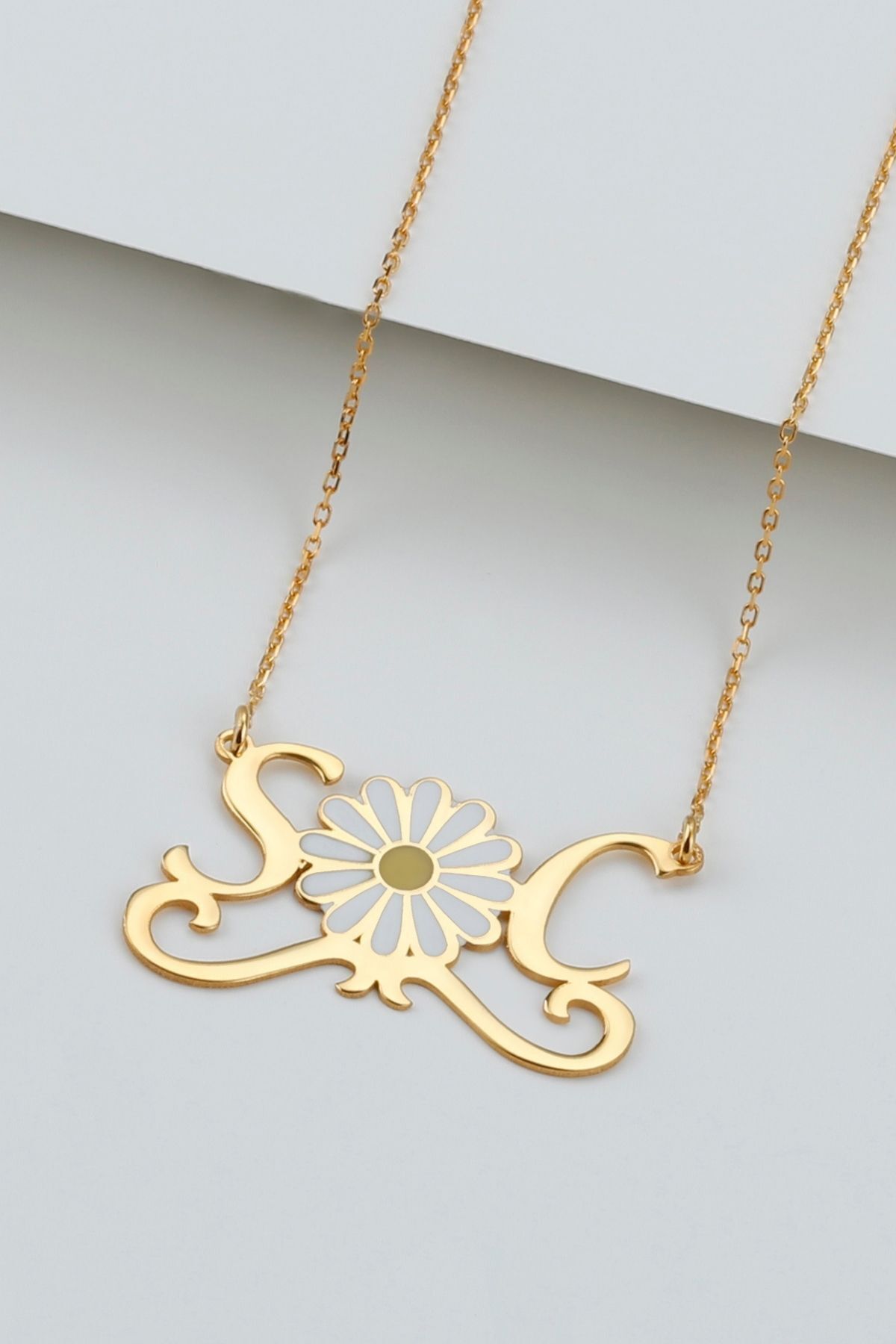 925 Ayar Gümüş Kişiye Özel Harfli Papatya Kolye