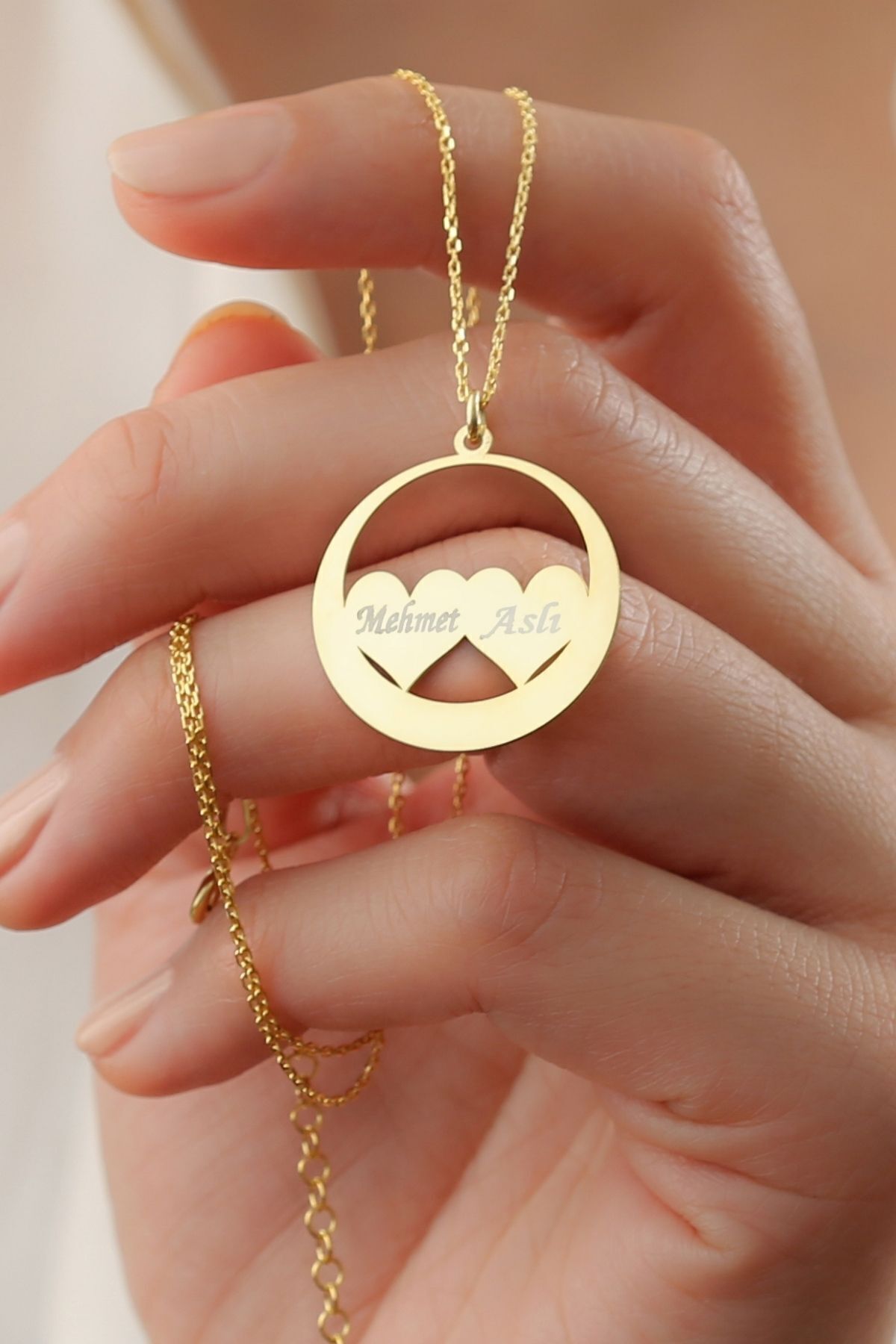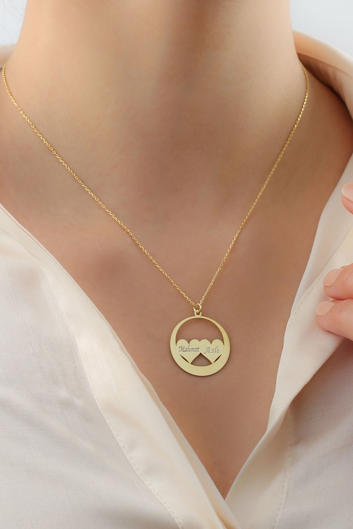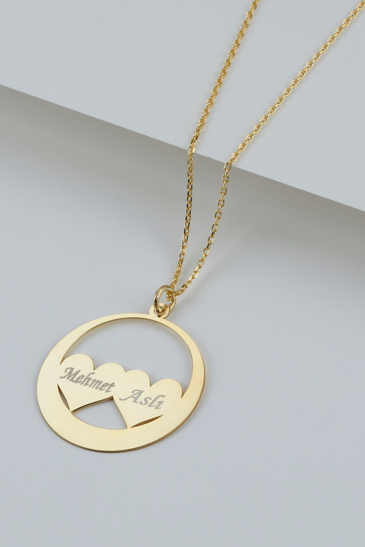 925 Ayar Gümüş Kişiye Özel Iki Kalpli Plaka Kolye