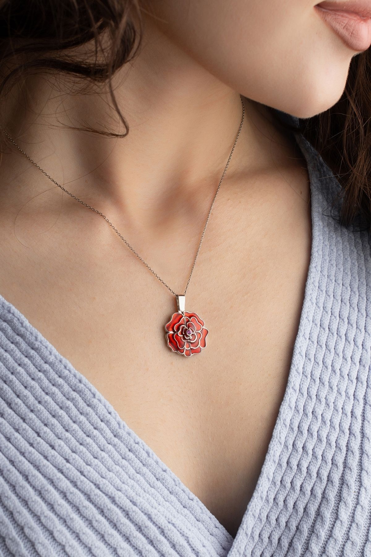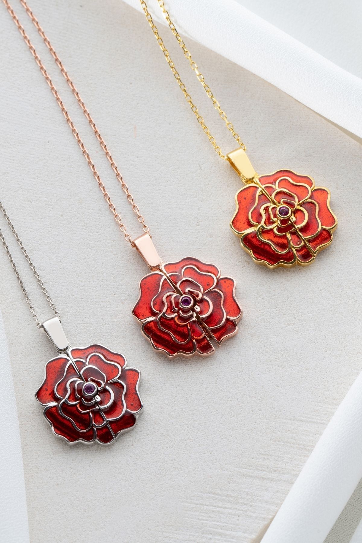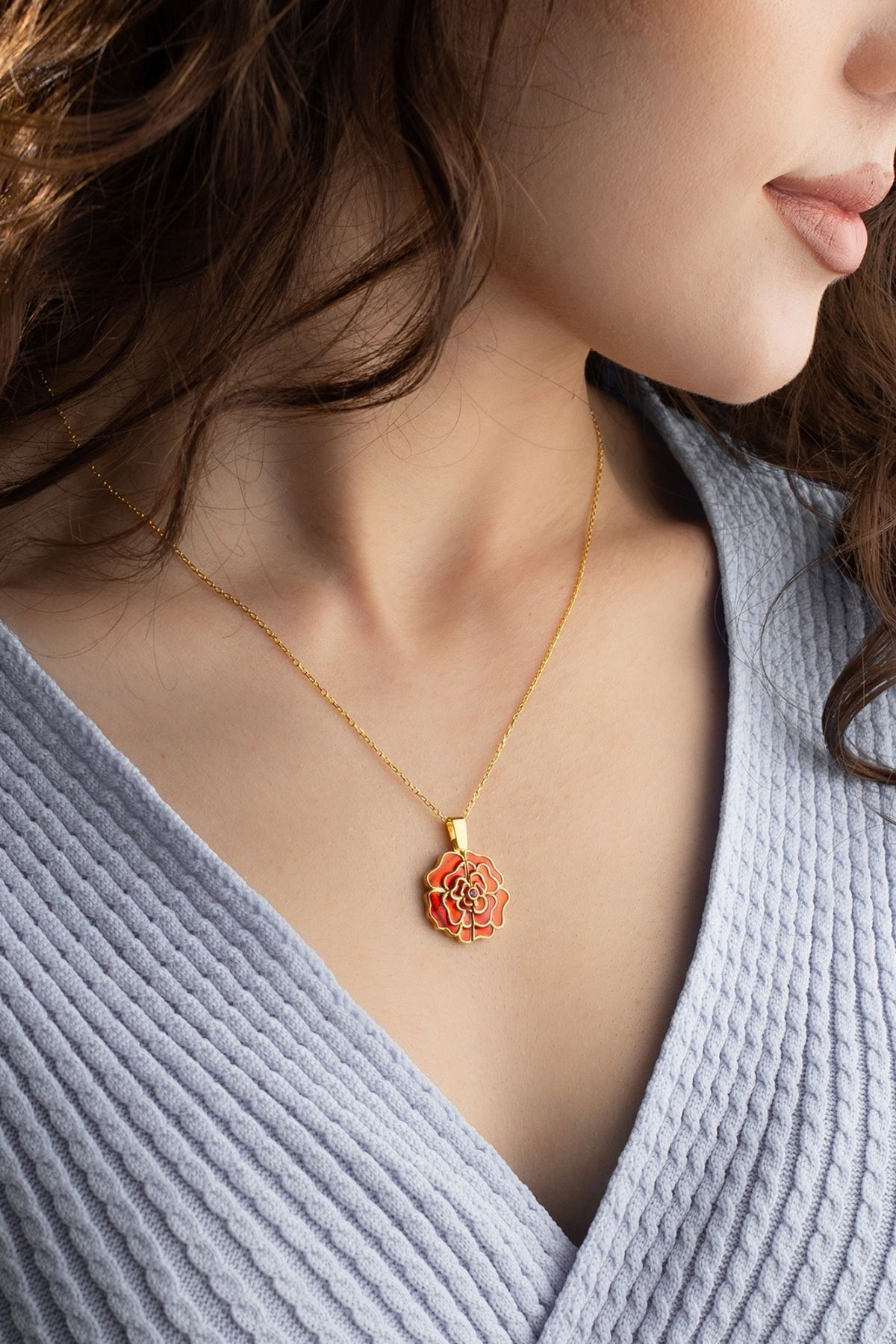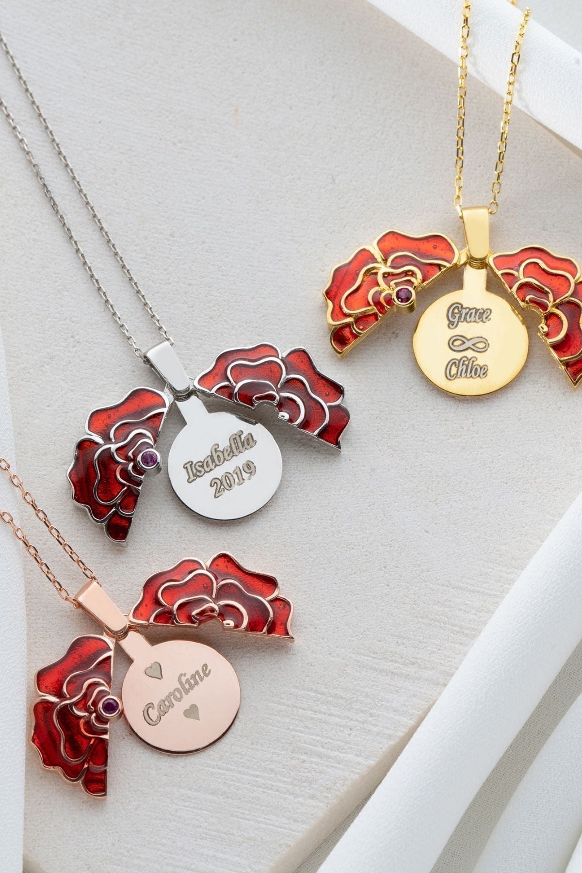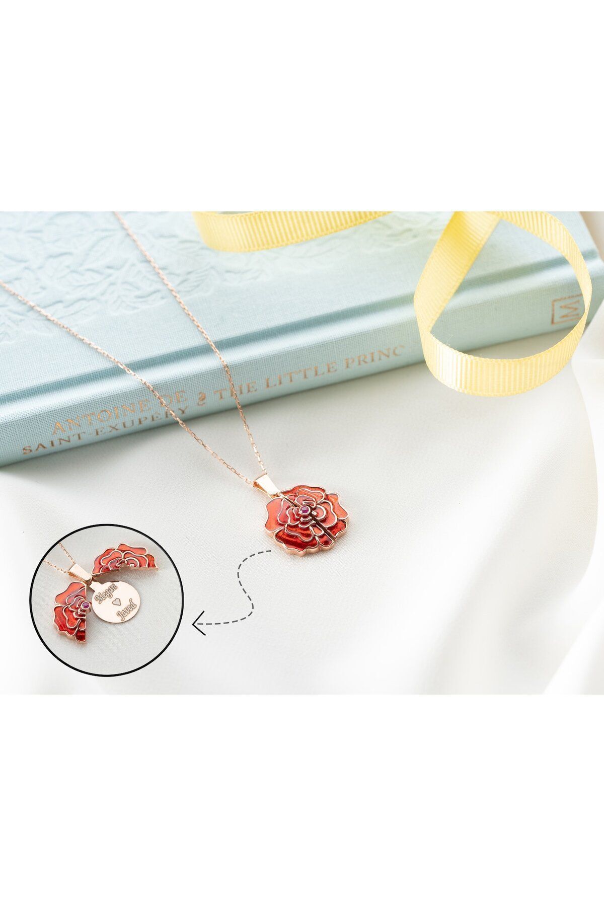 925 Ayar Gümüş Kişiye Özel Isimli Açılan Gül Kolye