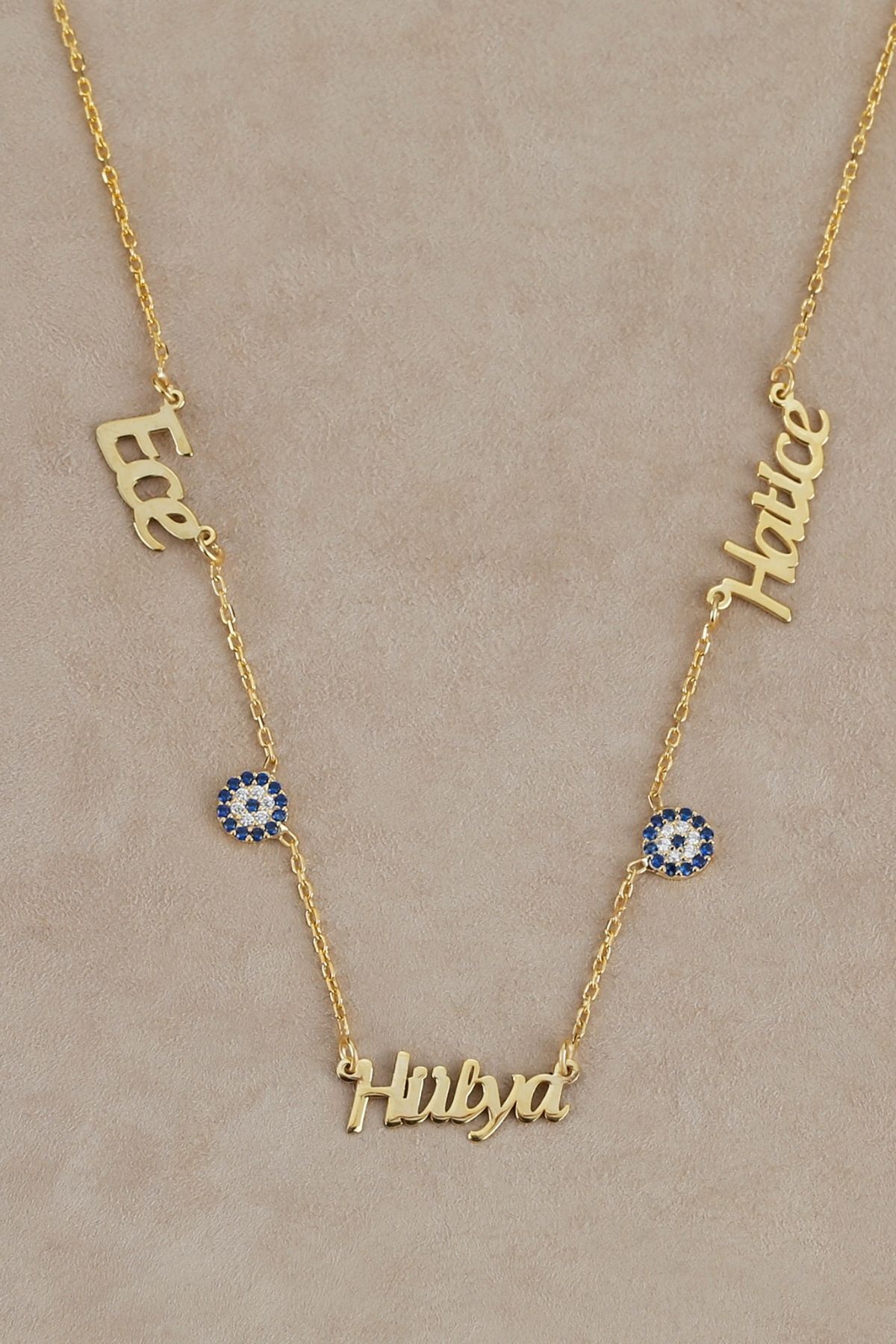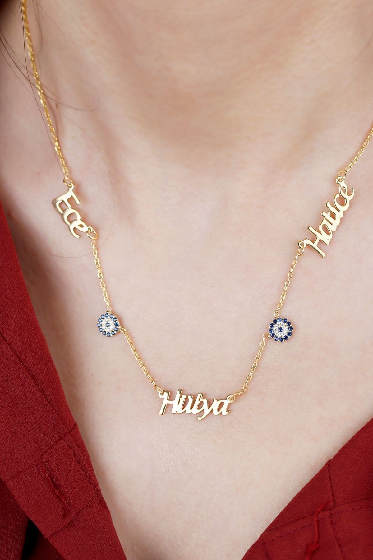 925 Ayar Gümüş Kişiye Özel Isimli Nazar Boncuklu Kolye