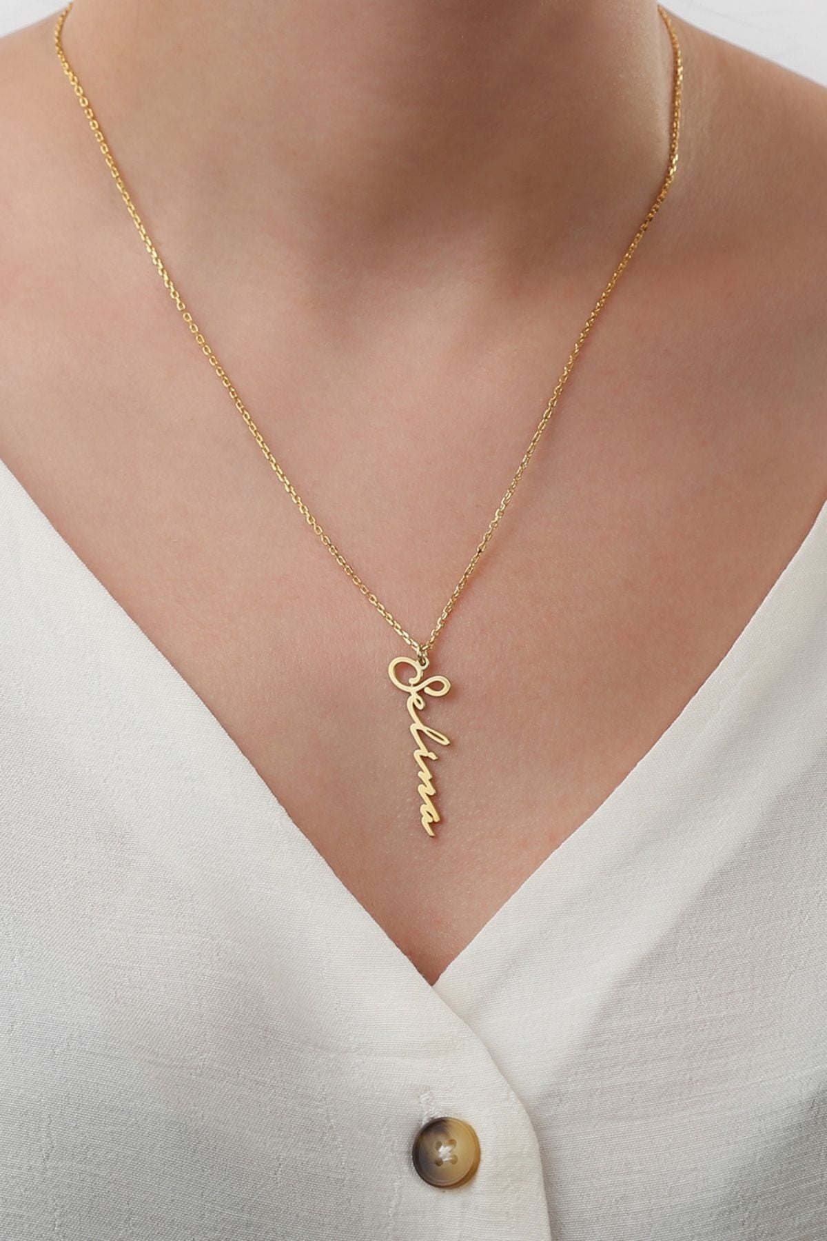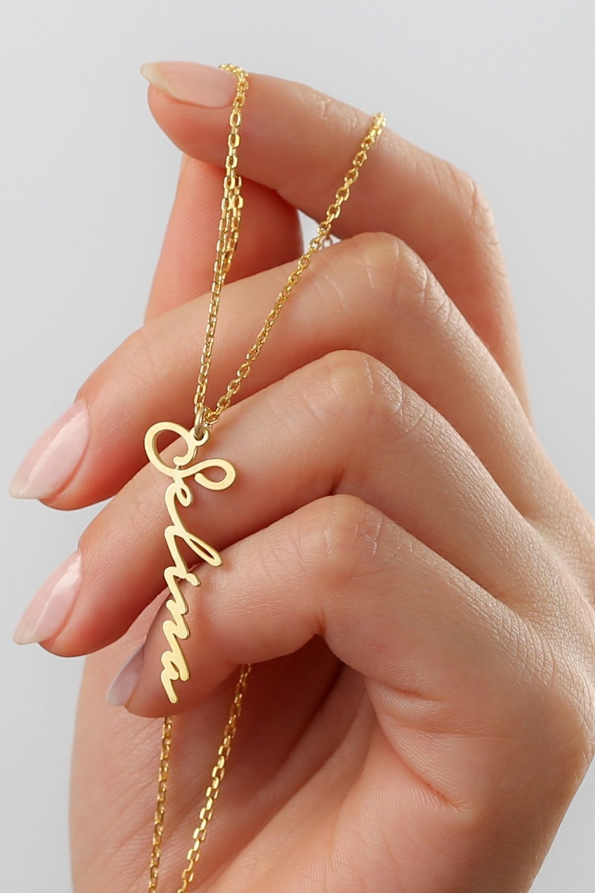 925 Ayar Gümüş Kişiye Özel Italik Isimli Kolye (gold)