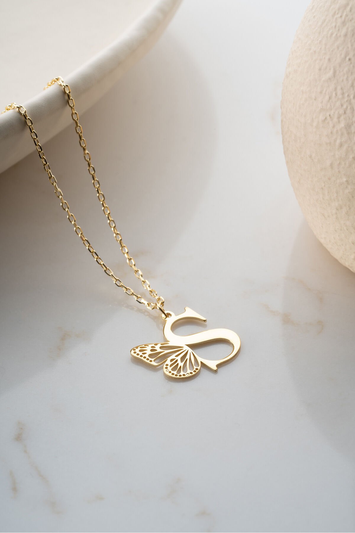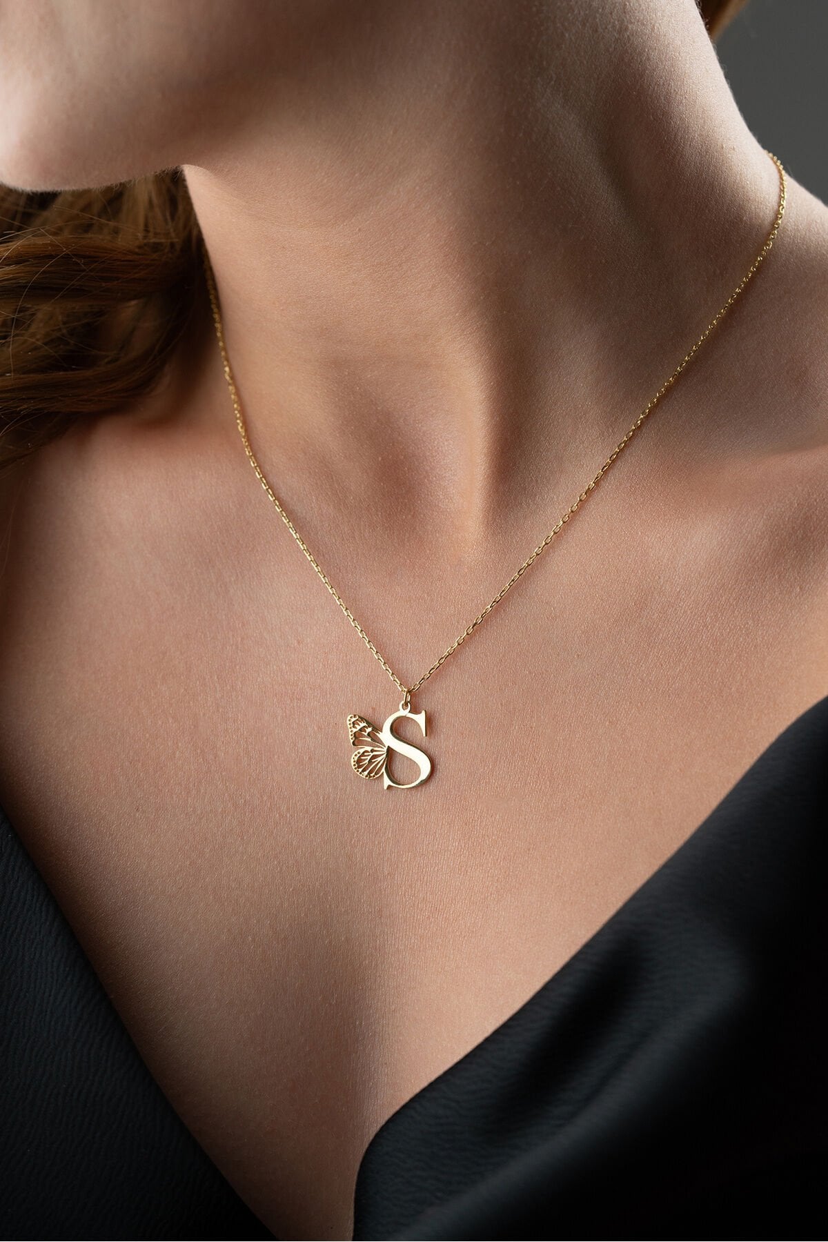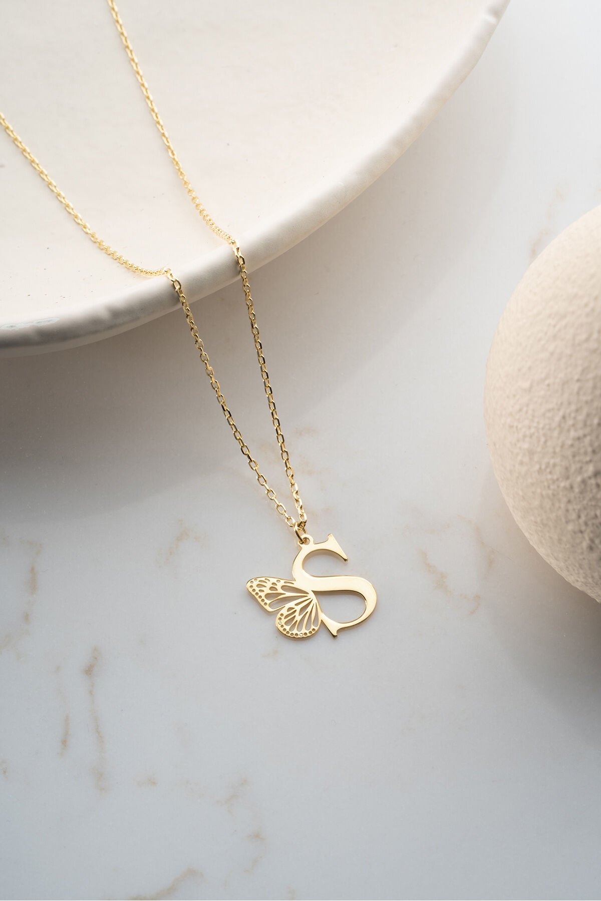 925 Ayar Gümüş Kişiye Özel Kanatlı Harf Kolye