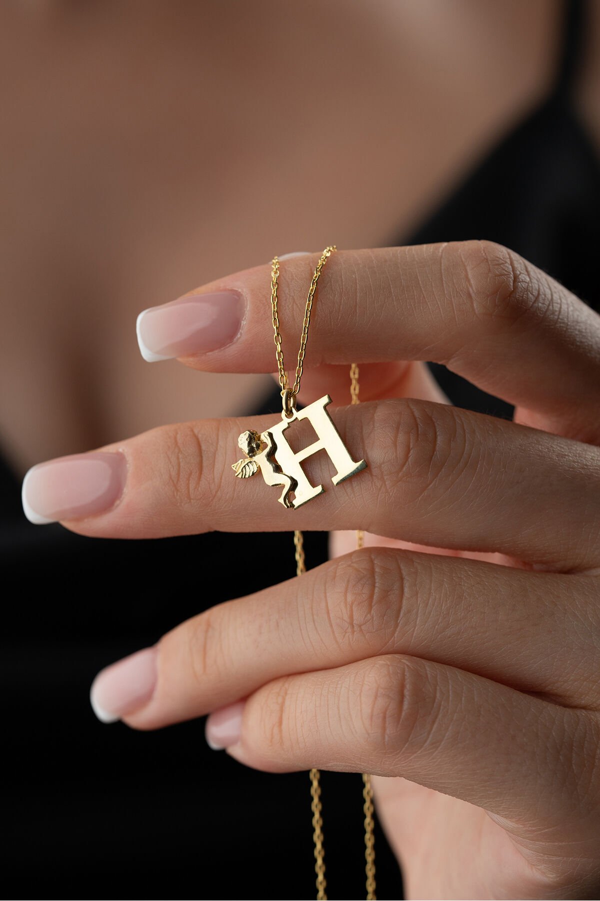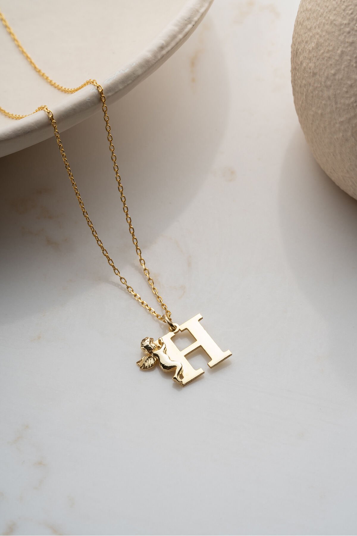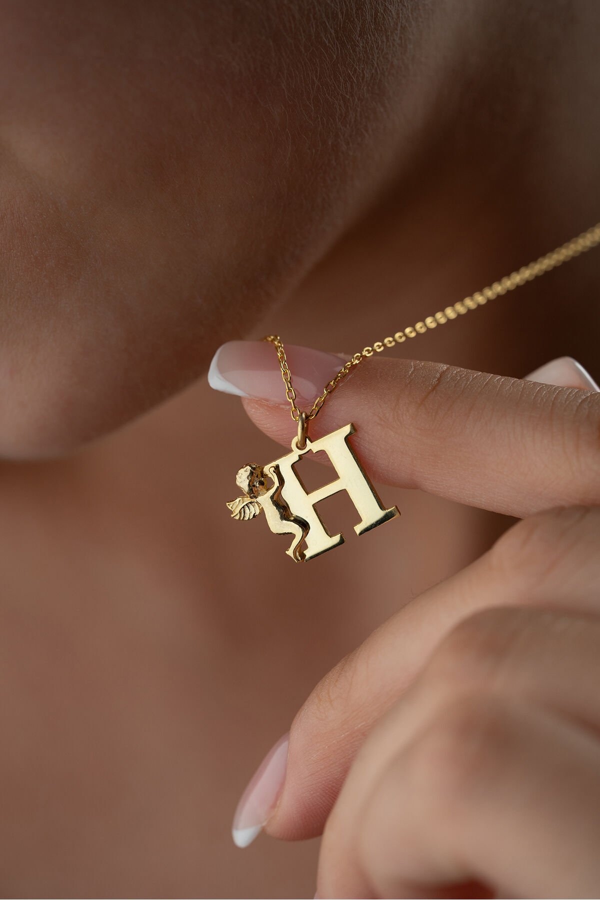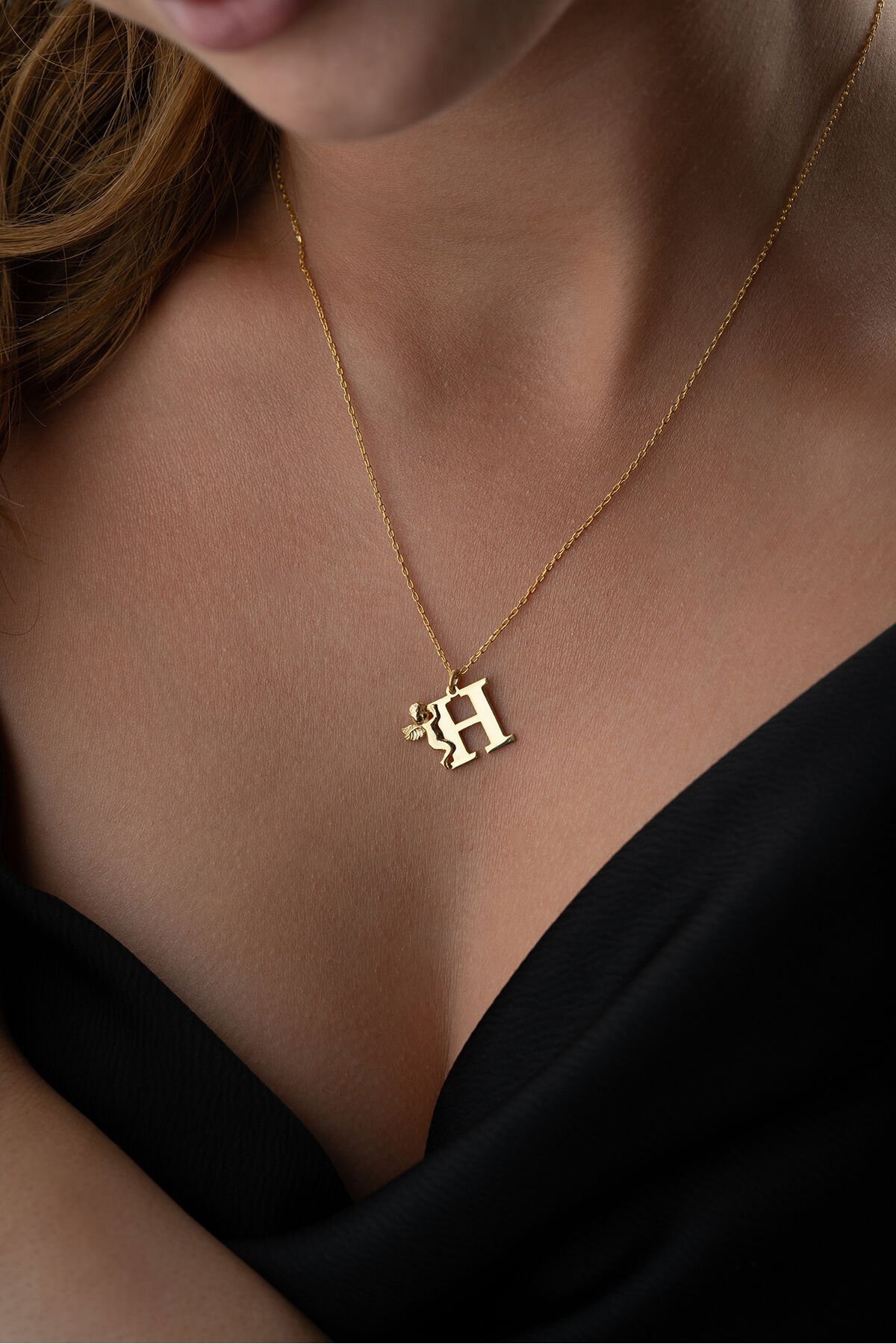 925 Ayar Gümüş Kişiye Özel Melekli Harf Kolye