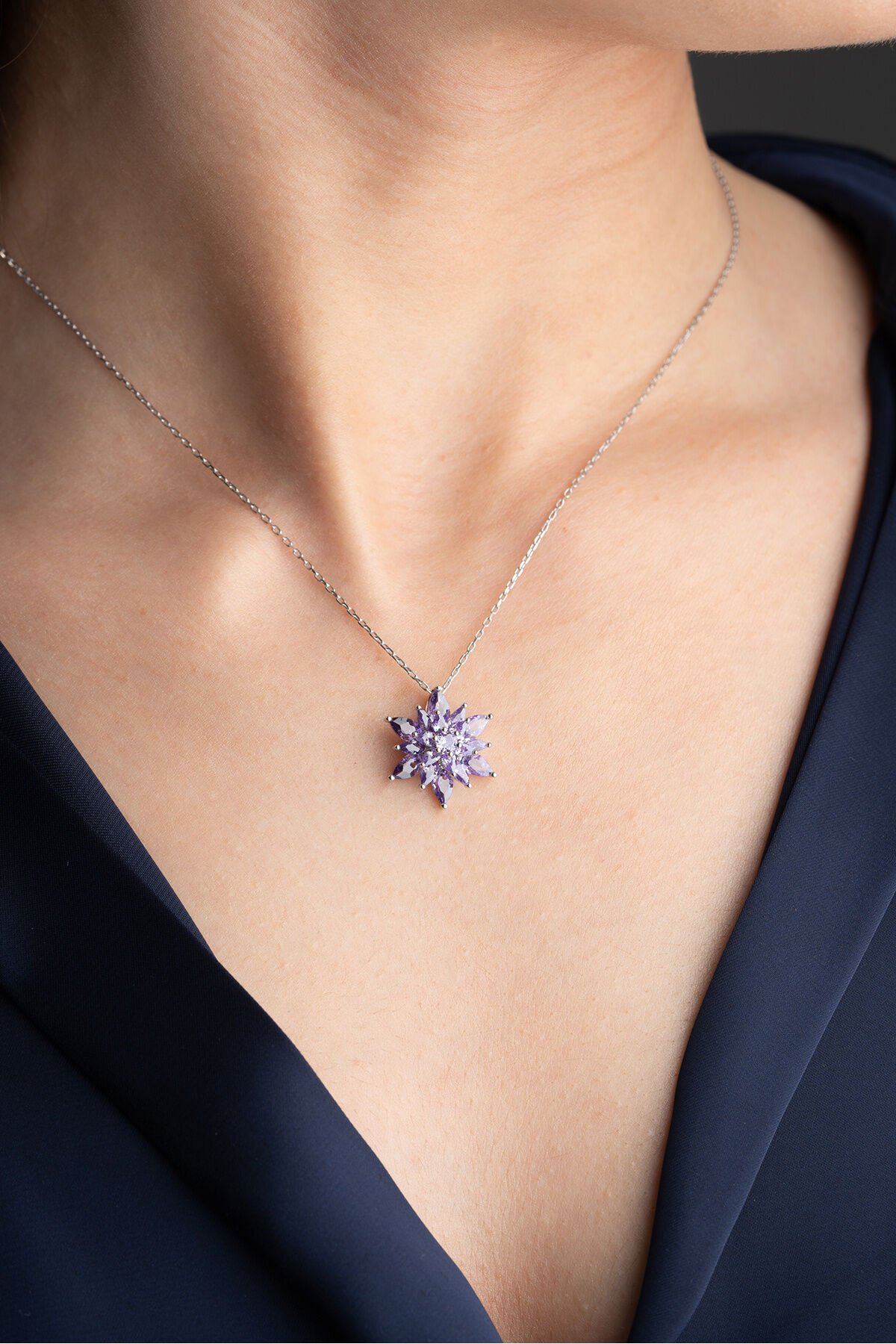 925 Ayar Gümüş Lila Lotus Çiçeği Kolye