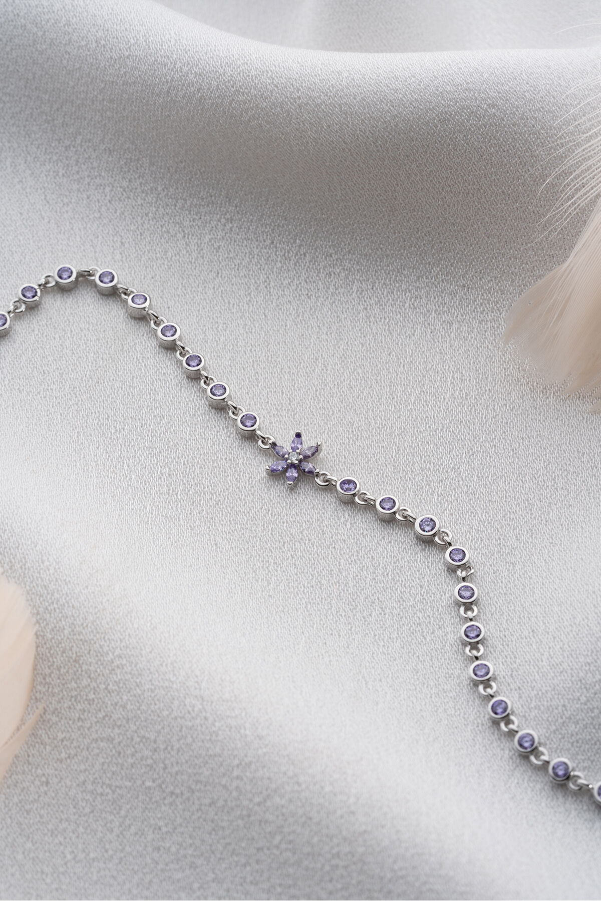 925 Ayar Gümüş Lila Taşlı Lotus Su Yolu Bileklik
