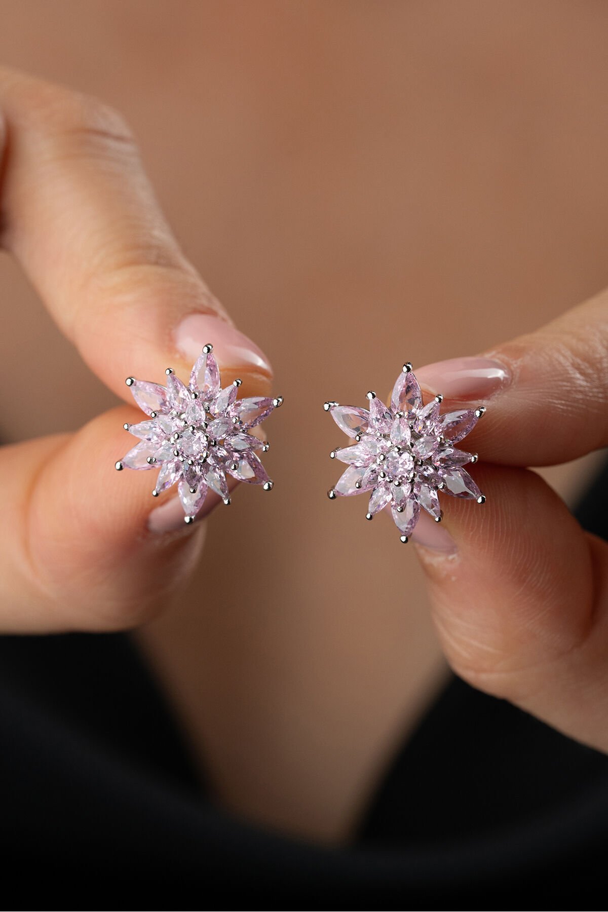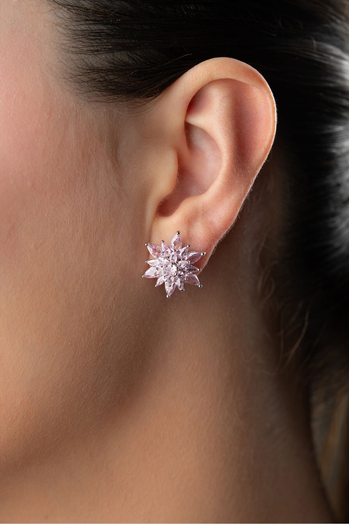 925 Ayar Gümüş Lotus Pembe Taşlı Küpe
