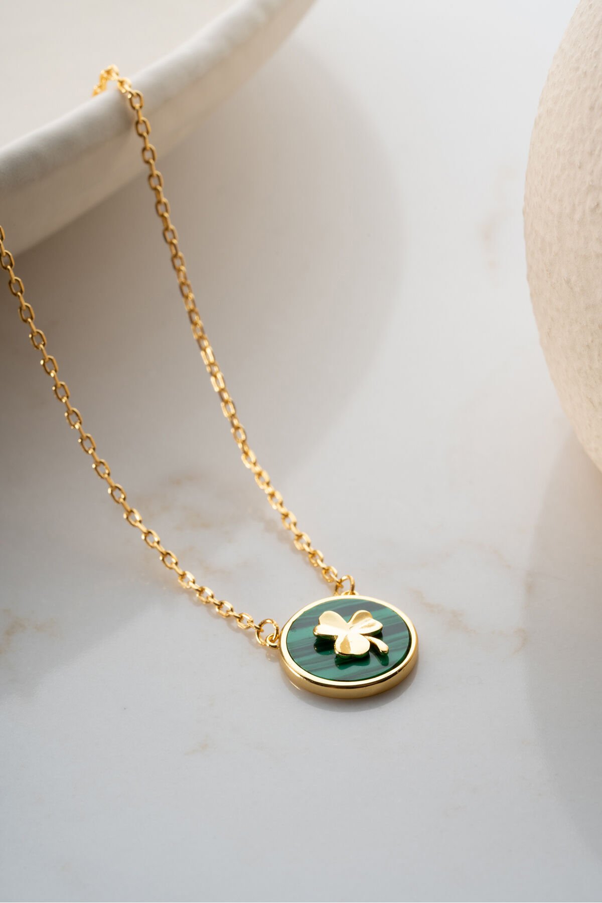 925 Ayar Gümüş Malakit Taşlı Yonca Şans Kolye