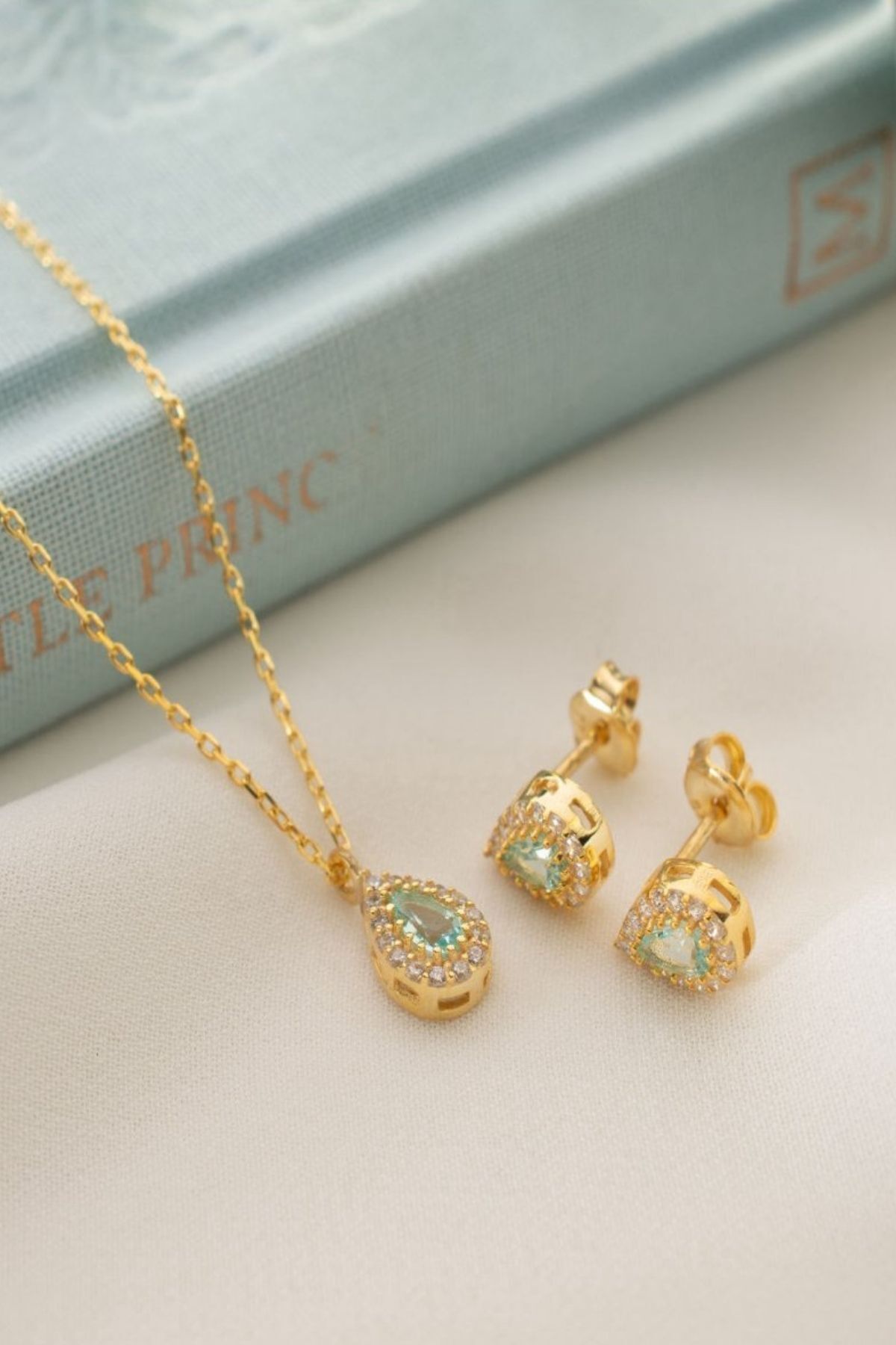 925 Ayar Gümüş Mart Ayı Doğum Taşı ( Aquamarine ) Kolye - Küpe Seti