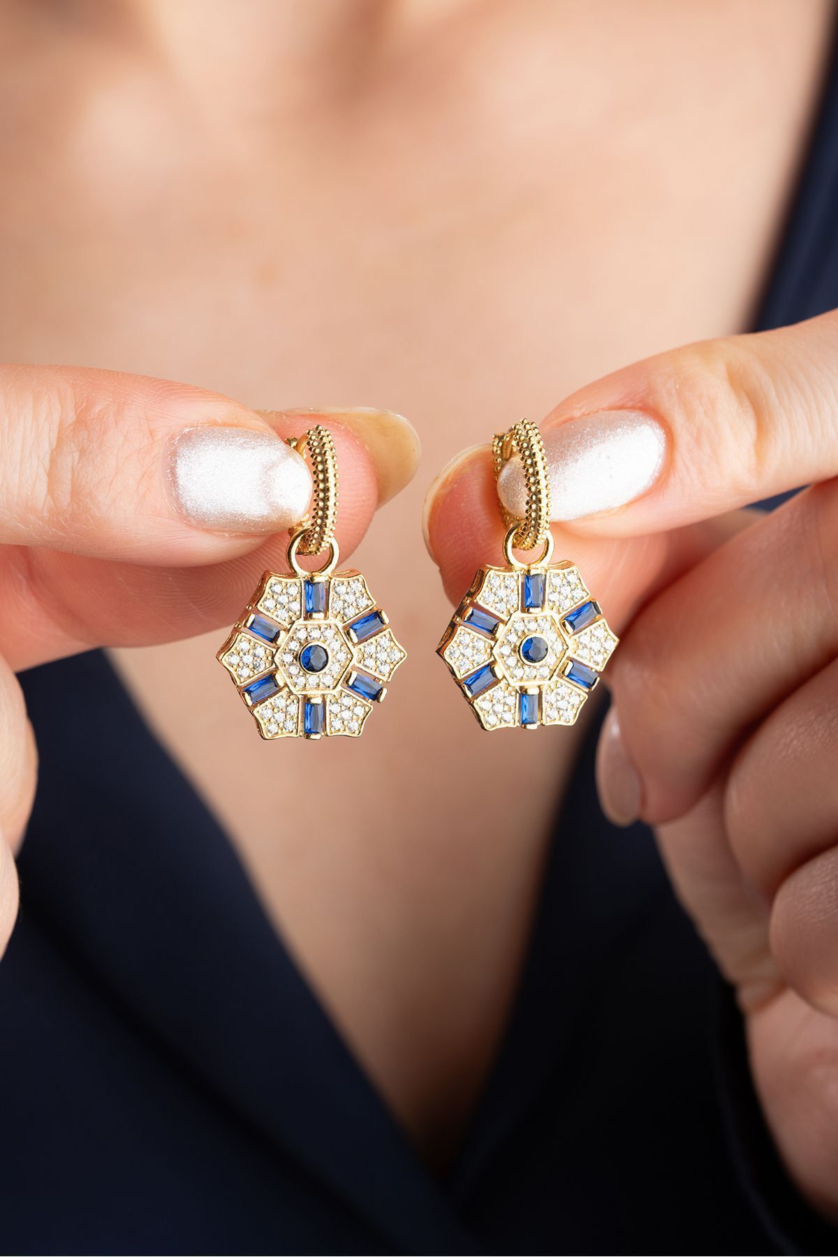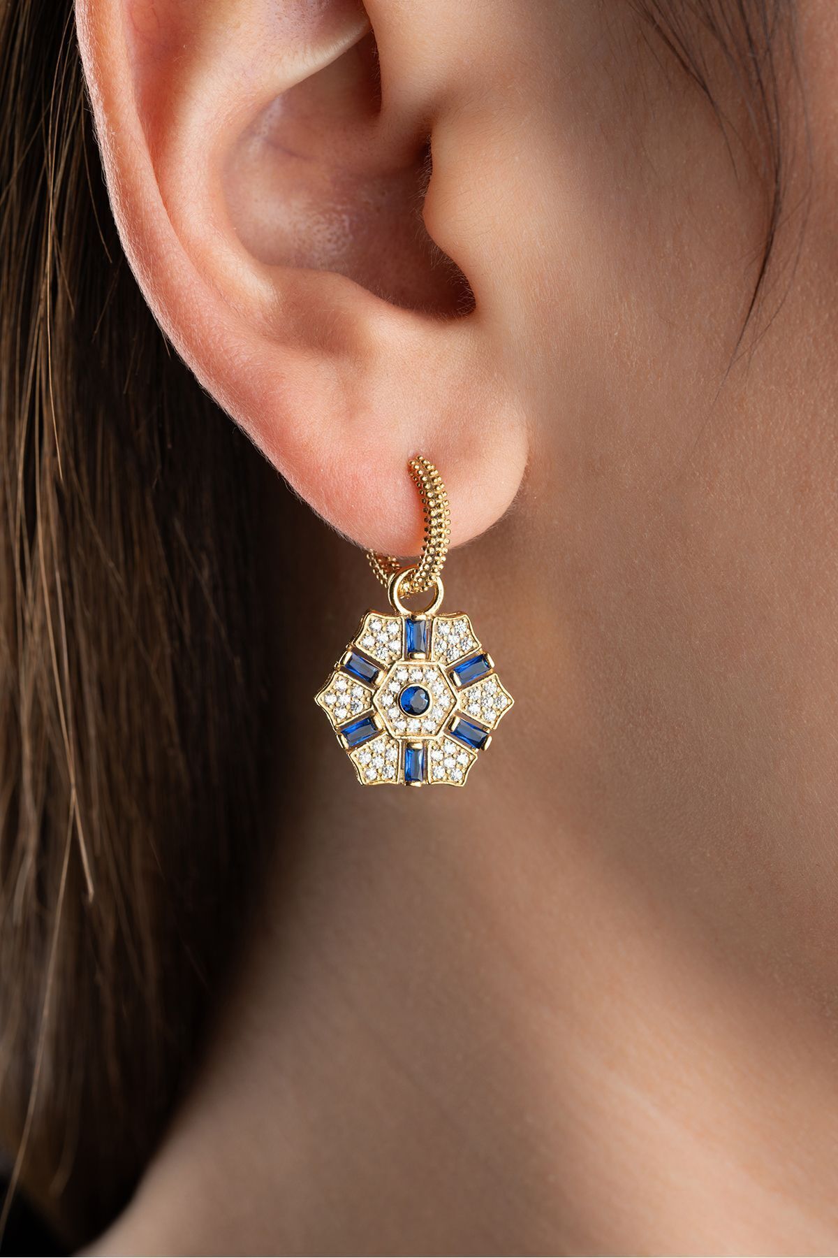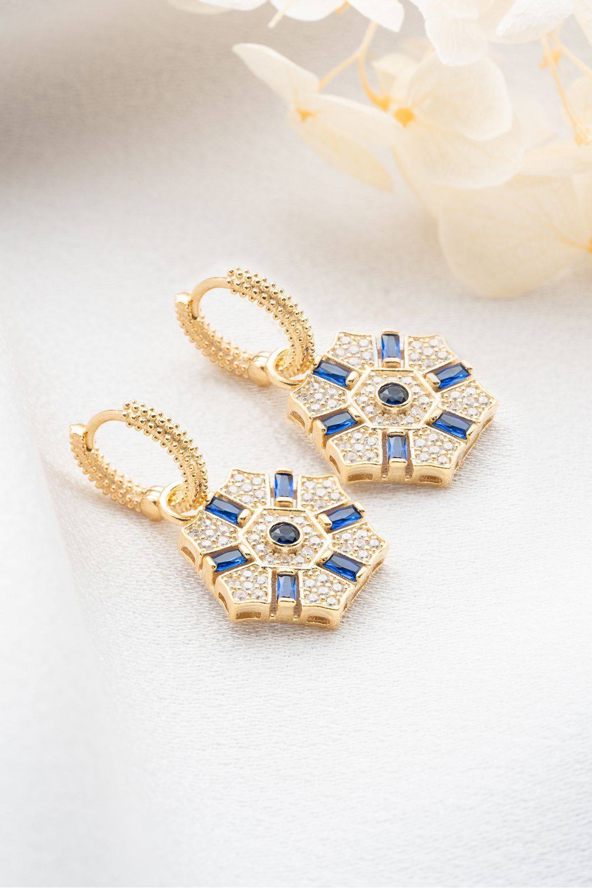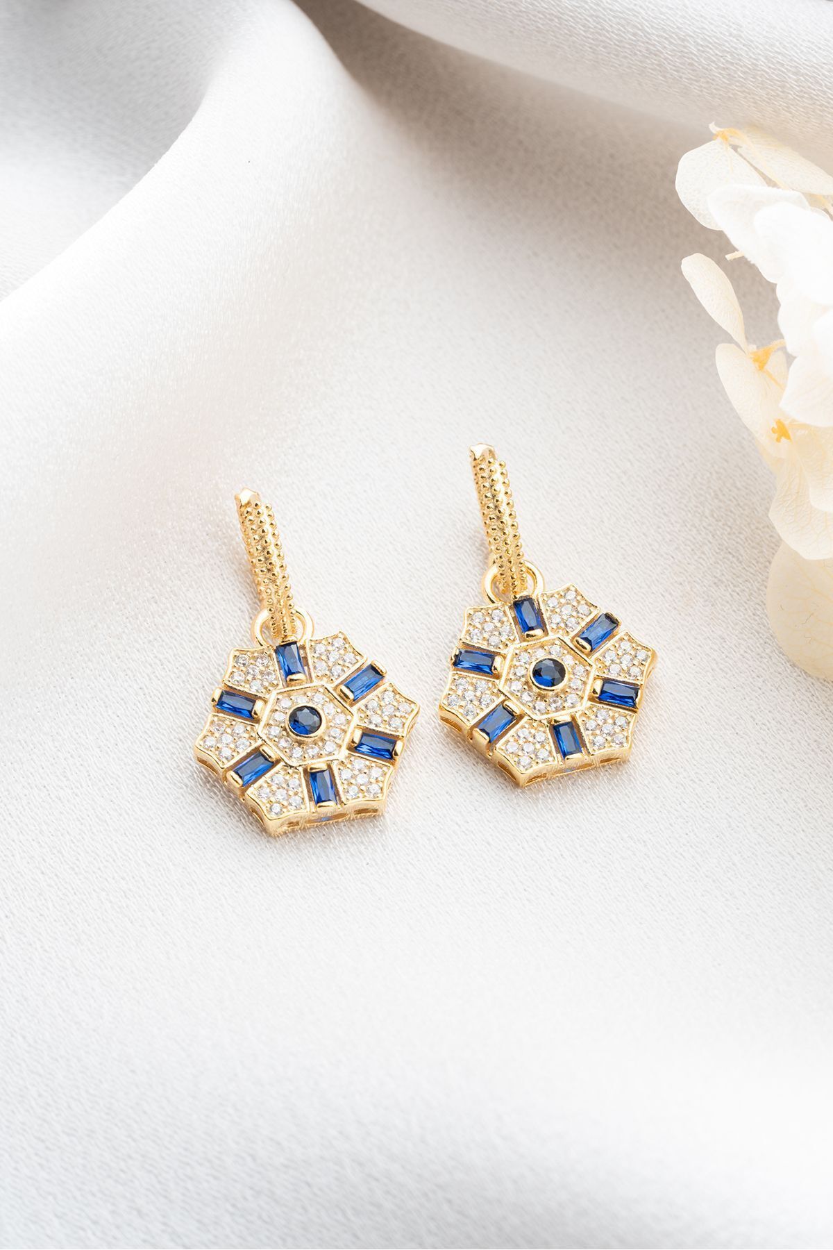 925 Ayar Gümüş Mavi Baget Taşlı Küpe