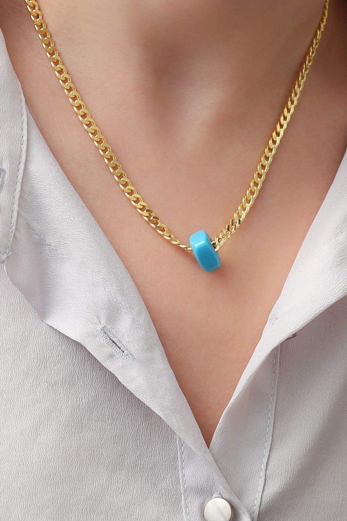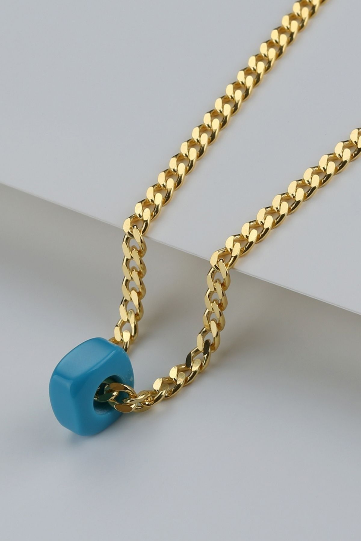 925 Ayar Gümüş Mavi Boncuklu Gurmet Zincir Kolye