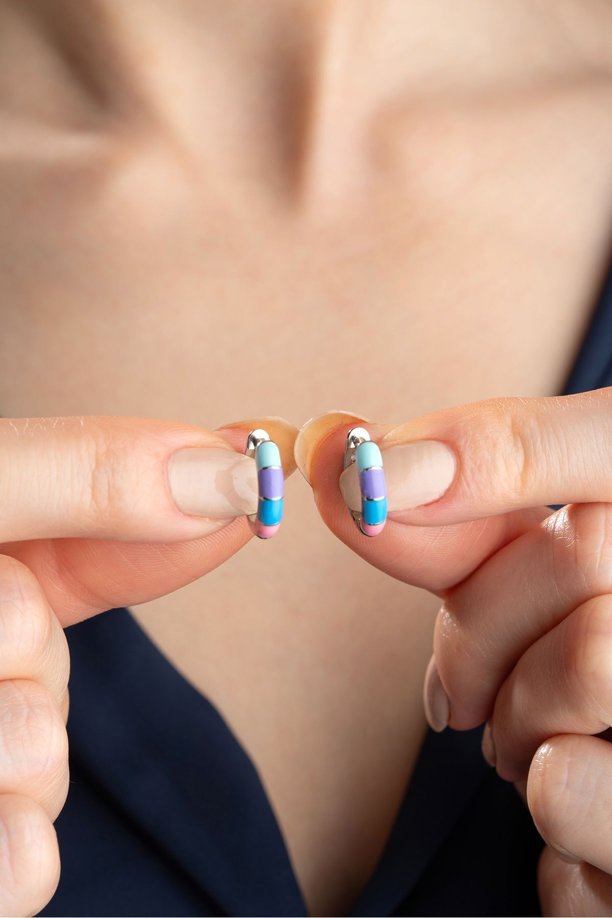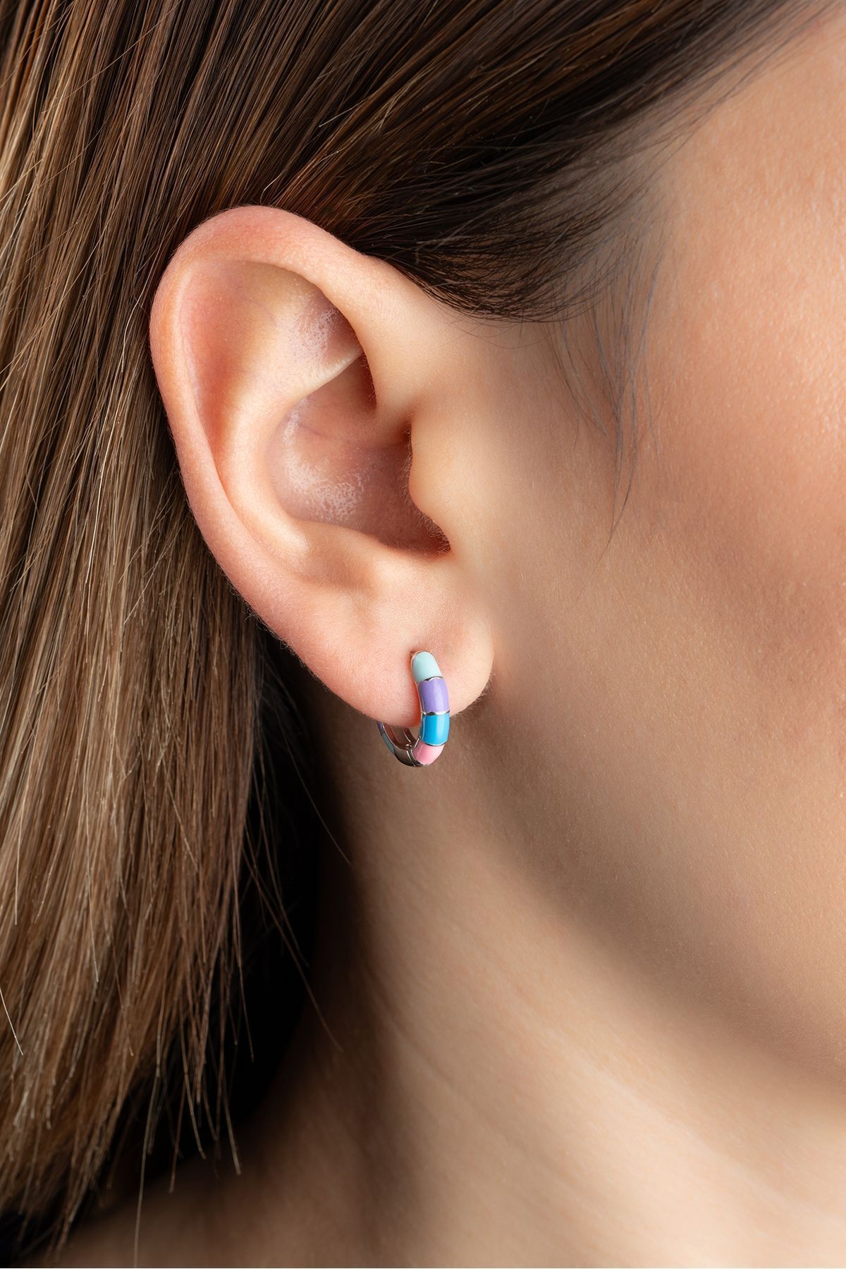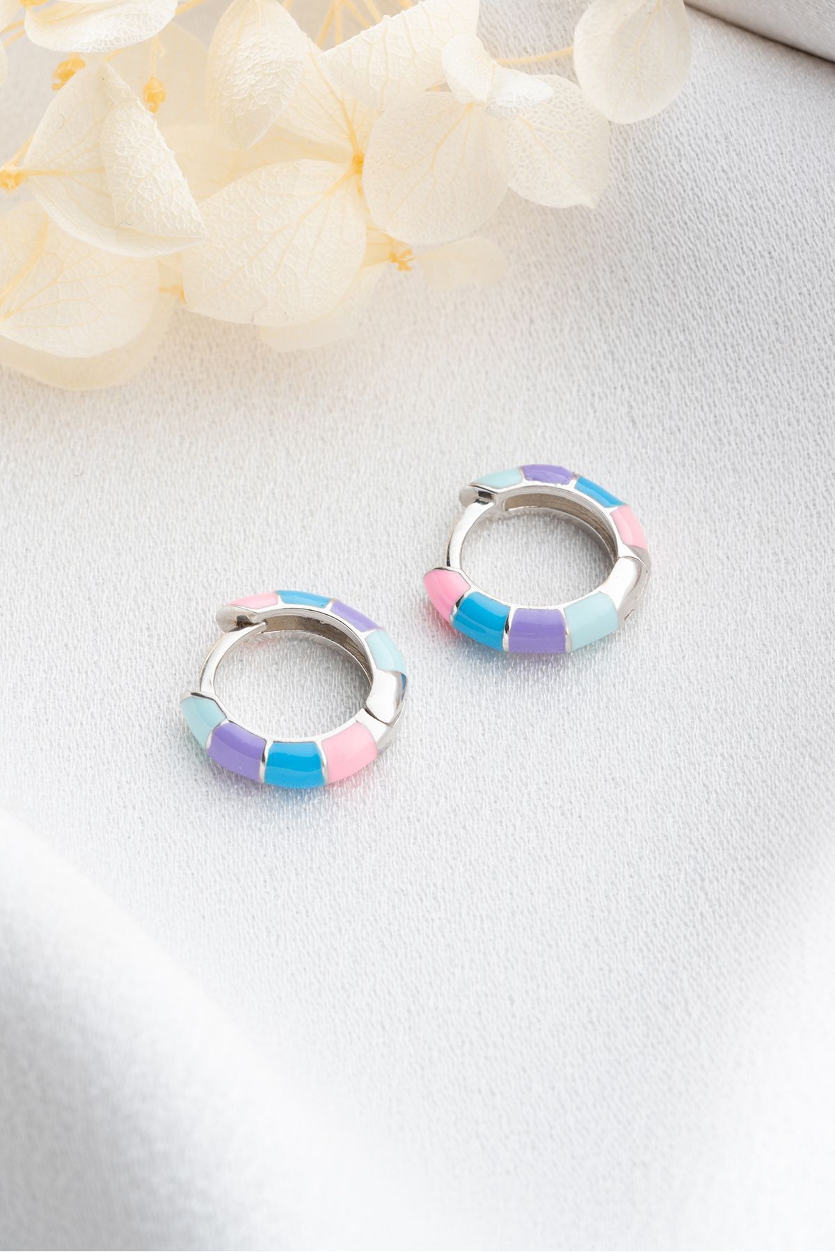 925 Ayar Gümüş Mavi Mineli Halka Küpe