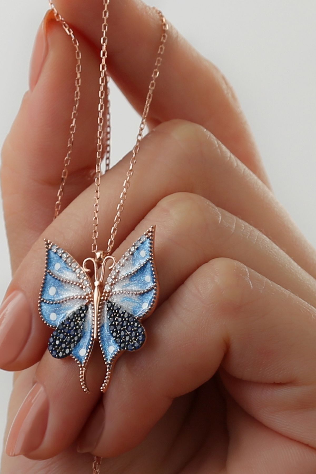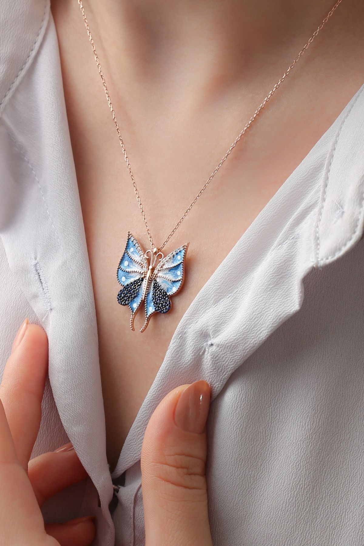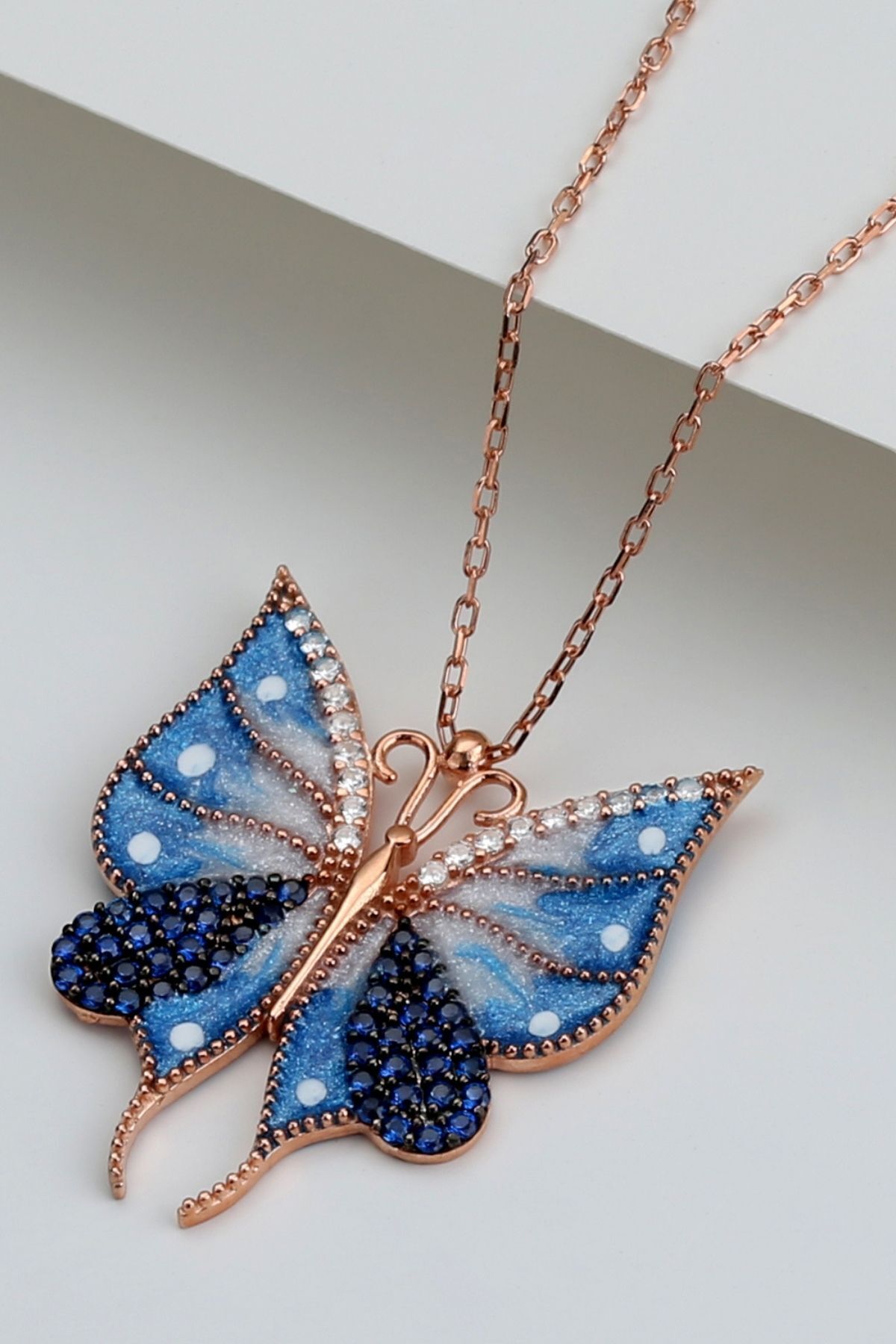 925 Ayar Gümüş Mavi Mineli Kelebek Kolye