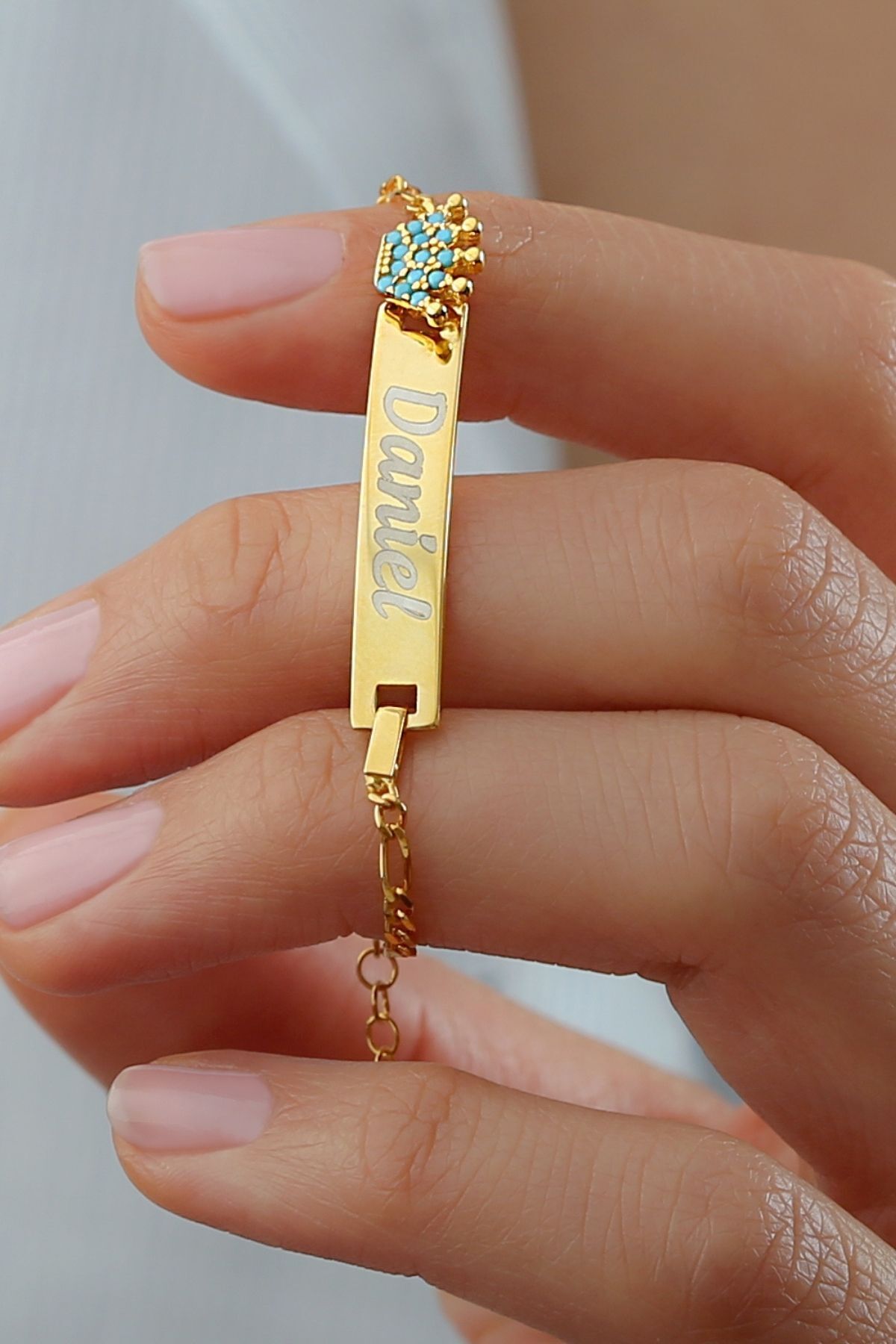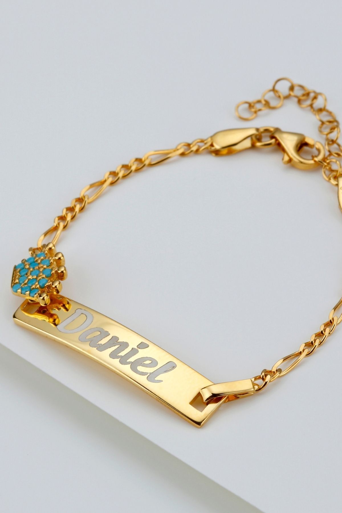925 Ayar Gümüş Mavi Taçlı Isimli Çocuk Bileklik