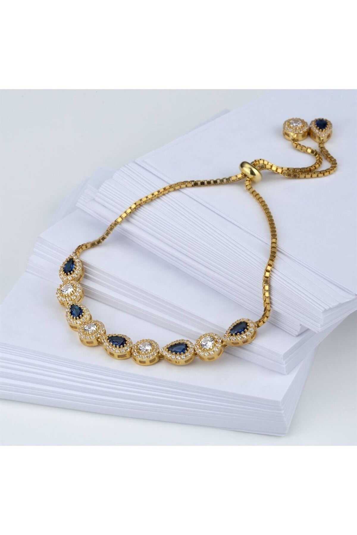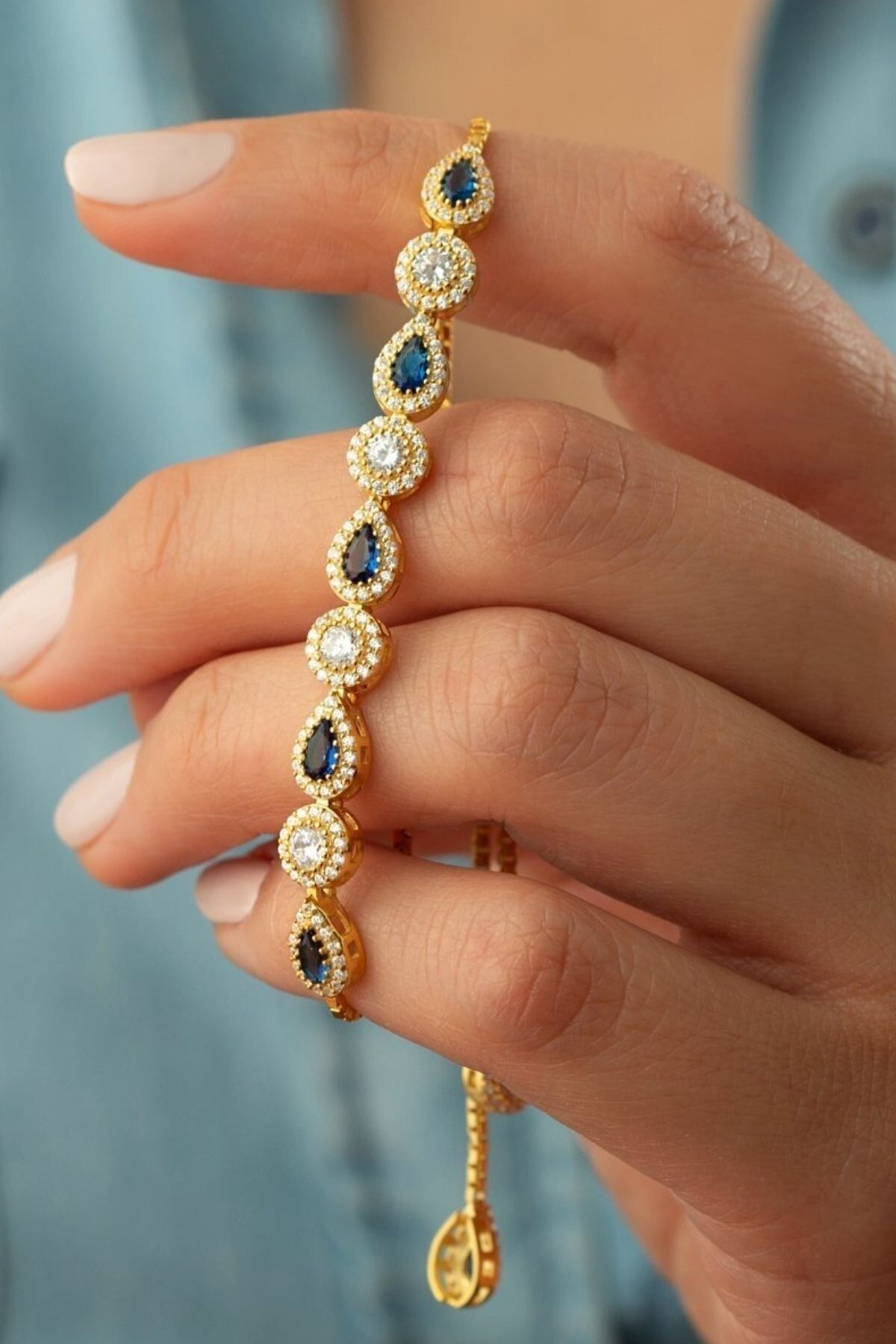 925 Ayar Gümüş Mavi Taşlı Asansörlü Bileklik