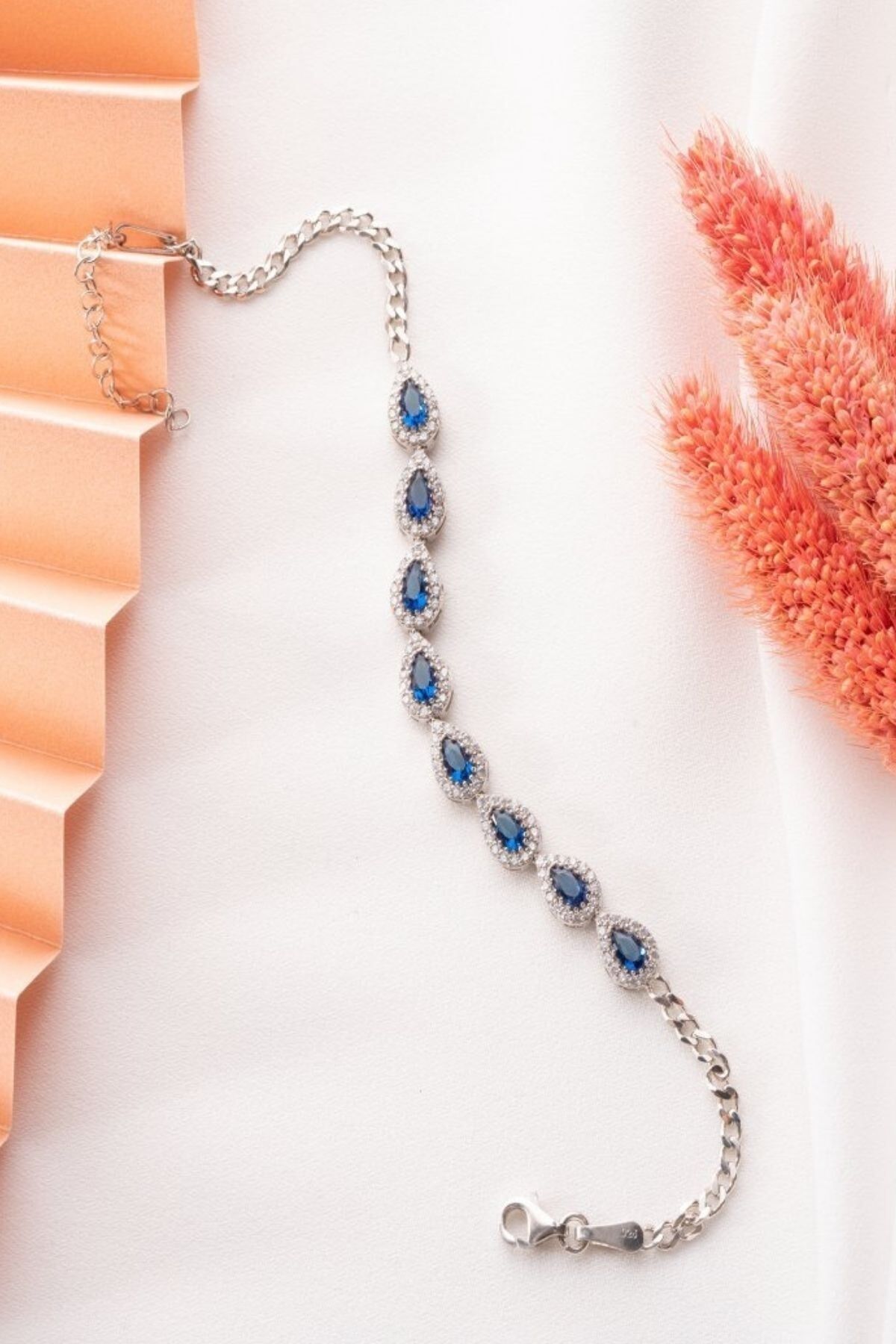925 Ayar Gümüş Mavi Taşlı Damla Bileklik