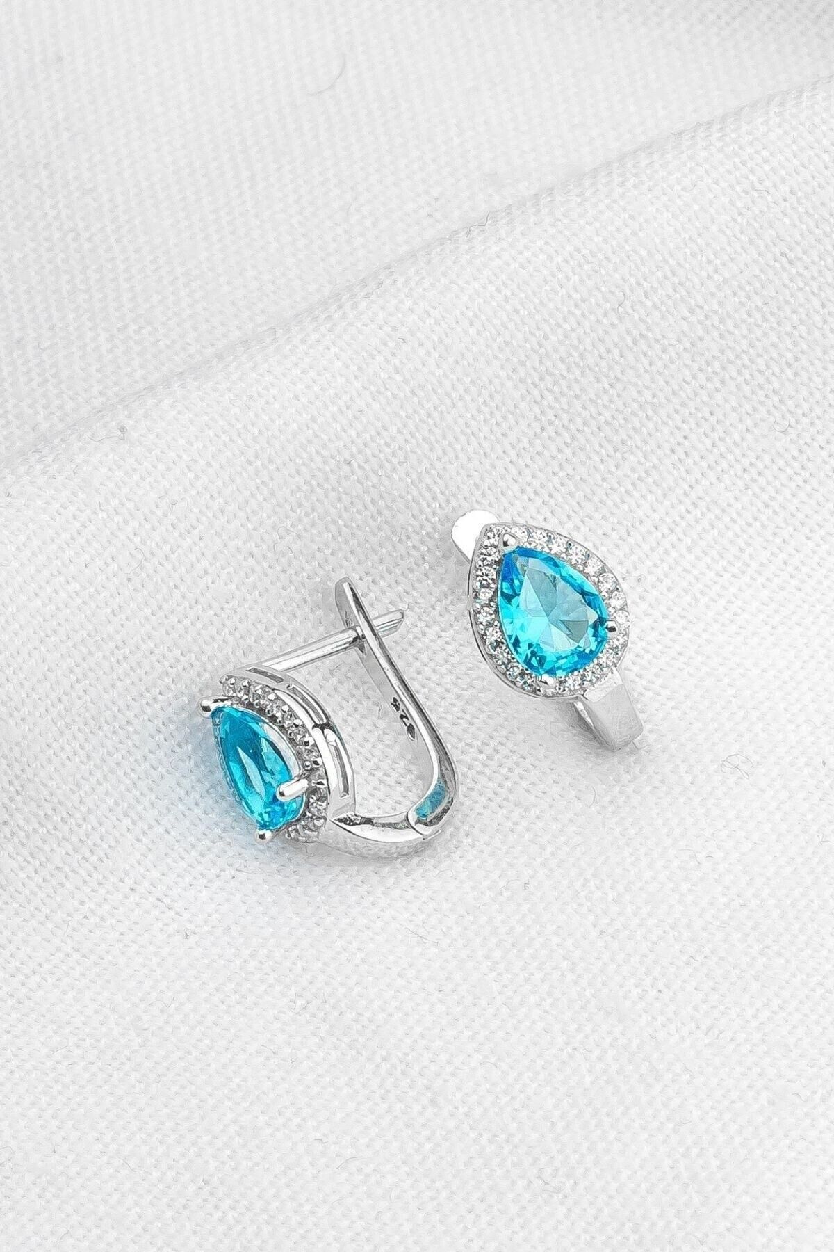 925 Ayar Gümüş Mavi Taşlı Damla Küpe