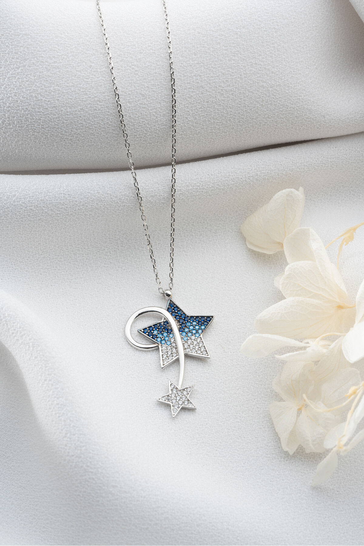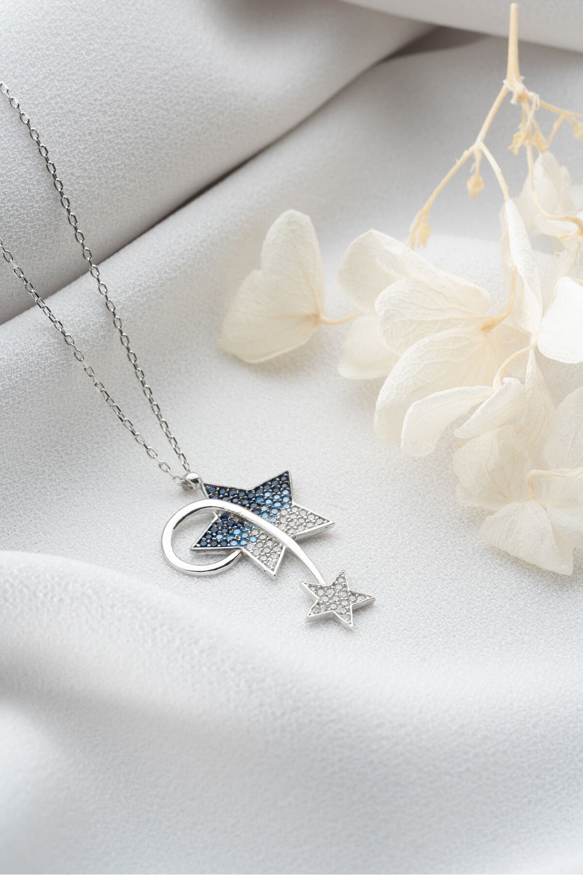 925 Ayar Gümüş Mavi Taşlı Kuyruklu Yıldız Kolye