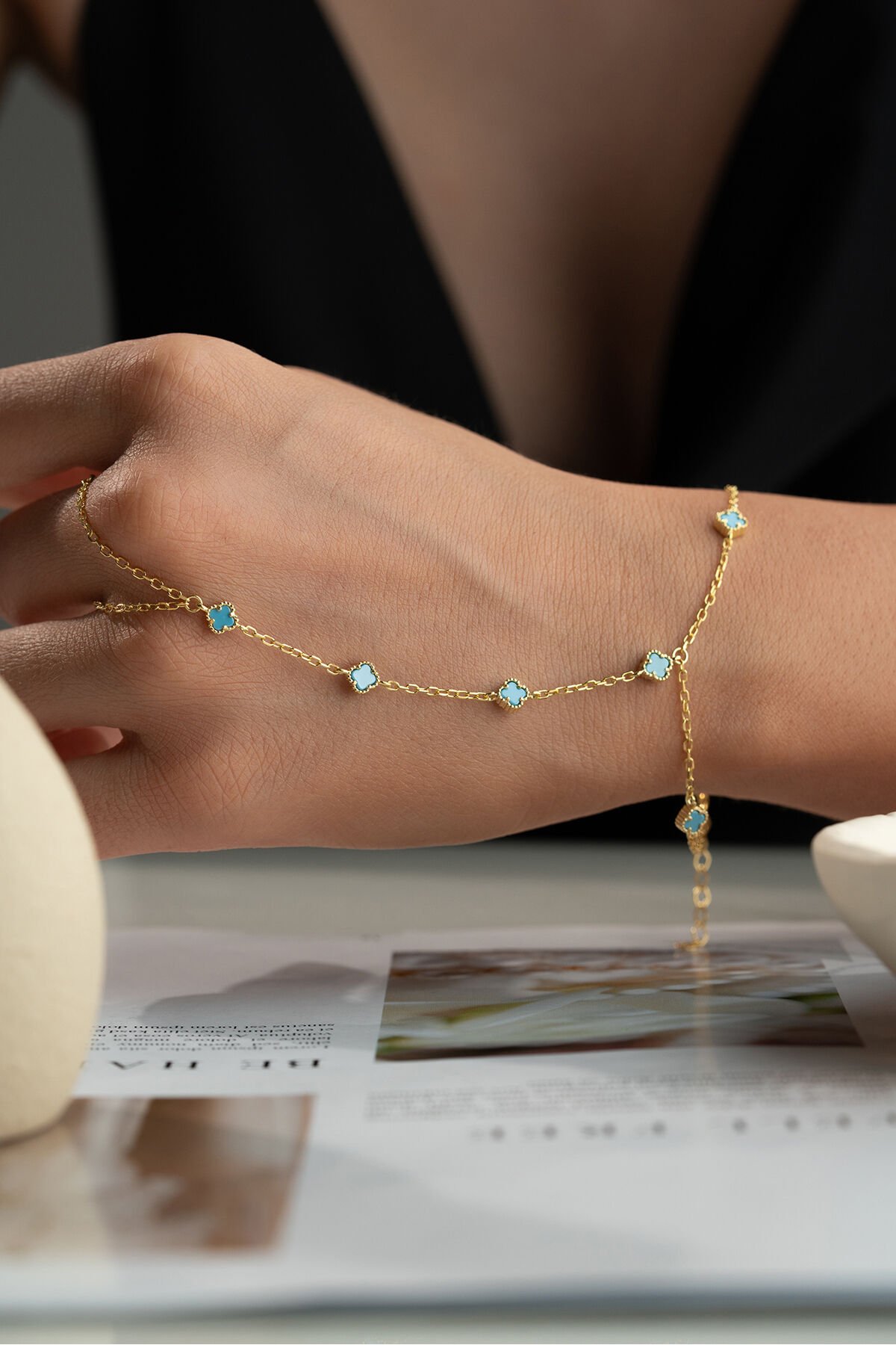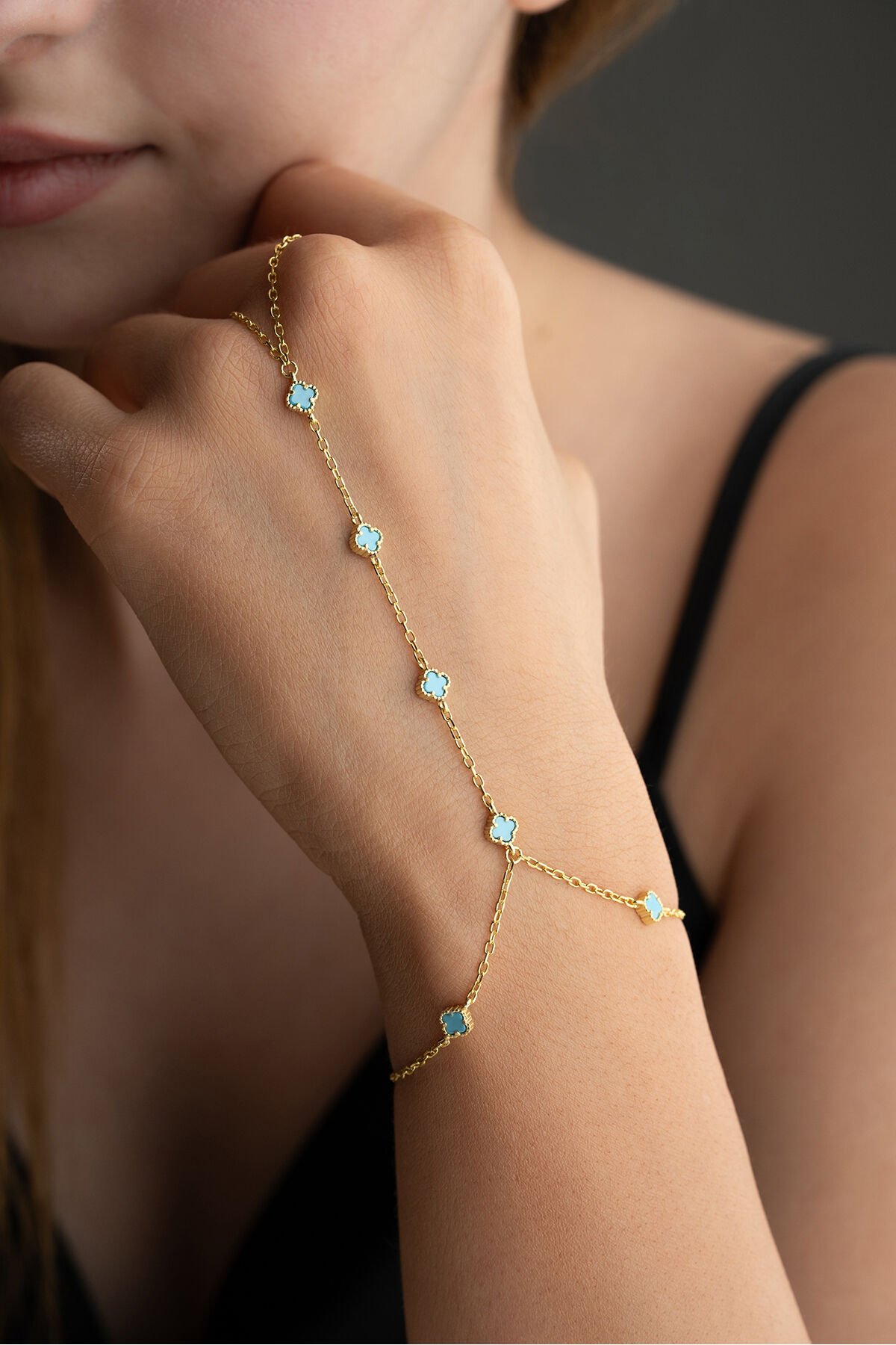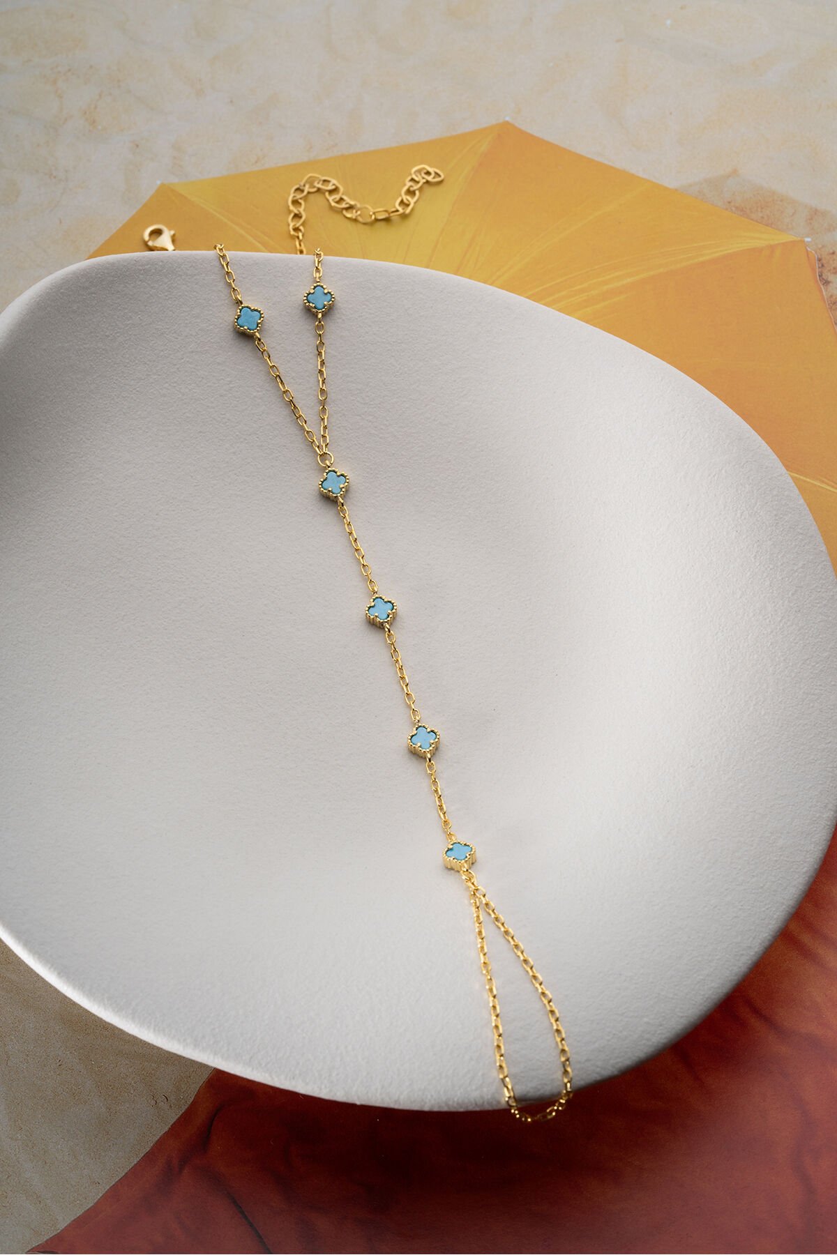 925 Ayar Gümüş Mavi Taşlı Yonca Şahmeran