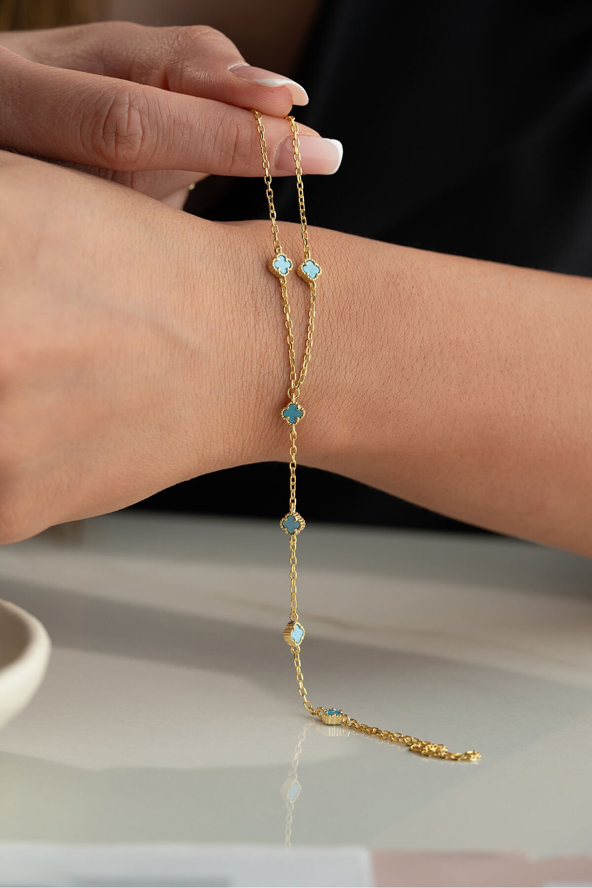 925 Ayar Gümüş bileklik ; Zarif ve ince tasarımı ile her kombine uyum sağlayan bu kolye, günlük kullanım için idealdir.; - Malzeme: 925 ayar gümüş - Boy: 42 cm (idealdir ve rahat bir kullanım sunar) - Özellikler: Hafif ve zarif yapısı ile boynunuza doğal bir ışıltı katar.; 925 Ayar Gümüş Bilekliğimiz Sade ama şık tasarımı ile bileğinize ince bir dokunuş katın.; Günlük ve özel günlerde rahatça kullanabilirsiniz.; - Malzeme: 925 ayar gümüş - Boy: Ayarlanabilir (17 cm - 20 cm arası) - Özellikler: Dayanıklı yapısı ile uzun ömürlü kullanım sağlar, hafif ve rahattır.; Tabii, işte kısa ve anlaşılır bir şekilde 925 ayar gümüş takıların saklama ve kullanma koşulları: 925 Ayar Gümüş Takıların Saklama Koşulları: - Kuru ve serin yerde saklayın: Gümüş takılar nemden uzak tutulmalıdır.; Nem, gümüşün kararmasına neden olabilir.; - Kapalı kutuda muhafaza edin: Takılarınızı hava almayan mücevher kutusunda veya kumaş keselerde saklayarak oksitlenmeyi önleyebilirsiniz.; - Diğer takılarla temas ettirmeyin: Çizilmeleri önlemek için gümüş takılarınızı diğer takılardan ayrı tutun.; 925 Ayar Gümüş Takıların Kullanma Koşulları: - Su ve kimyasallardan uzak tutun: Gümüş takılarınızı parfüm, krem, saç spreyi gibi kimyasallarla temas ettirmeyin ve suya maruz bırakmayın.; - Düzenli temizleyin: Yumuşak bir bezle düzenli olarak temizleyerek parlaklığını koruyun.; - Uyurken ve spor yaparken çıkartın: Takılarınızı zarar görmemesi için uyurken, spor yaparken veya yoğun fiziksel aktivitelerde çıkarın.; Bu basit kurallar, gümüş takılarınızın uzun ömürlü ve parlak kalmasını sağlayacaktır.;