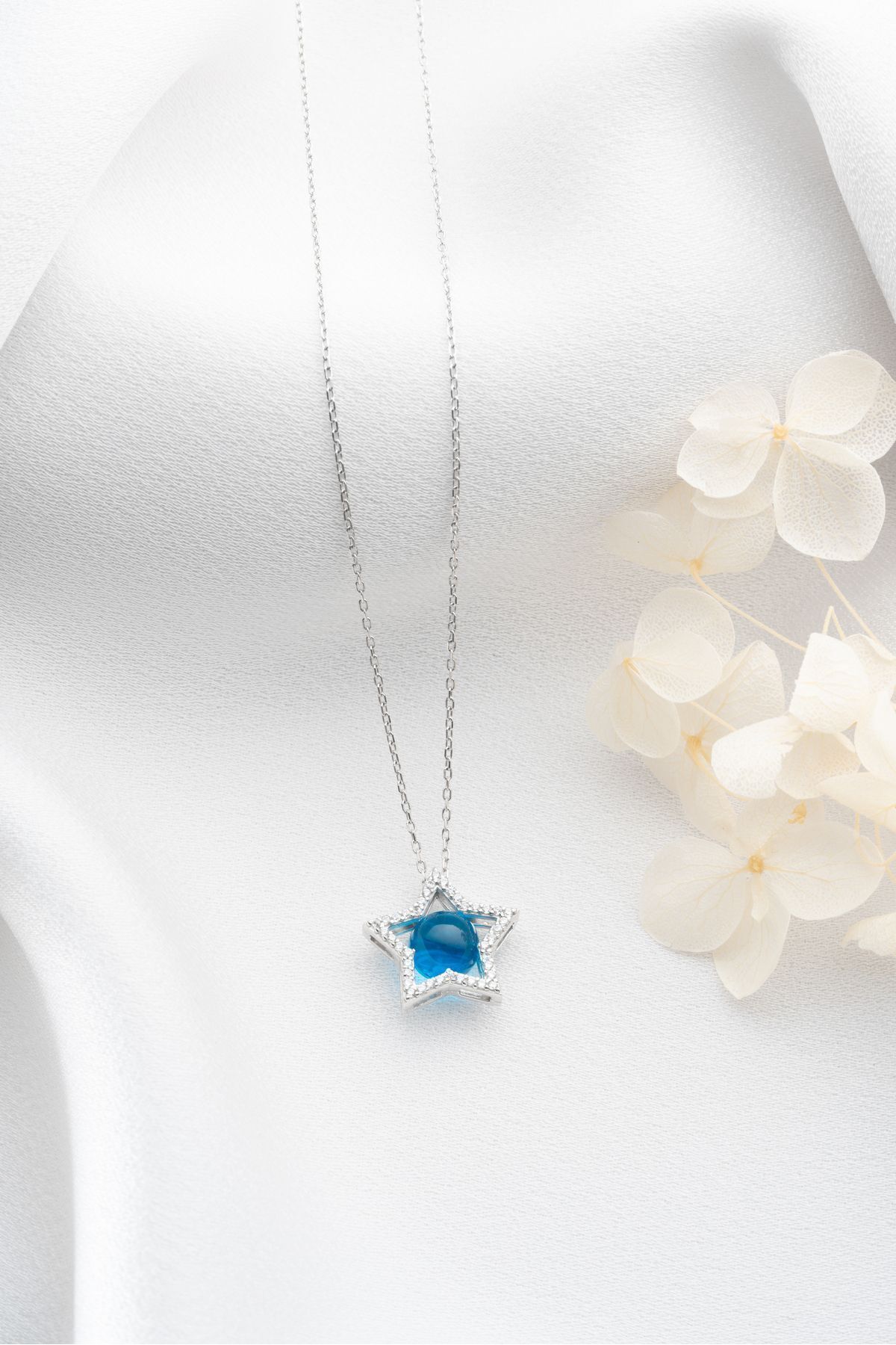 925 Ayar Gümüş Mavi Yıldız Kolye