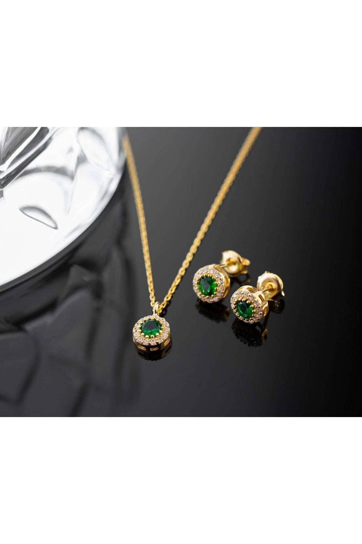 925 Ayar Gümüş Mayıs Ayı Doğum Taşı ( Emerald ) Kolye - Küpe Seti